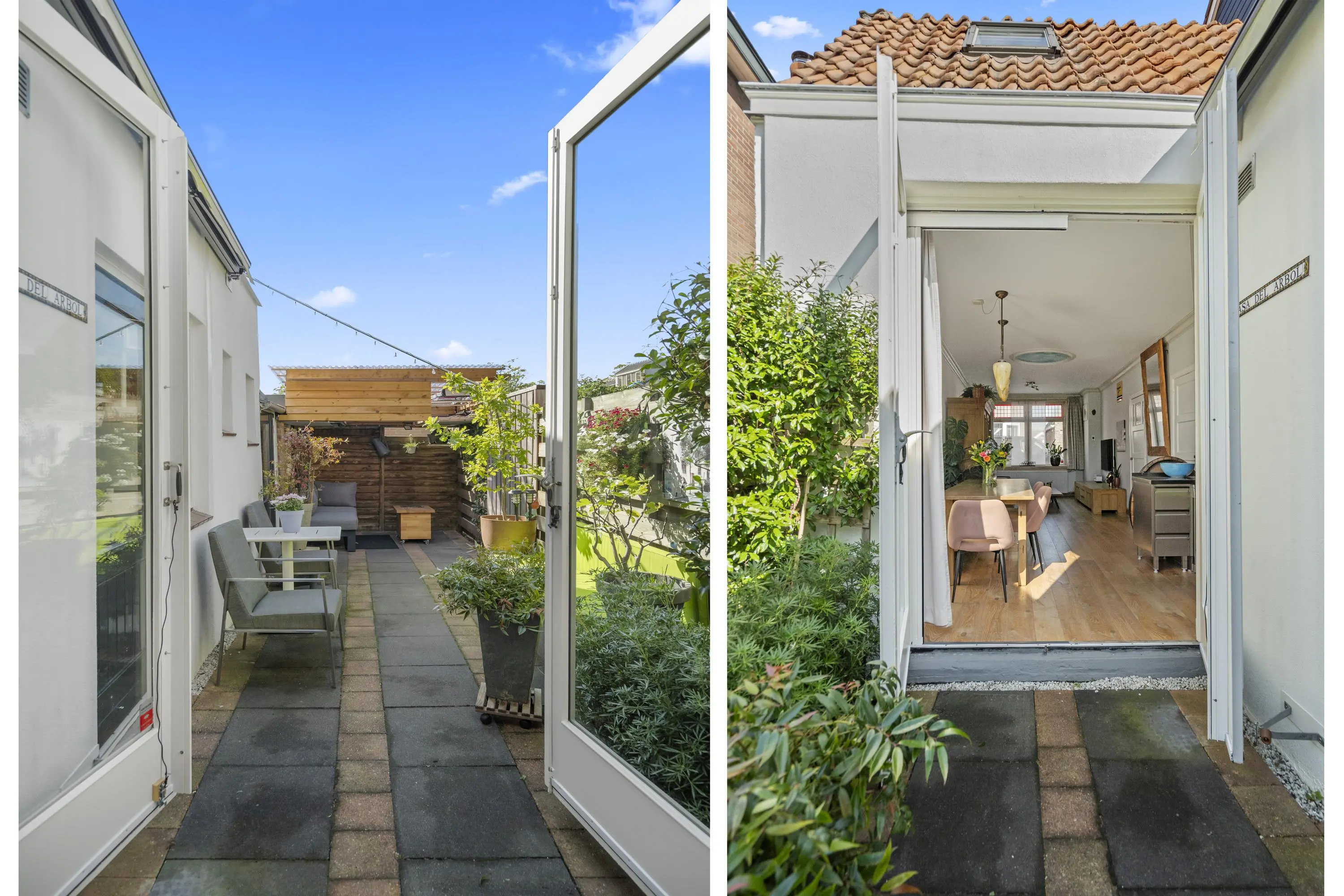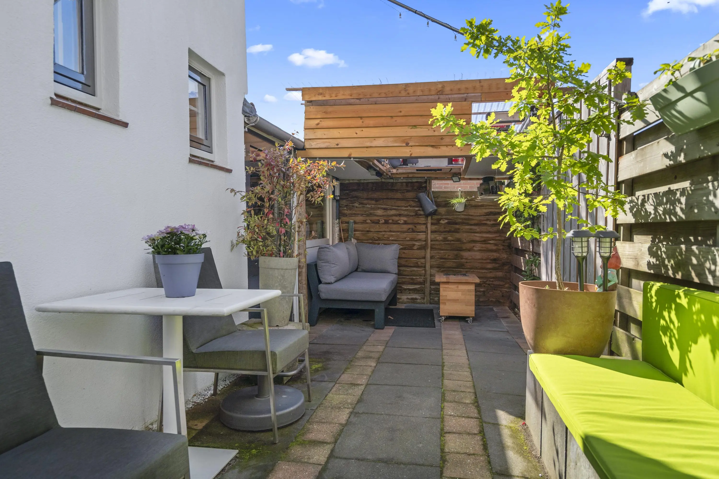 De tuin is een echte verrassing: gelegen op het zuidwesten, met een sfeervolle overkapping achterin en een achterom met extra brede poort. Dankzij de gunstige ligging is er geen inkijk van achterburen, jouw tuin voelt daardoor heerlijk privé en vrij. Hier vind je altijd een plekje om te genieten van de zon of juist de schaduw. Stel je voor: een lange zomeravond, de deuren open en een drankje in de avondzon.
