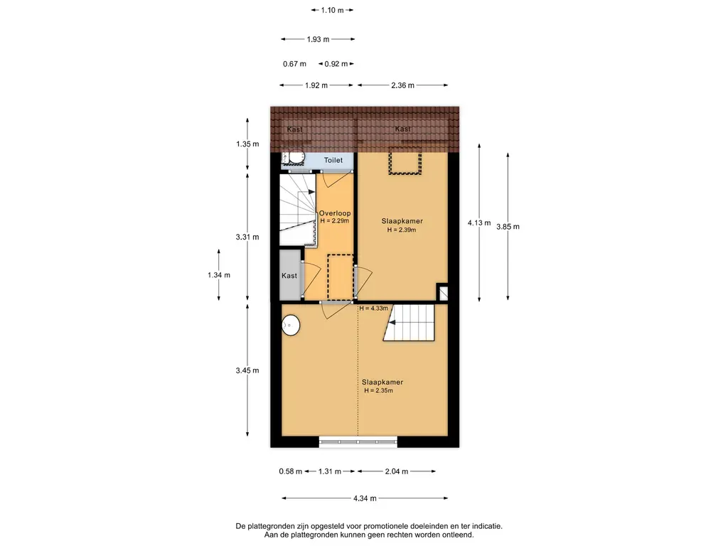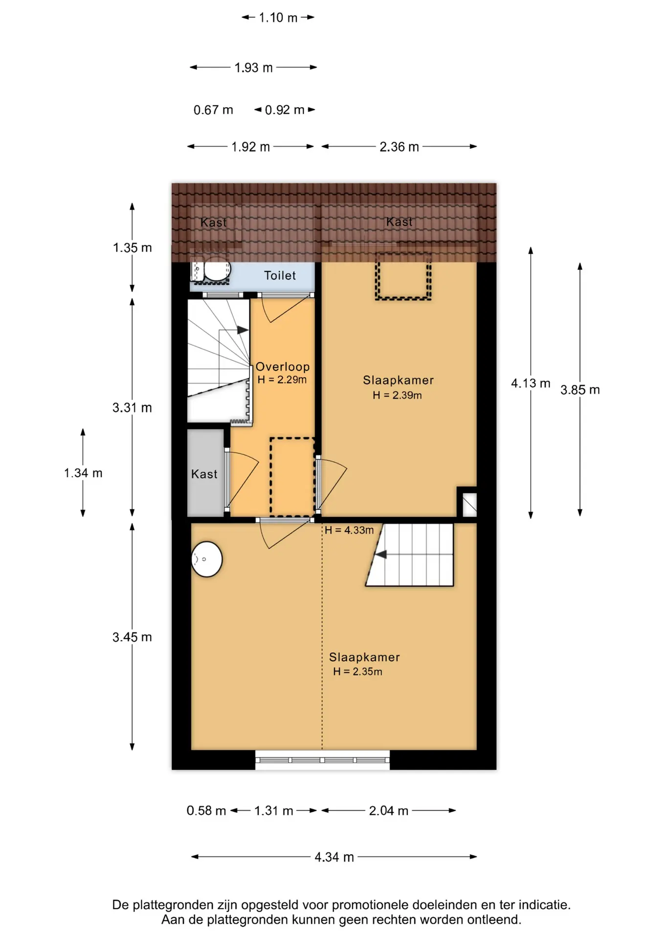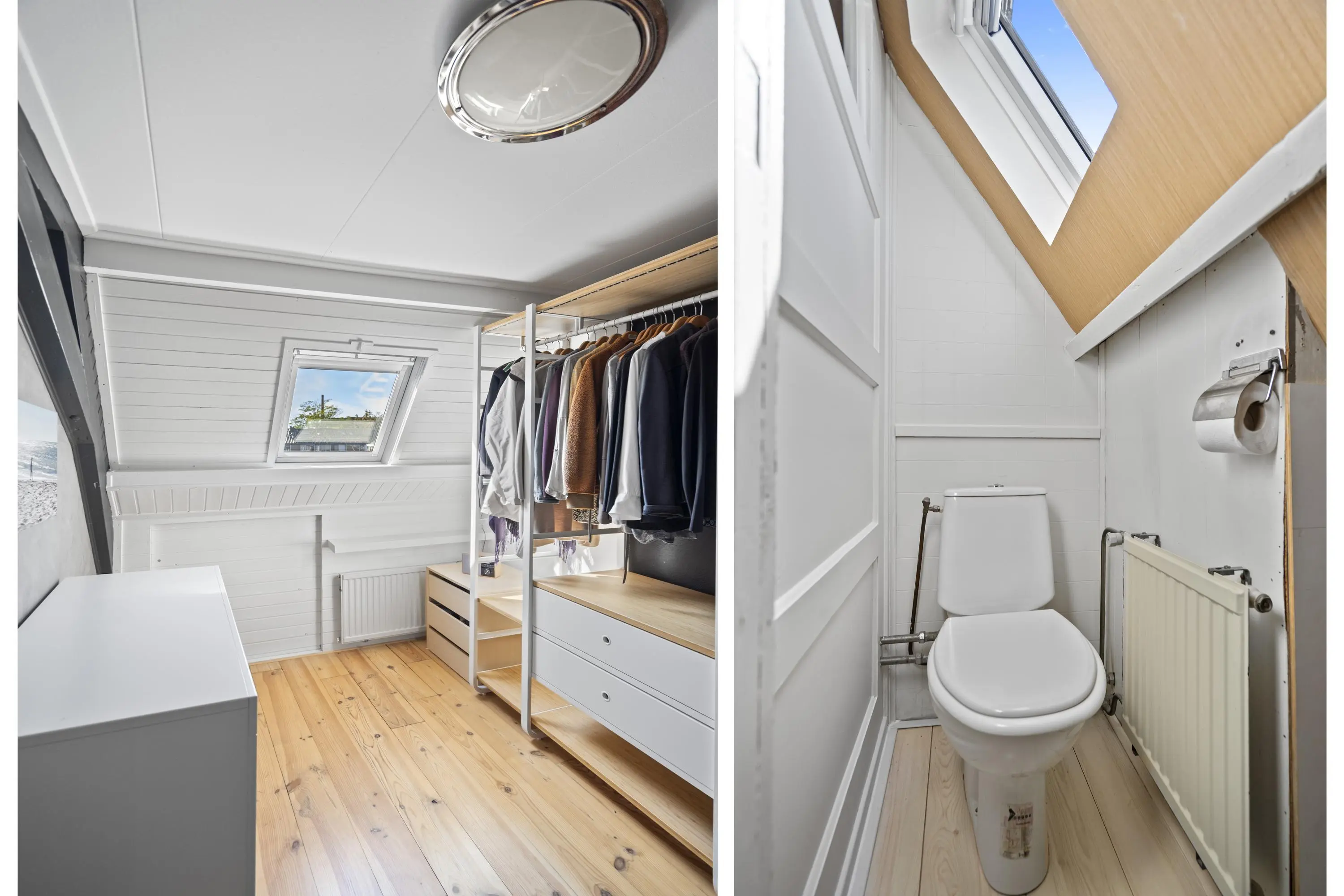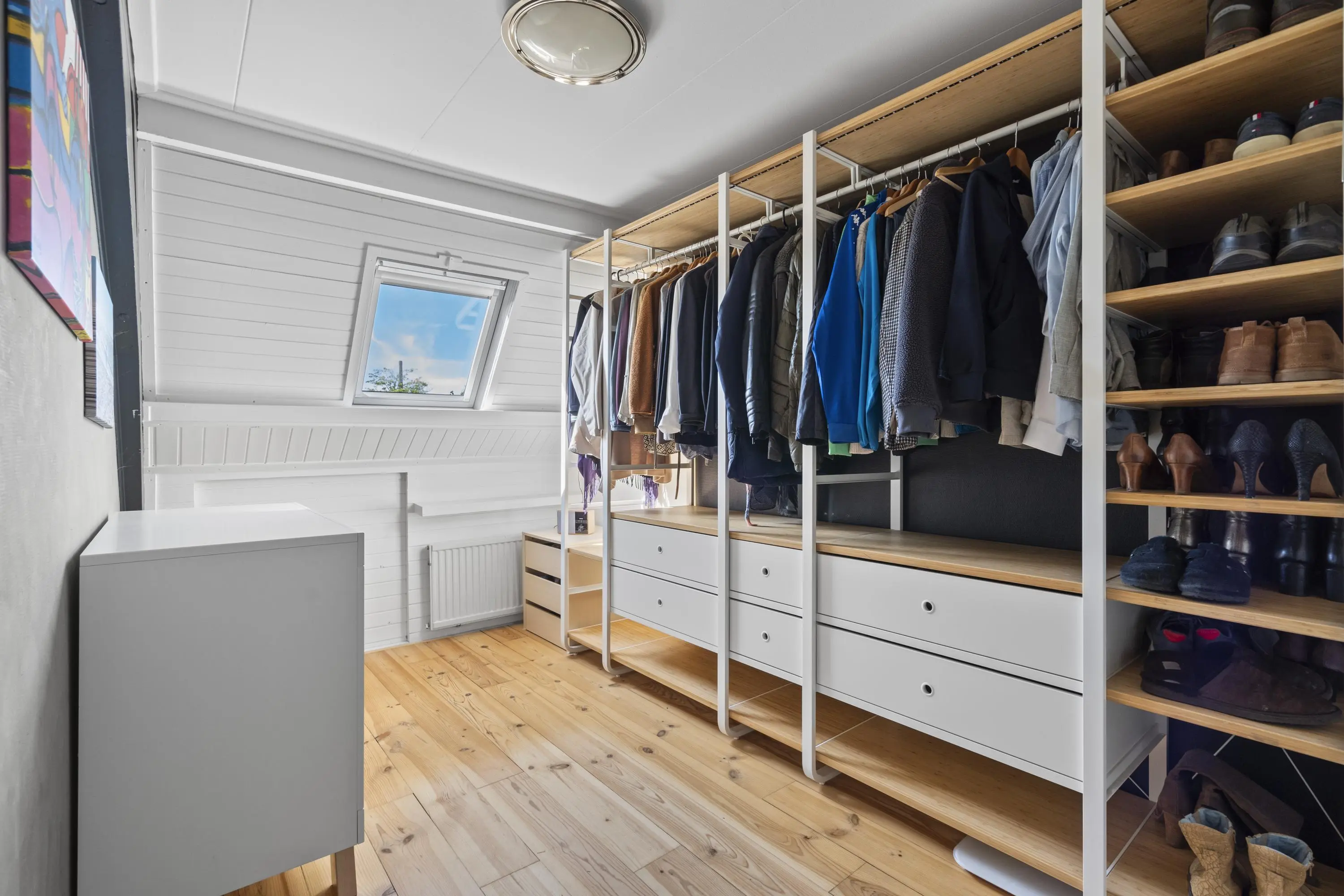 Op de eerste verdieping zijn twee ruime slaapkamers (voorheen drie), beide met houten vloer. De slaapkamer aan de voorzijde beschikt over een wastafelmeubel en een vaste trap naar een lichte werkplek met dakraam. Dit is een perfecte plek om rustig te werken of studeren. De slaapkamer aan de achterzijde heeft eveneens een dakraam en handige bergruimte achter het knieschot. De overloop biedt extra opbergruimte in de vaste kast en toegang tot de vliering via een vlizotrap.