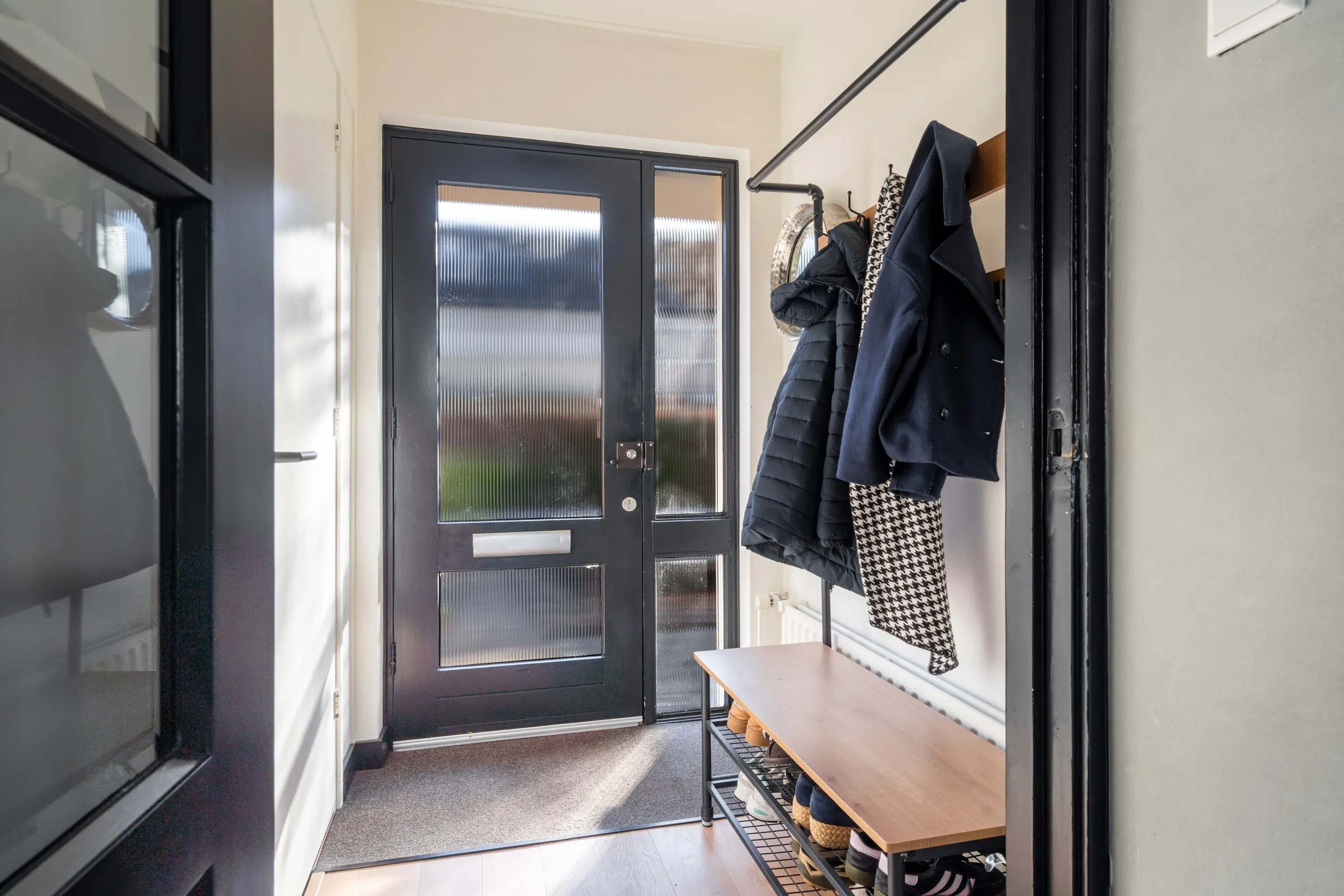 Via de royale voortuin bereikt u de entree van de woning. Entree, hal met moderne toiletruimte met wandcloset en fontein, de meterkast en de toegang tot de woonkamer.