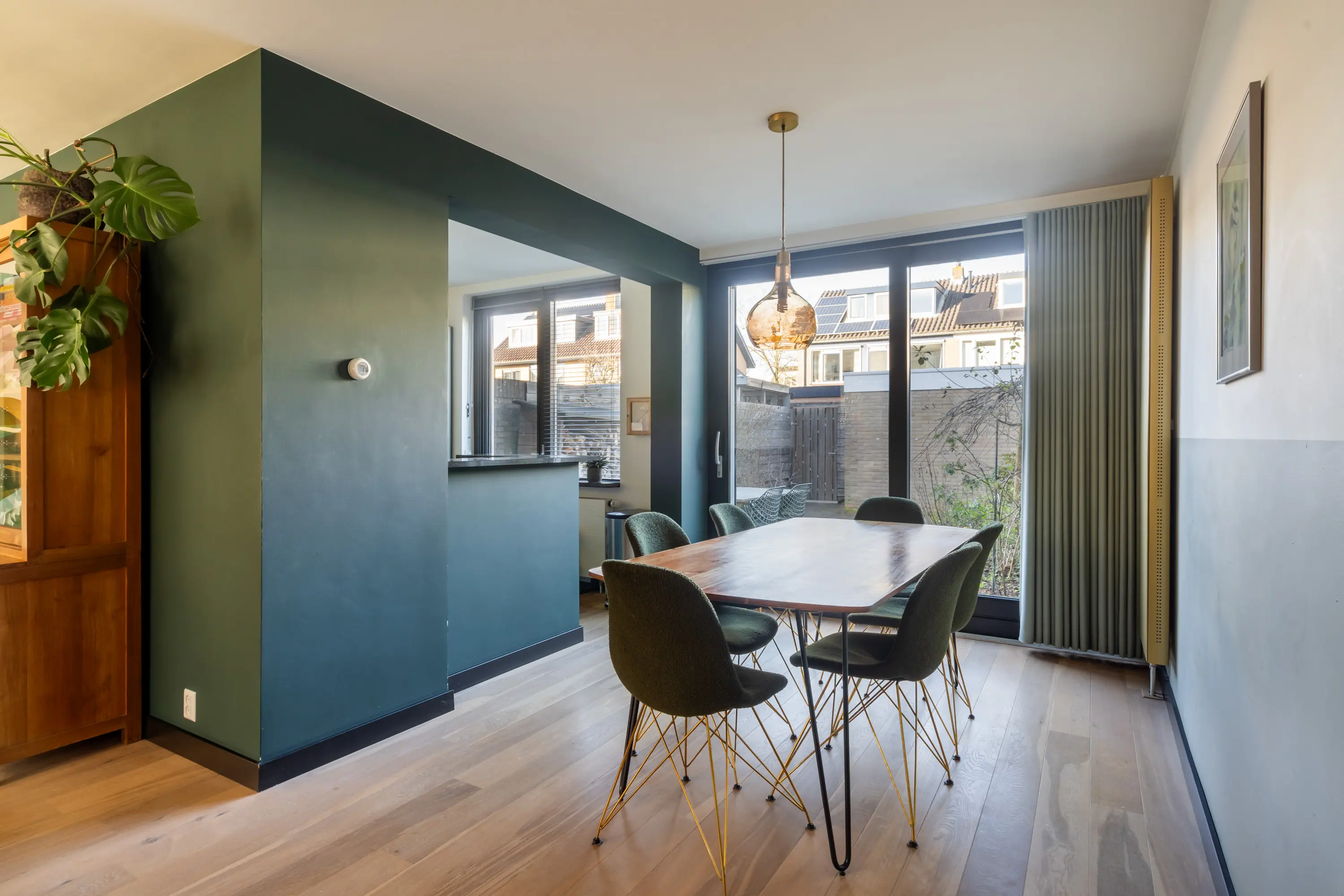 De halfopen keuken (2021) is opgesteld in een praktische U-vorm en voorzien van alle gewenste inbouwapparatuur, waaronder een 5-pits gasfornuis, Quooker, vaatwasmachine, afzuigkap, combi-oven, koelkast en vriezer. Dankzij de vele kastruimte is dit een fijne plek voor kookliefhebbers. Vanuit de keuken en via de schuifpui in de eetkamer is er toegang tot de achtertuin.