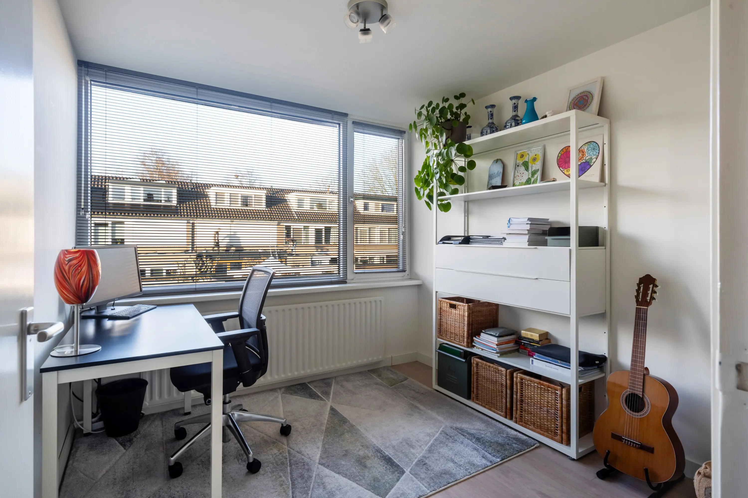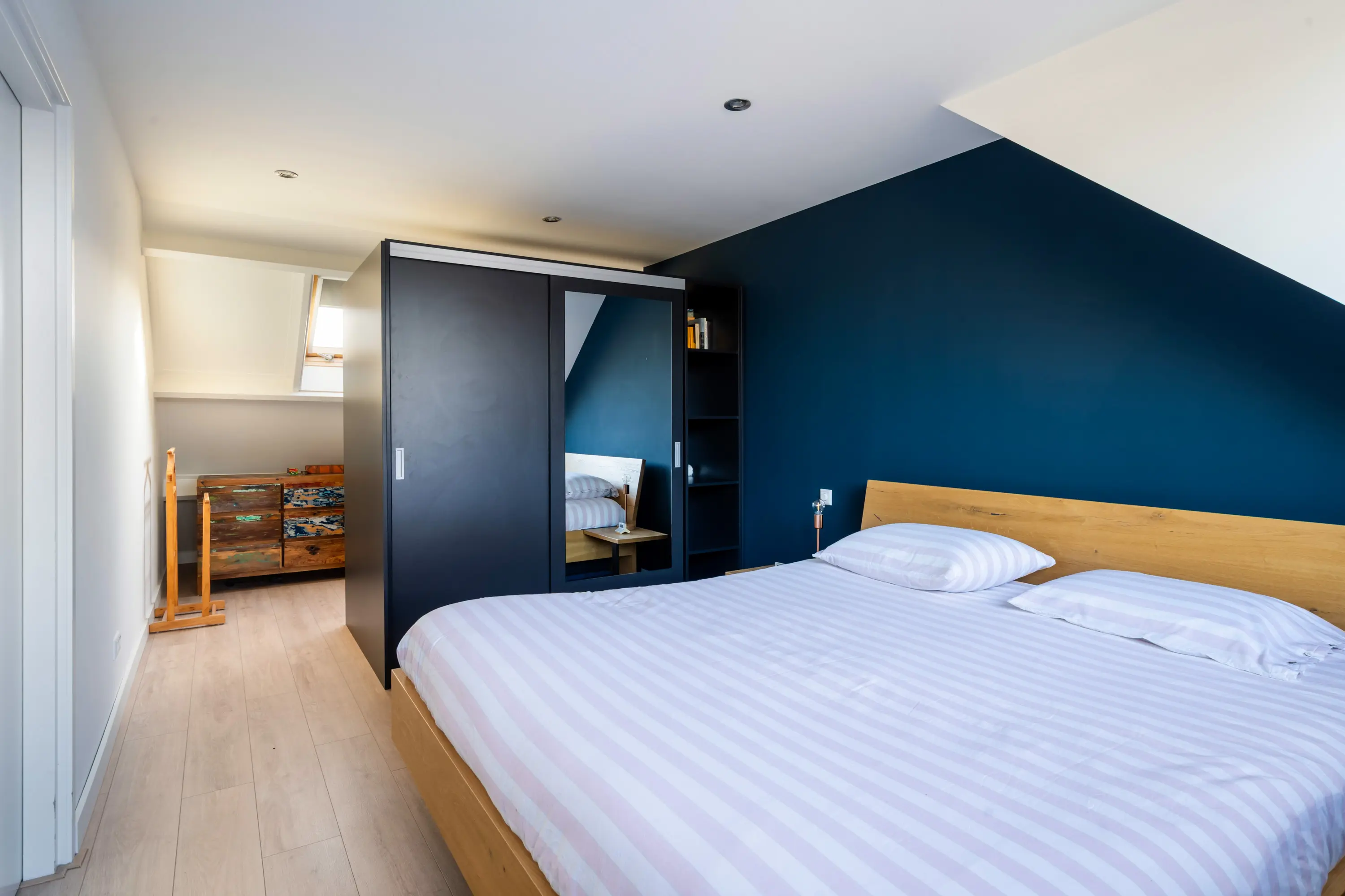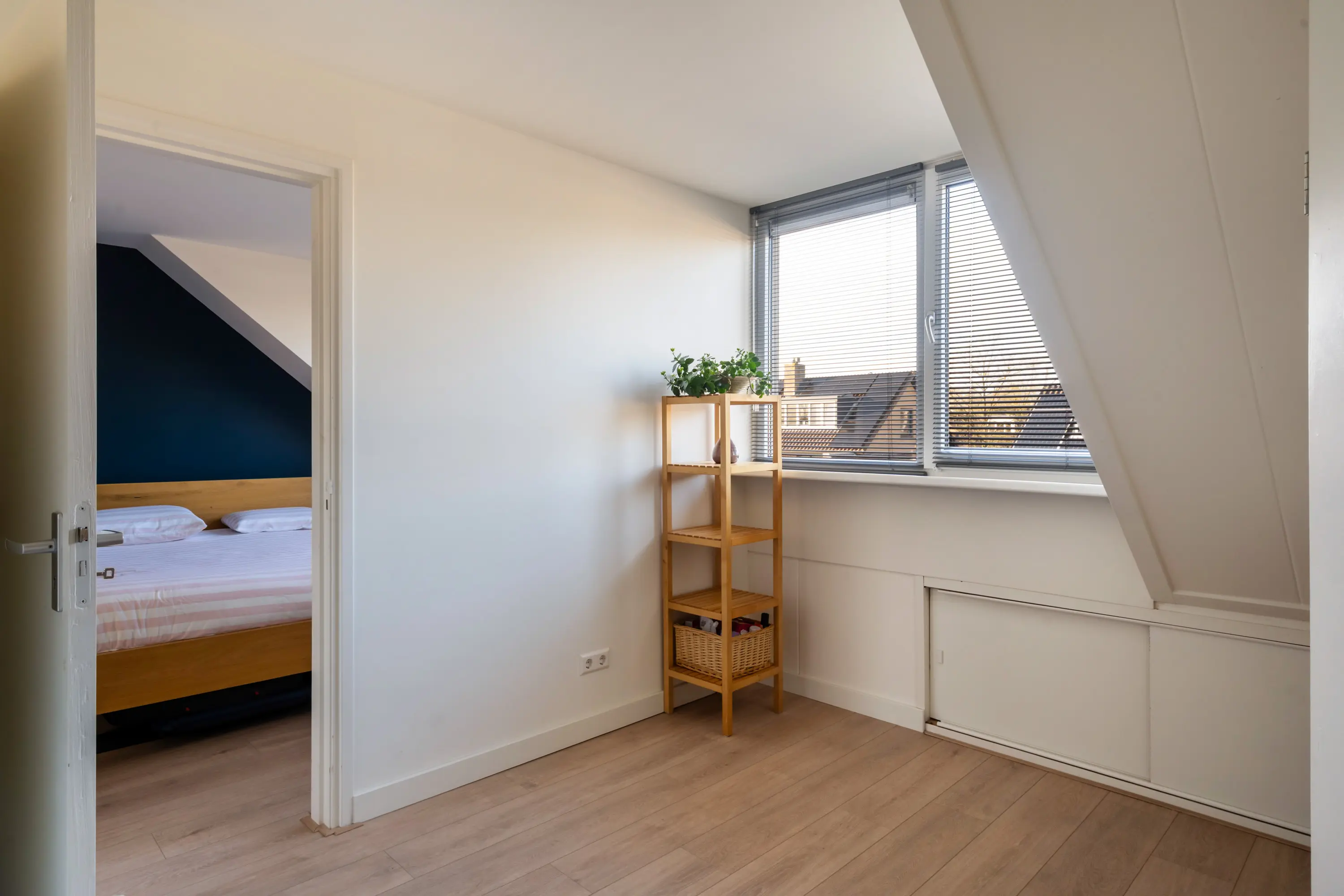 De ruime vierde slaapkamer beschikt over een grote dakkapel aan de voorzijde met rolluik en veel bergruimte, waardoor deze verdieping ook zeer geschikt is als werk-, hobby- of logeerruimte.