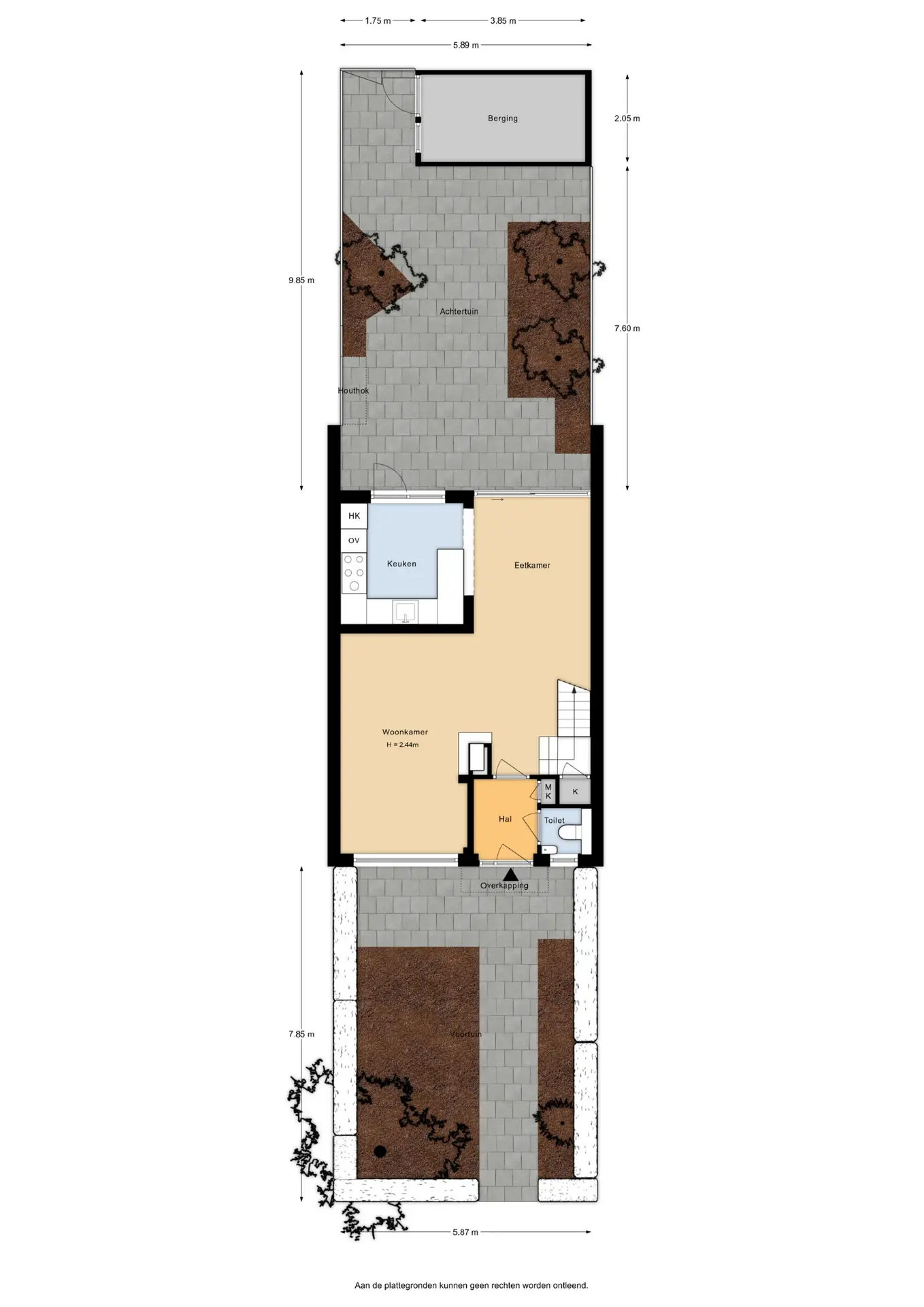 De diepe, onderhoudsarme achtertuin, gelegen op het noordwesten, biedt volop zon in de middag en avond en beschikt over een stenen berging en een handige achterom.