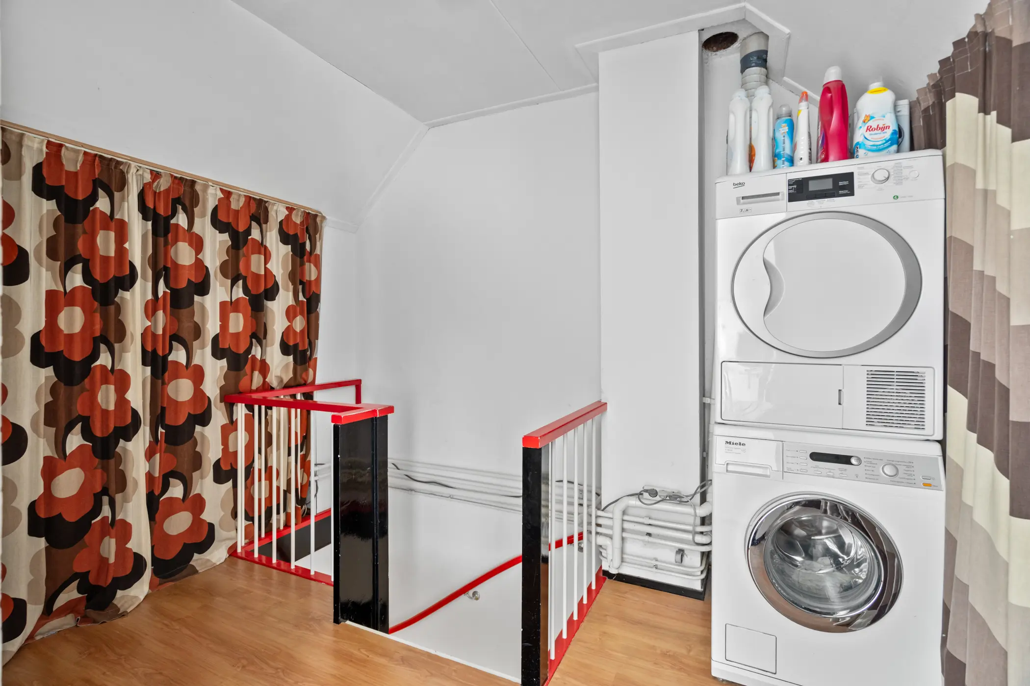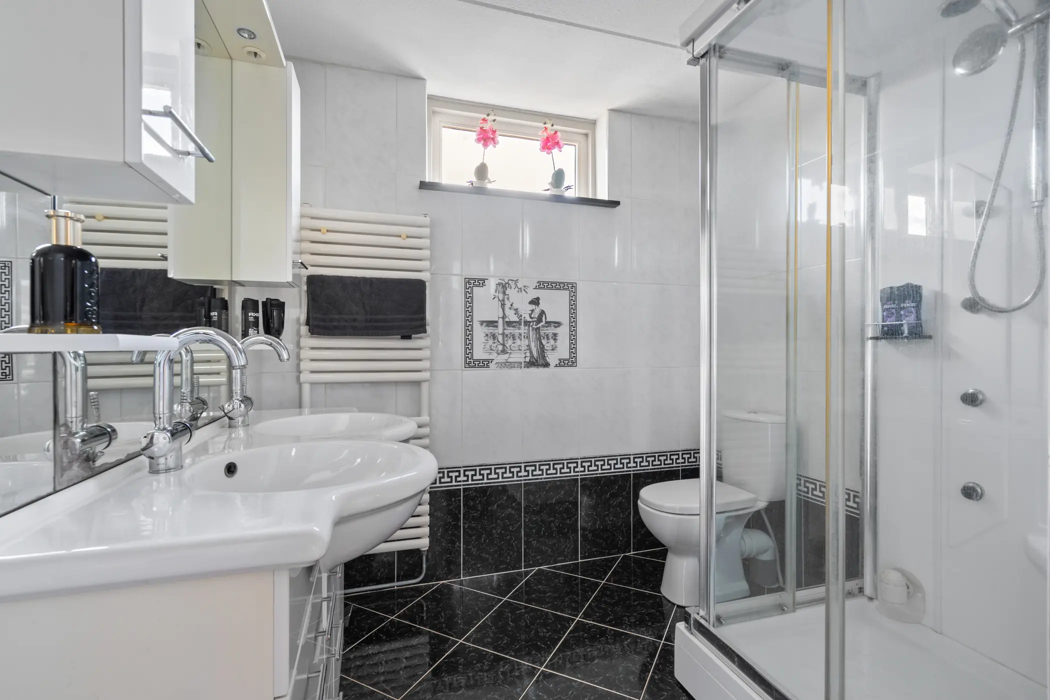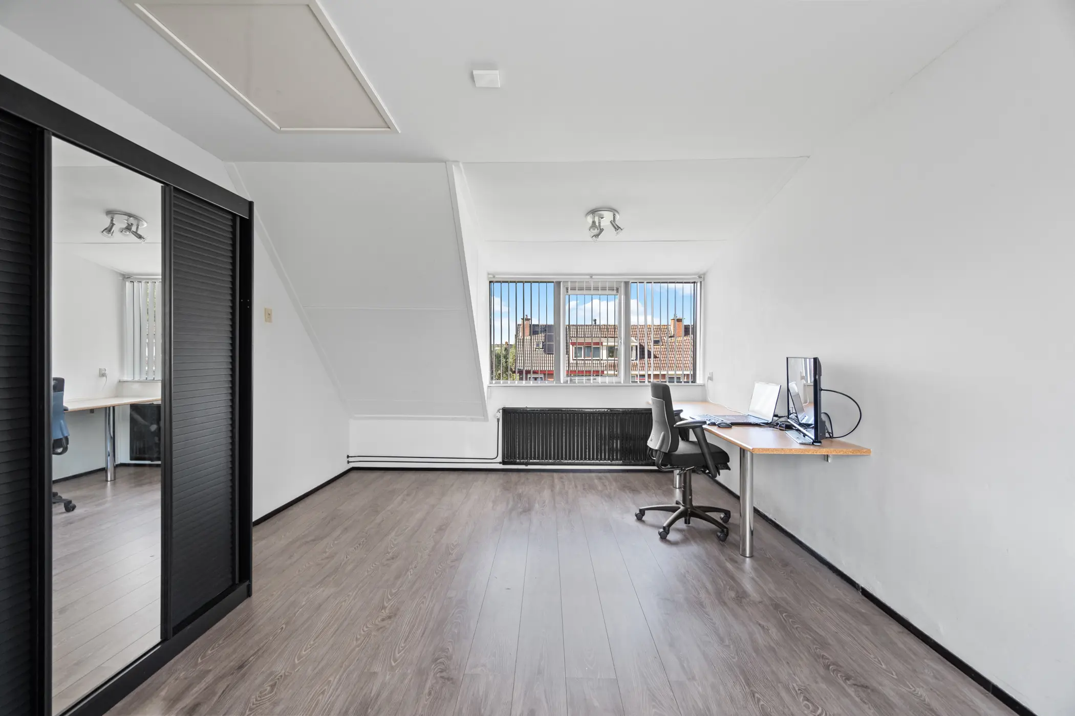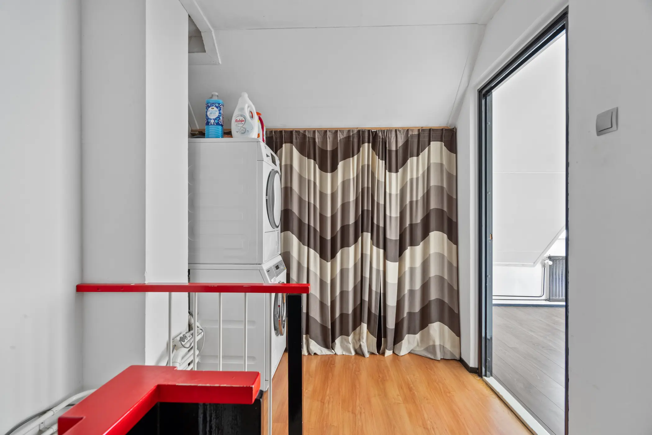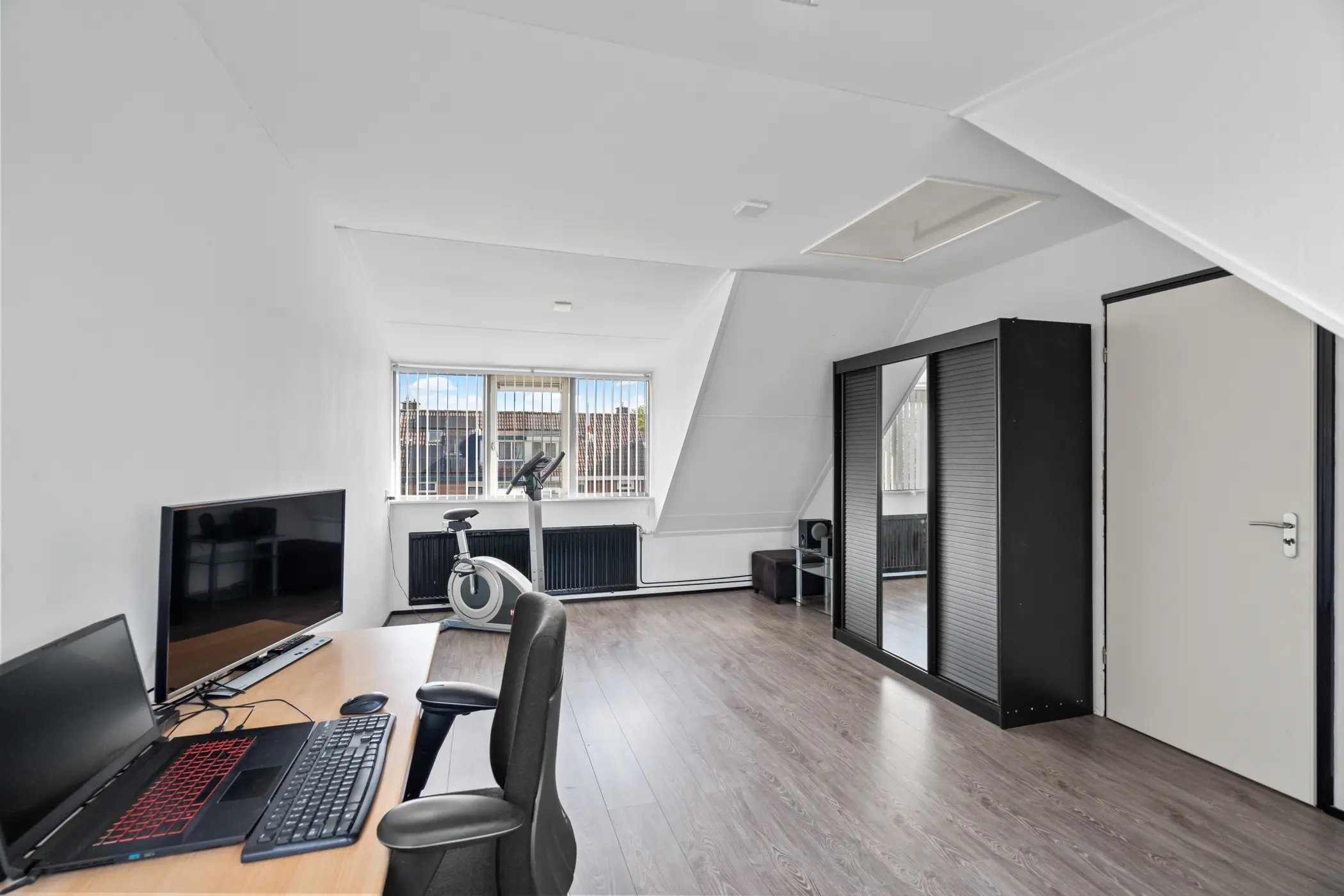 De vaste trap leidt naar de ruime zolderverdieping. Dankzij de dakkapellen aan zowel de voor- als de achterzijde is deze verdieping opvallend licht en praktisch bruikbaar. Op de voorzolder bevinden zich de aansluitingen voor de wasmachine en droger. De grote zolderkamer biedt volop mogelijkheden, bijvoorbeeld als hobbyruimte of werkplek.