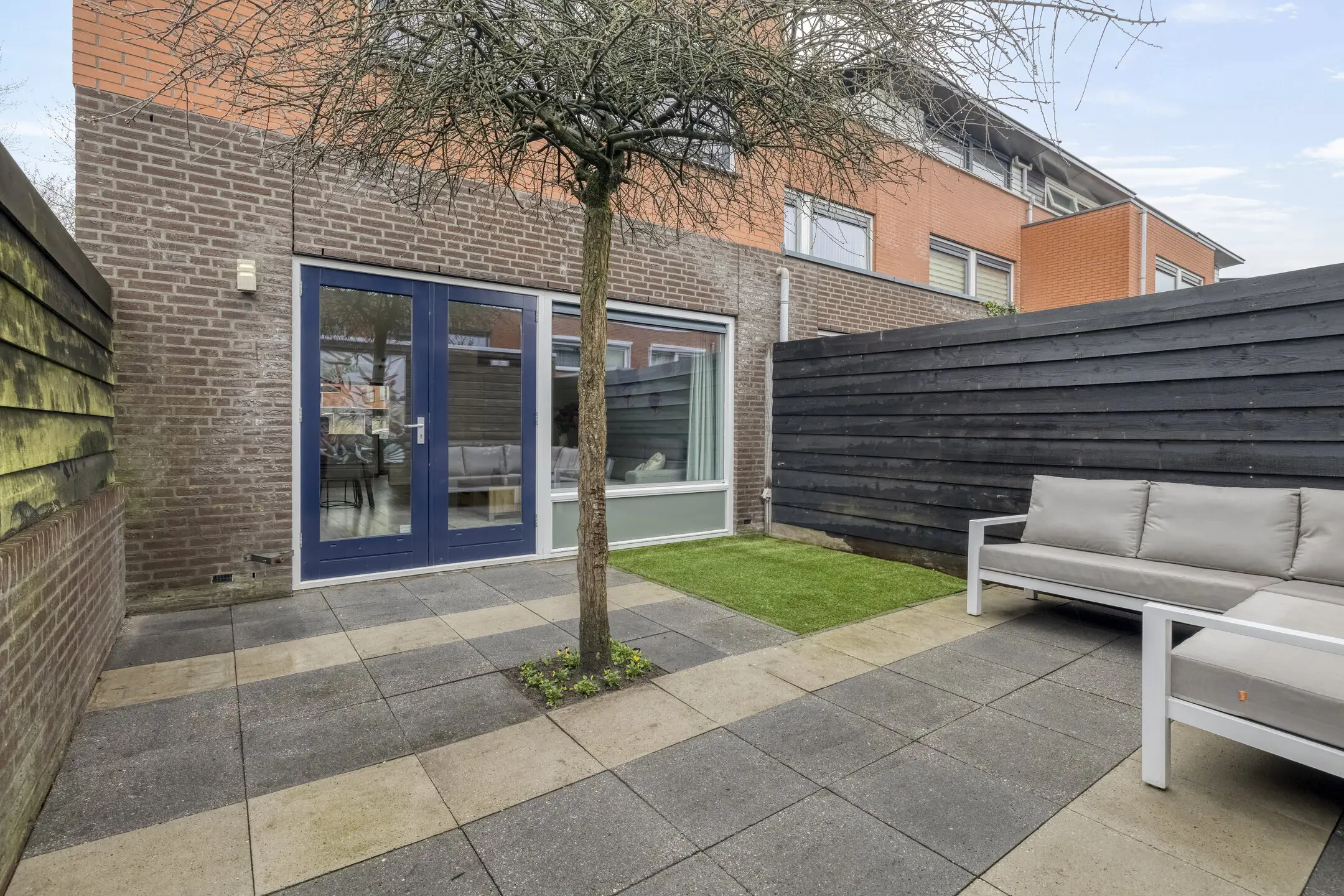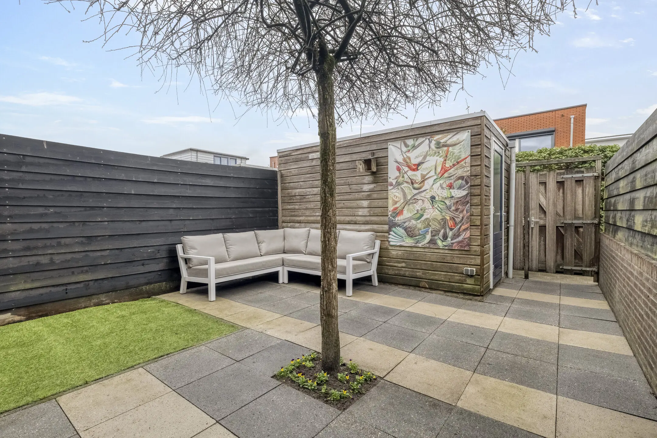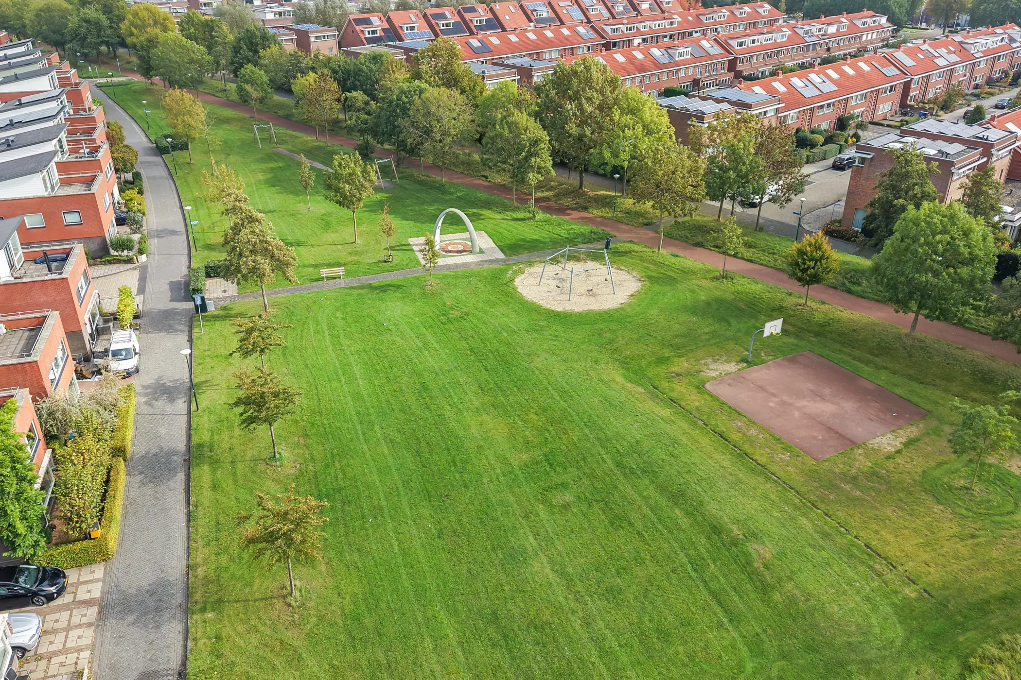 De achtertuin en voortuin zijn verzorgd aangelegd. De achtertuin beschikt over een vrijstaande houten berging en een praktisch achterom. Dankzij de hoekligging en de open omgeving ervaart u hier veel privacy. Ook de ruime voortuin is prettig in gebruik. Door de ligging kunt u hier in de middag heerlijk buiten zitten en genieten van de zon. Het grote knikarmscherm zorgt daarbij voor extra comfort door schaduw te bieden en draagt er bovendien aan bij dat de woning in de zomer aangenaam koel blijft.