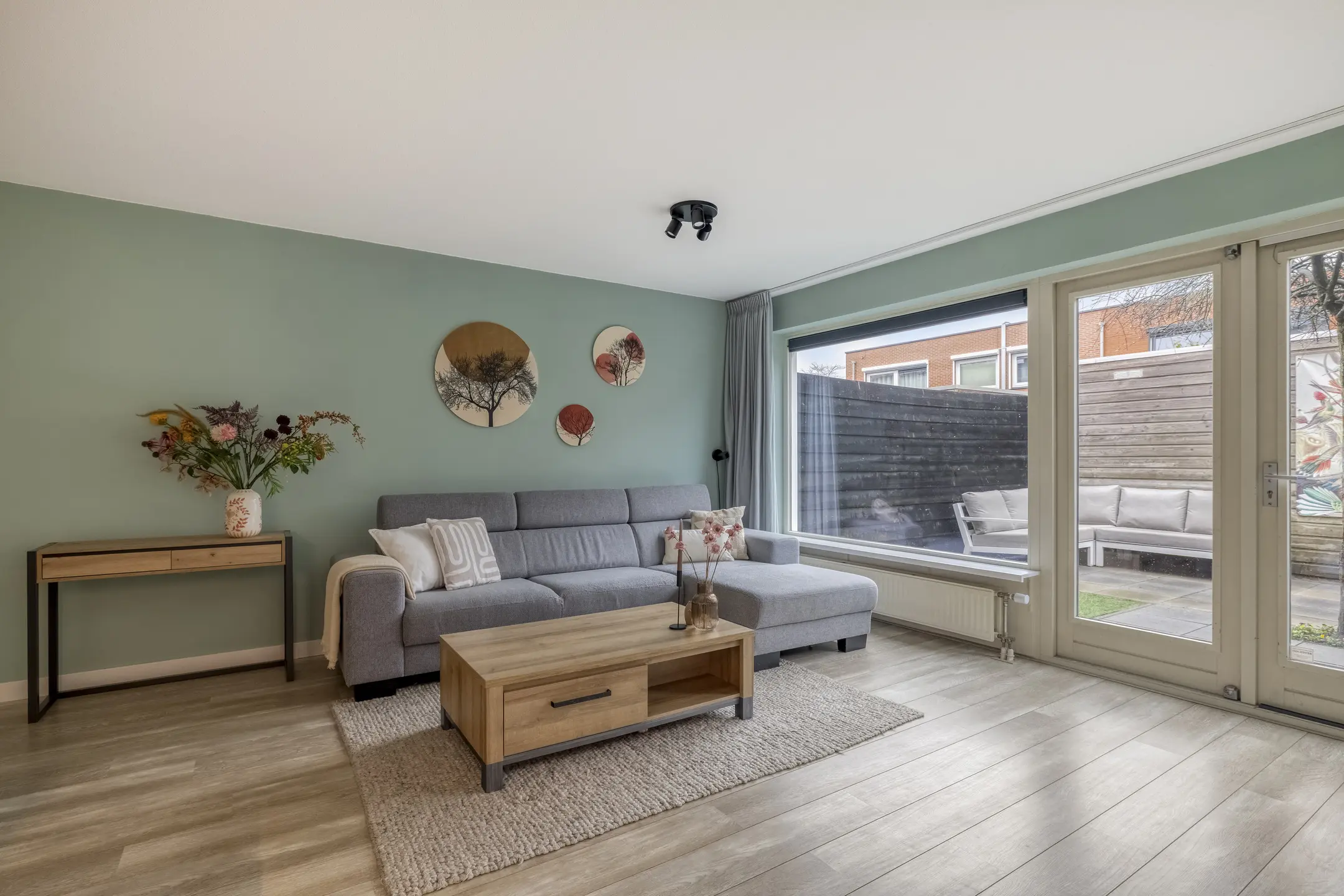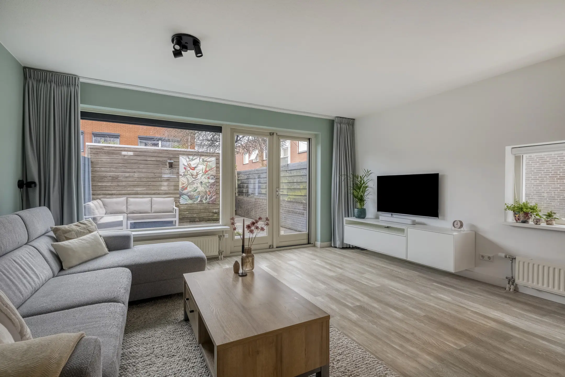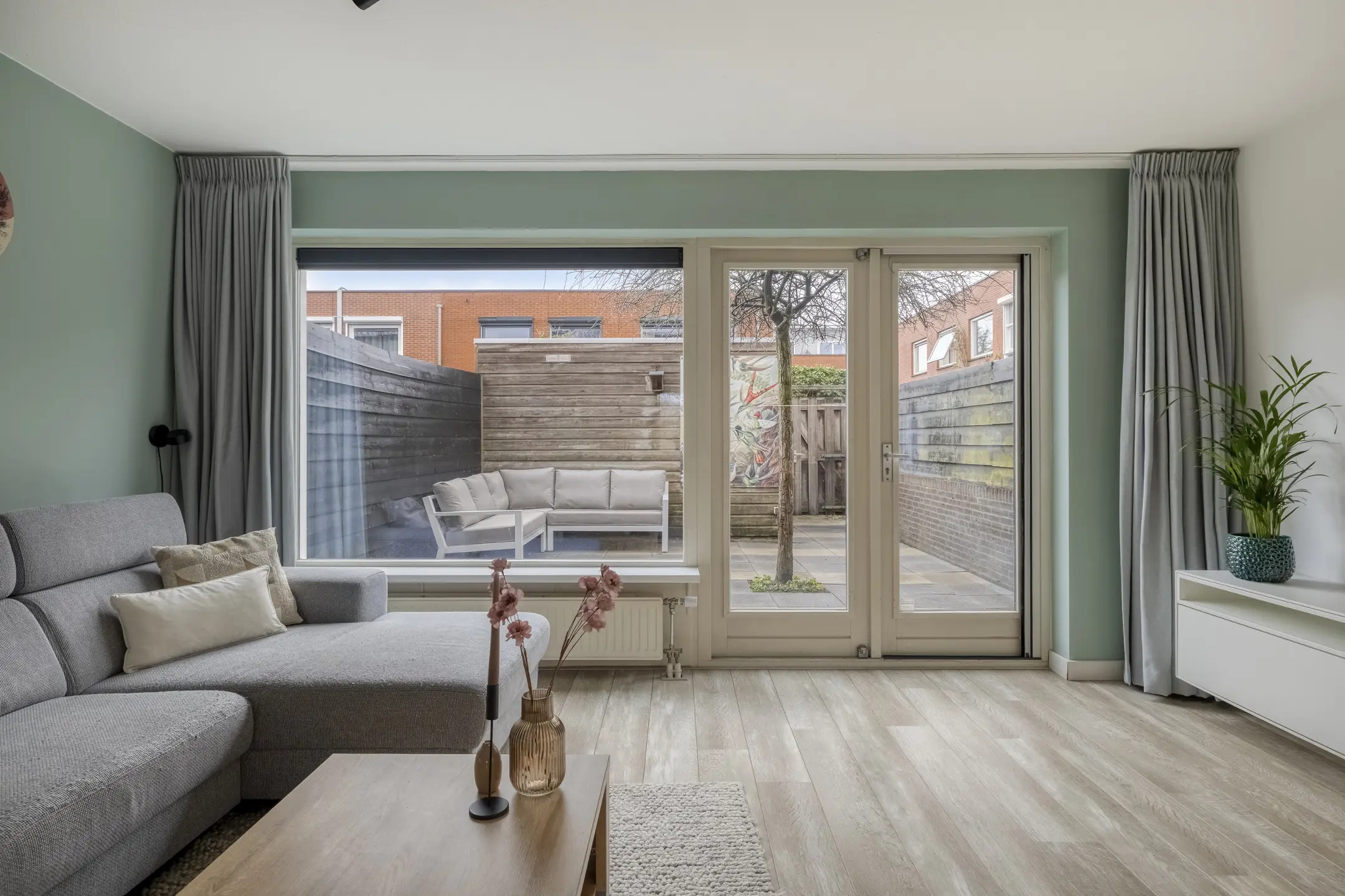De achtertuin en voortuin zijn verzorgd aangelegd. De achtertuin beschikt over een vrijstaande houten berging en een praktisch achterom. Dankzij de hoekligging en de open omgeving ervaart u hier veel privacy. Ook de ruime voortuin is prettig in gebruik. Door de ligging kunt u hier in de middag heerlijk buiten zitten en genieten van de zon. Het grote knikarmscherm zorgt daarbij voor extra comfort door schaduw te bieden en draagt er bovendien aan bij dat de woning in de zomer aangenaam koel blijft.