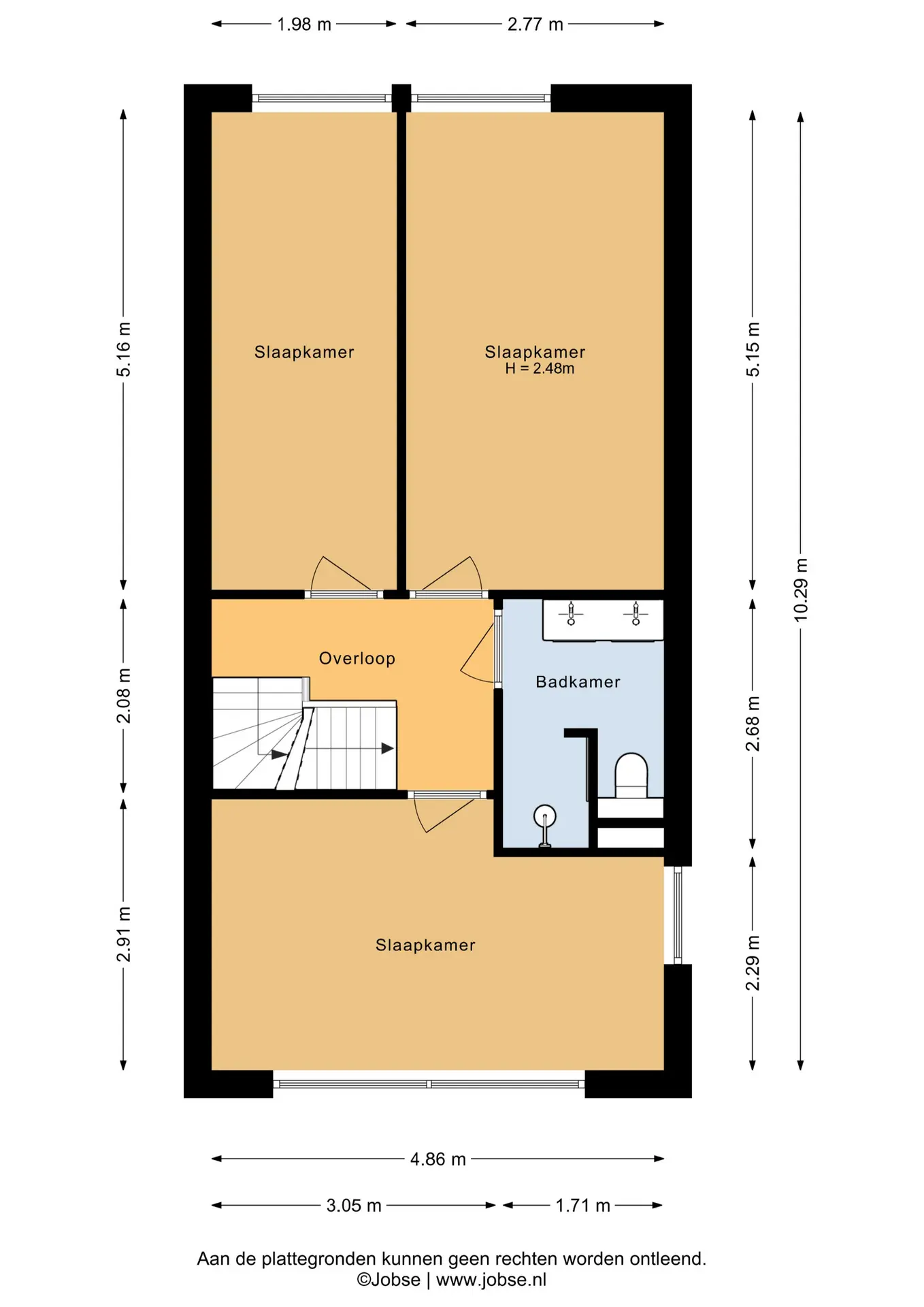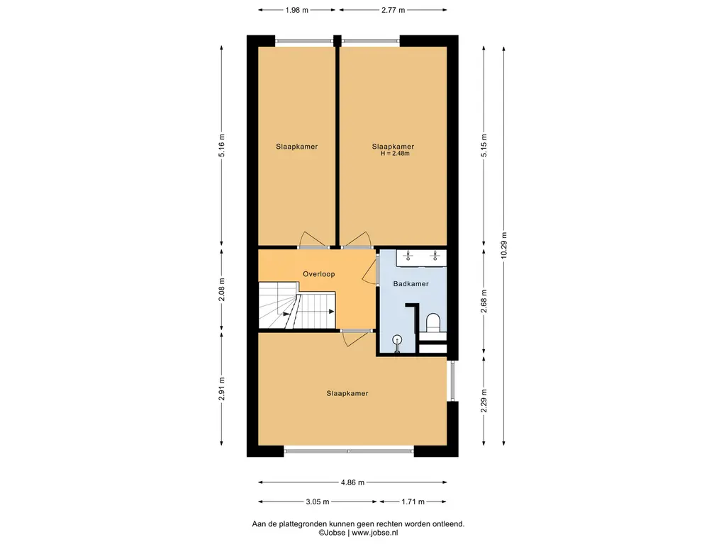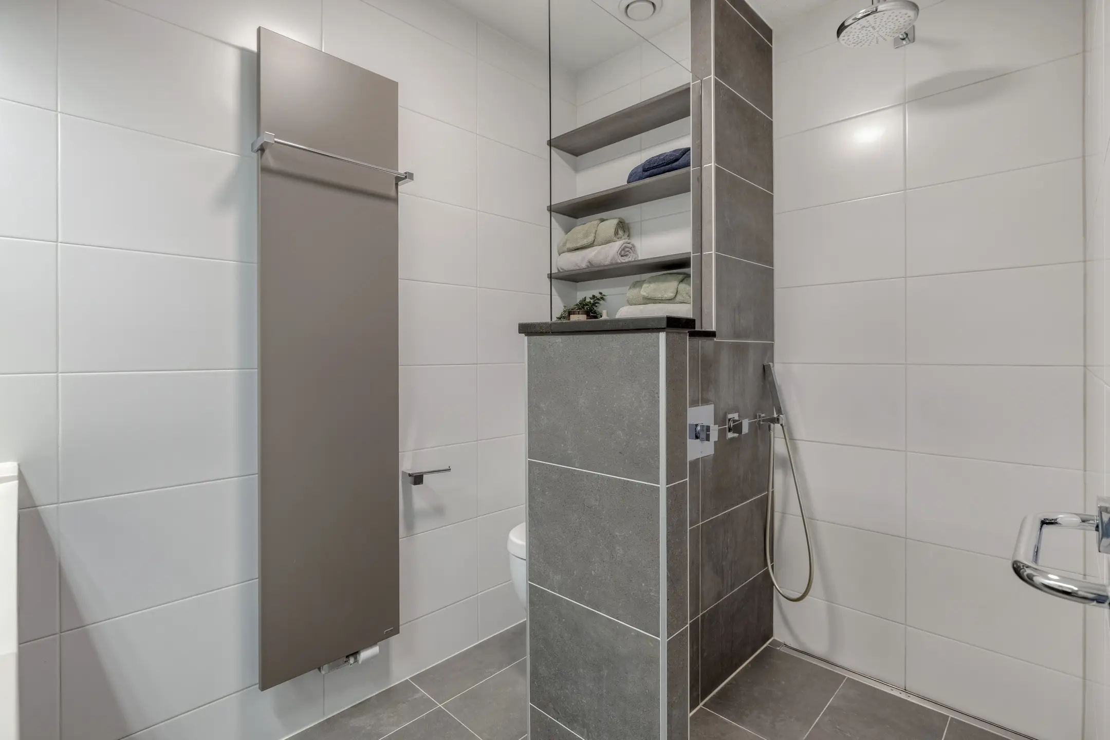 De overloop geeft toegang tot drie comfortabele slaapkamers en de moderne badkamer. Aan de voorzijde bevindt zich een royale slaapkamer over de volledige breedte van de woning, met extra zijraam en rolluiken. Deze kamer biedt een prettige lichtinval en een rustig uitzicht. Aan de achterzijde liggen nog twee goed bemeten slaapkamers, mede dankzij de uitbouw op deze verdieping. De moderne badkamer is stijlvol uitgevoerd en voorzien van een inloopdouche met drain, hand- en regendouche, een dubbele wastafel met meubel en een tweede toilet. Via een vaste trap bereikt u de tweede verdieping.