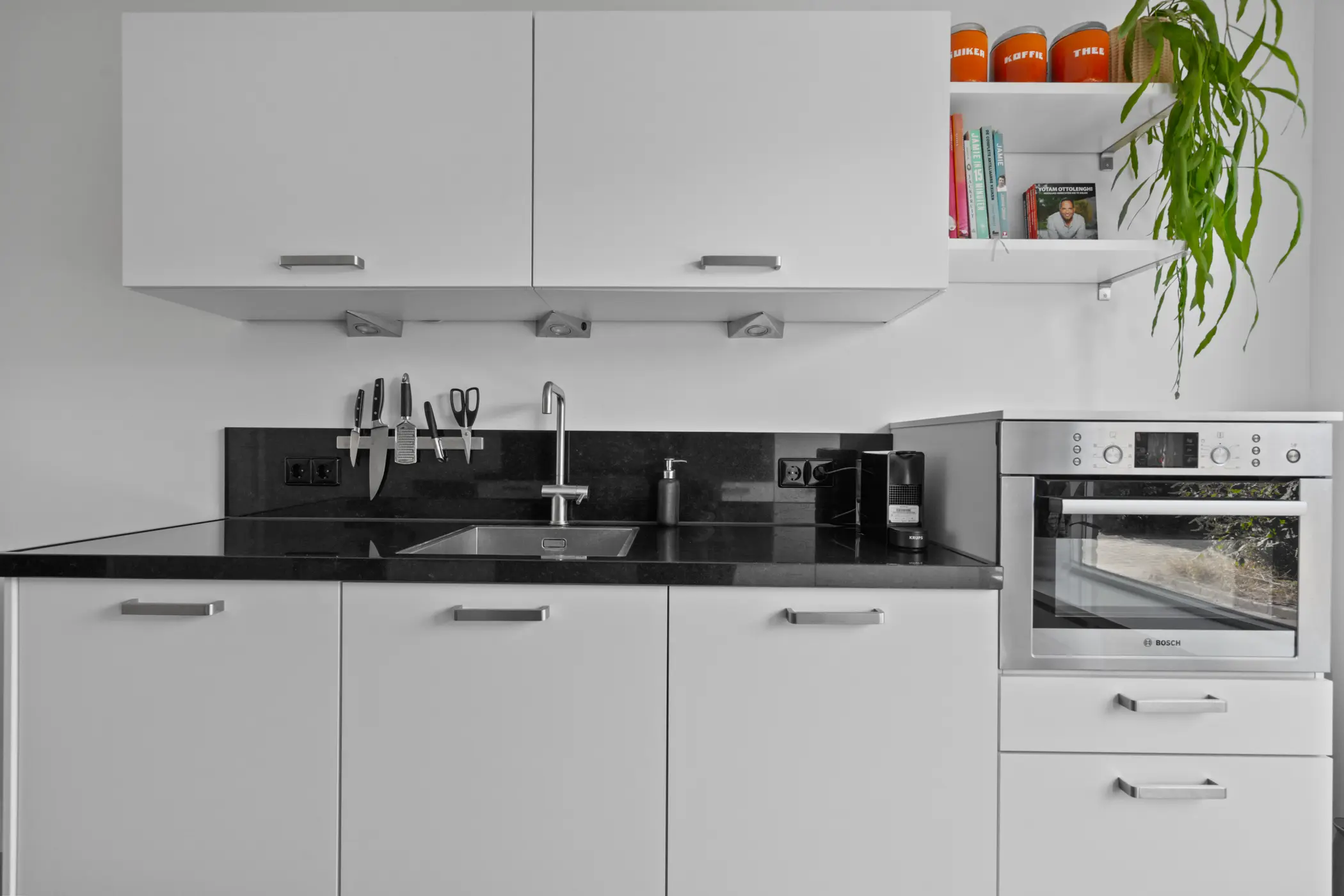 - Keuken met stenen blad en complete inbouwapparatuur;