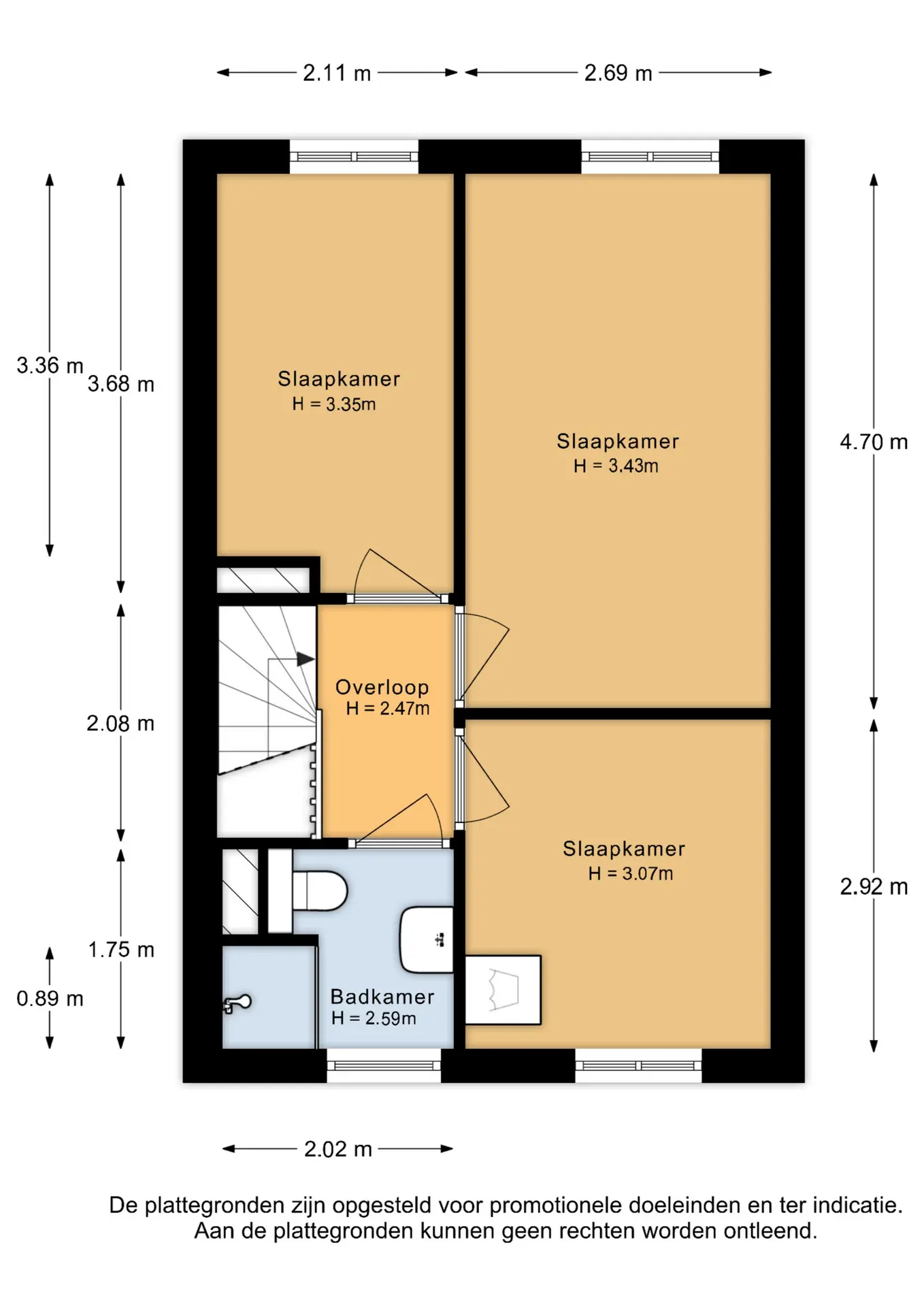 Op de eerste verdieping vind je drie slaapkamers en een badkamer. De slaapkamers zijn licht en ruim, mede dankzij de hoge plafonds die zorgen voor een extra ruimtelijk gevoel. Eén van de kamers is bovendien voorzien van airconditioning, zodat je ook tijdens warme zomerdagen comfortabel slaapt.