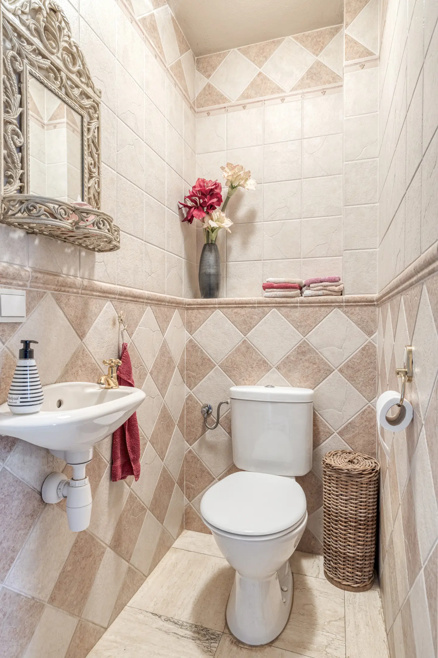 De villa beschikt over drie volwaardige slaapkamers en twee badkamers, wat zorgt voor optimaal wooncomfort voor het hele gezin of voor wie graag gasten ontvangt. De lichtrijke leefruimtes bieden een mooi zicht op de tuin en creëren een aangename verbinding tussen binnen en buiten.