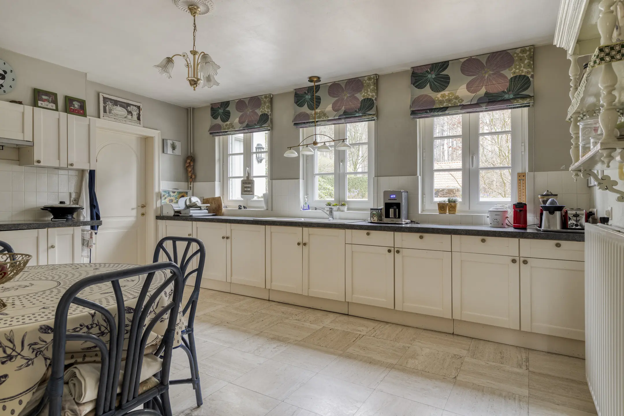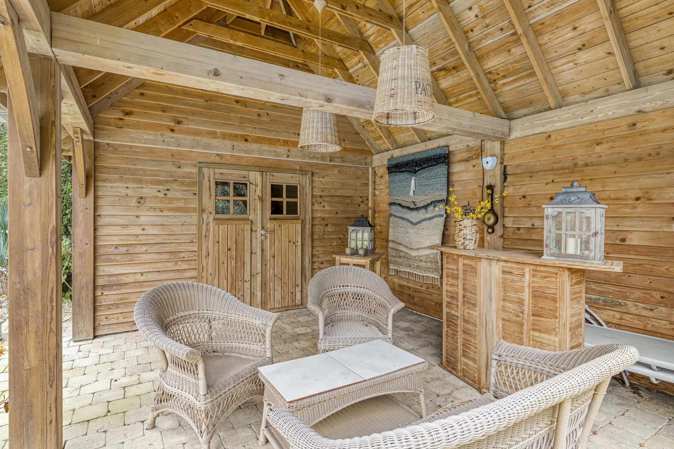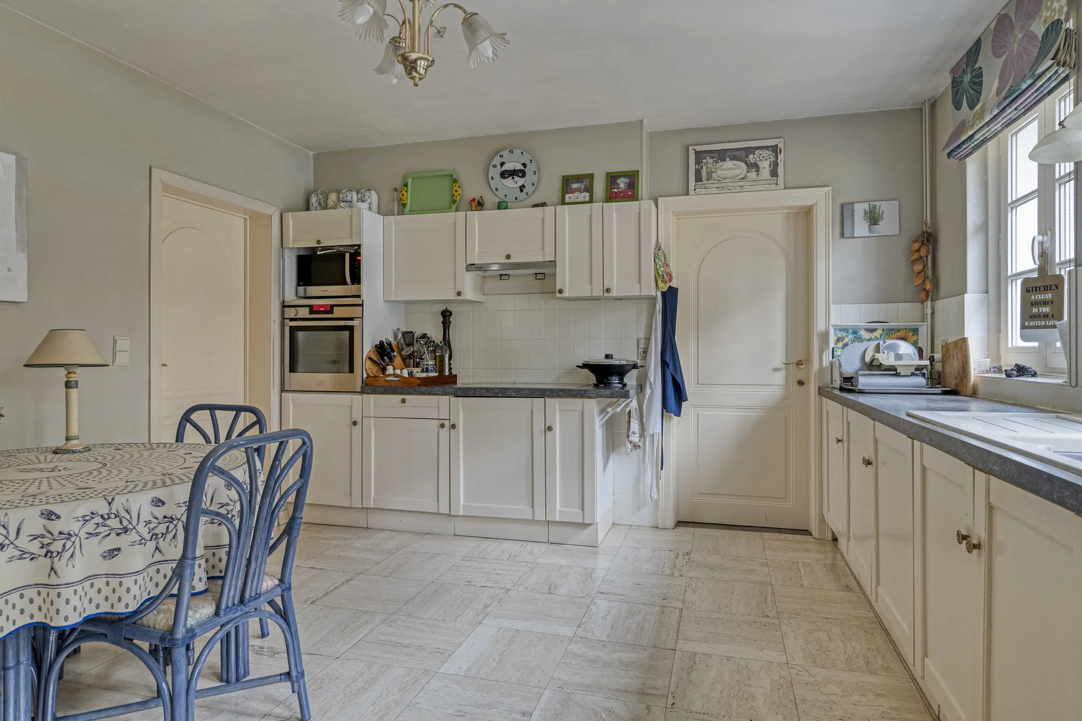 Buiten wordt het puur genieten. De fraai aangelegde tuin herbergt een zwembad met bijhorend poolhouse, ideaal voor ontspanning, zomerse dagen en gezellige momenten met familie en vrienden. De prachtige, groene omgeving garandeert rust en discretie, terwijl alle nodige voorzieningen vlot bereikbaar zijn.