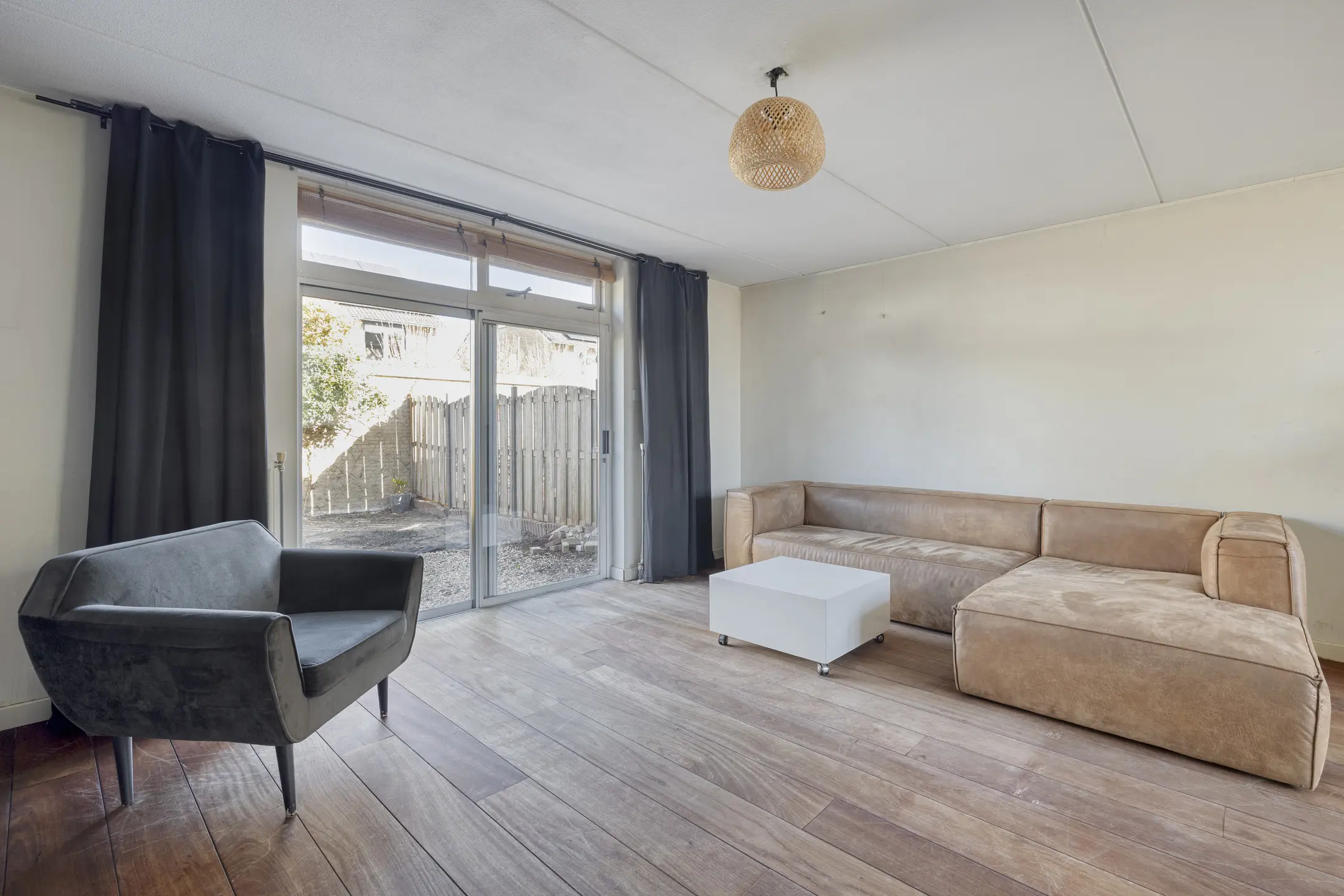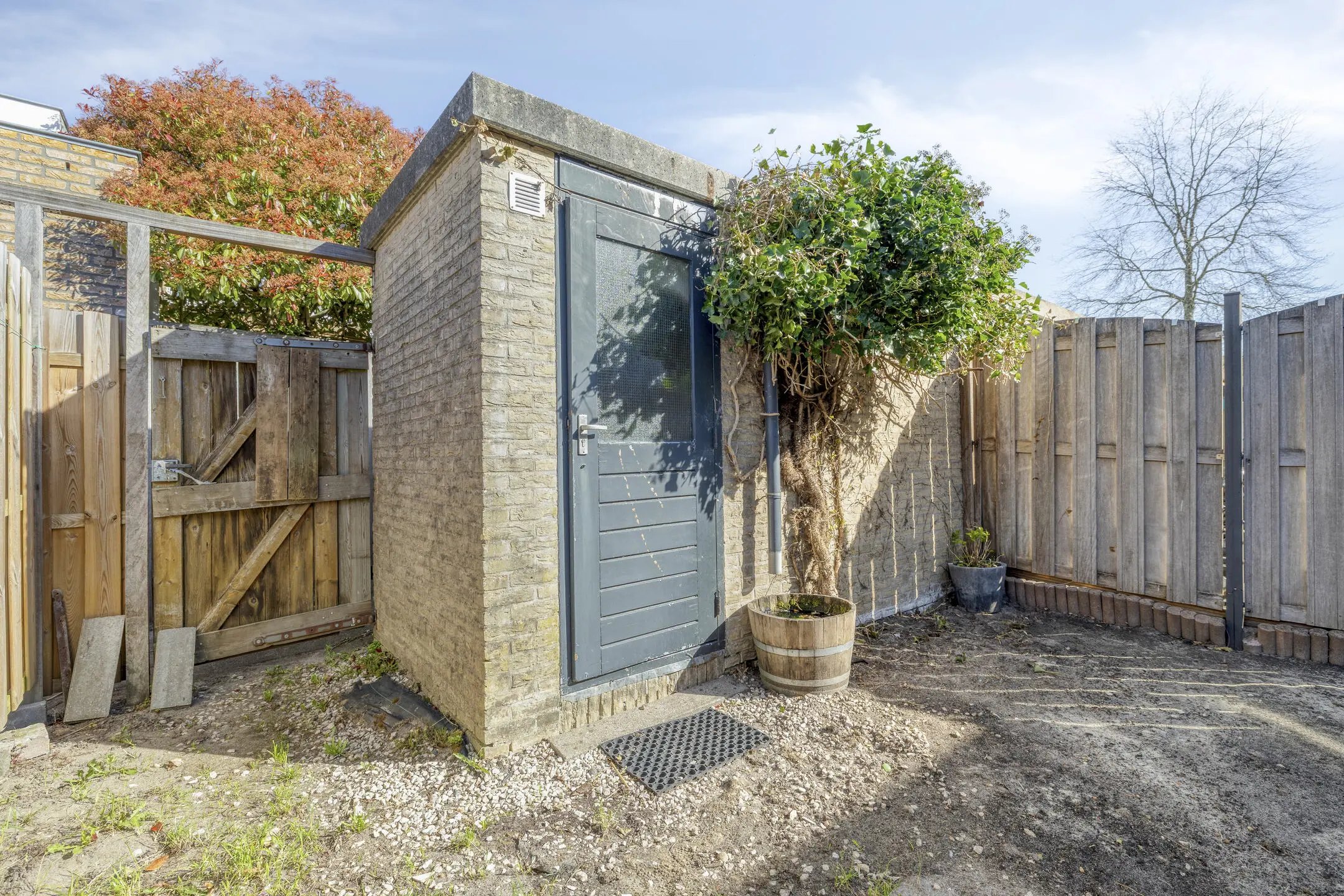 De woning beschikt over een achtertuin, een eigen parkeerplaats en een stenen berging met achterom – ideaal voor fietsen en extra opslag.