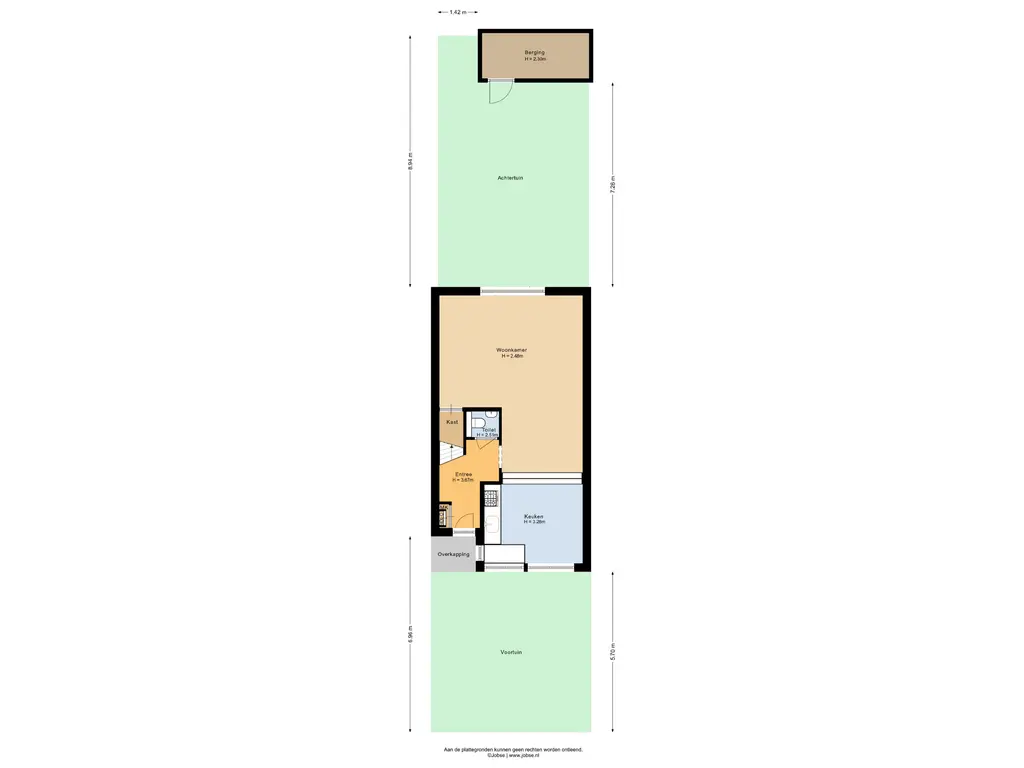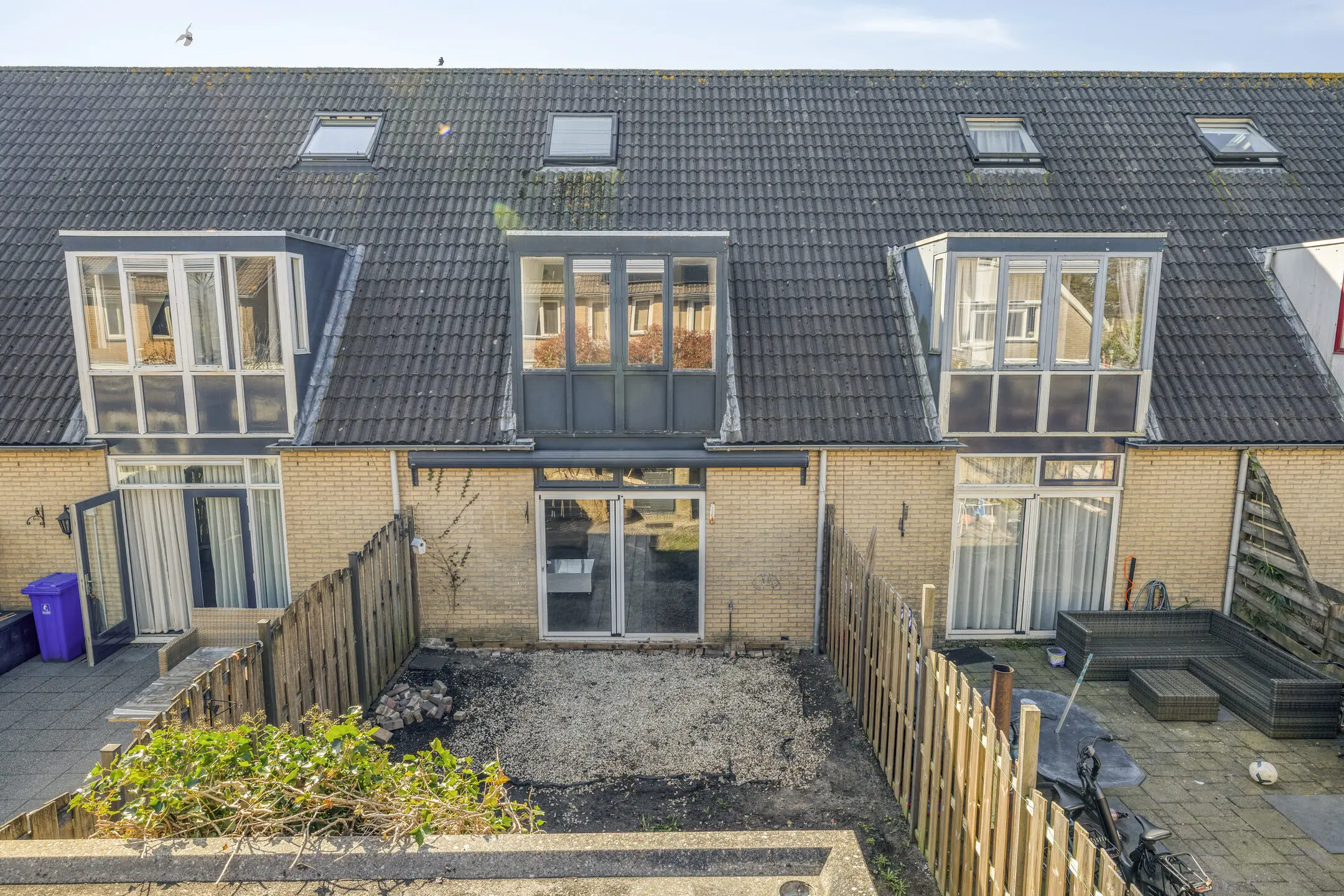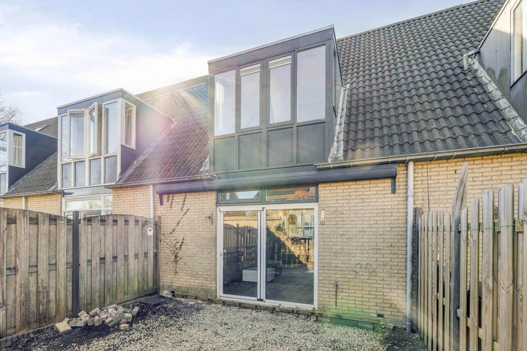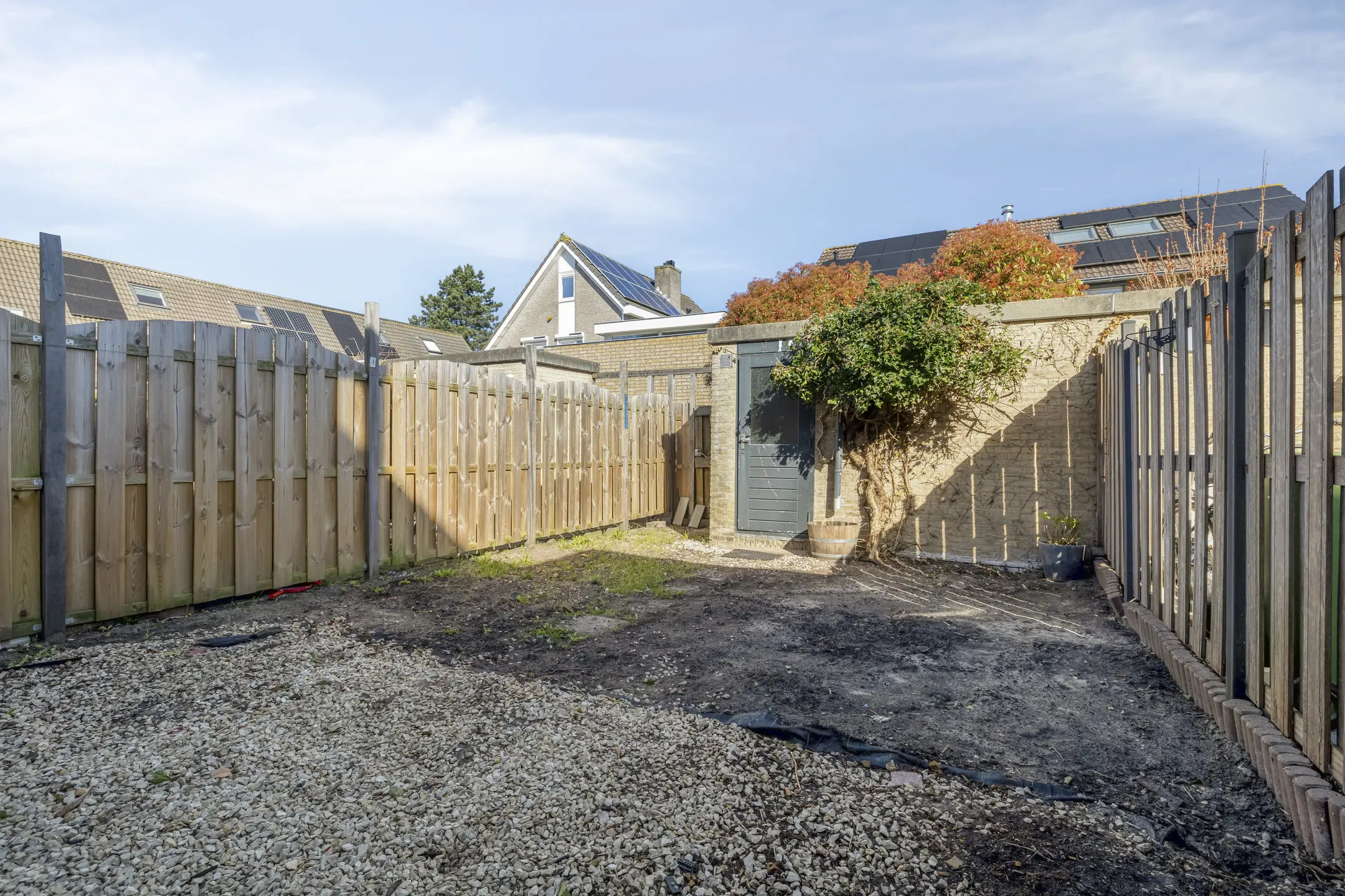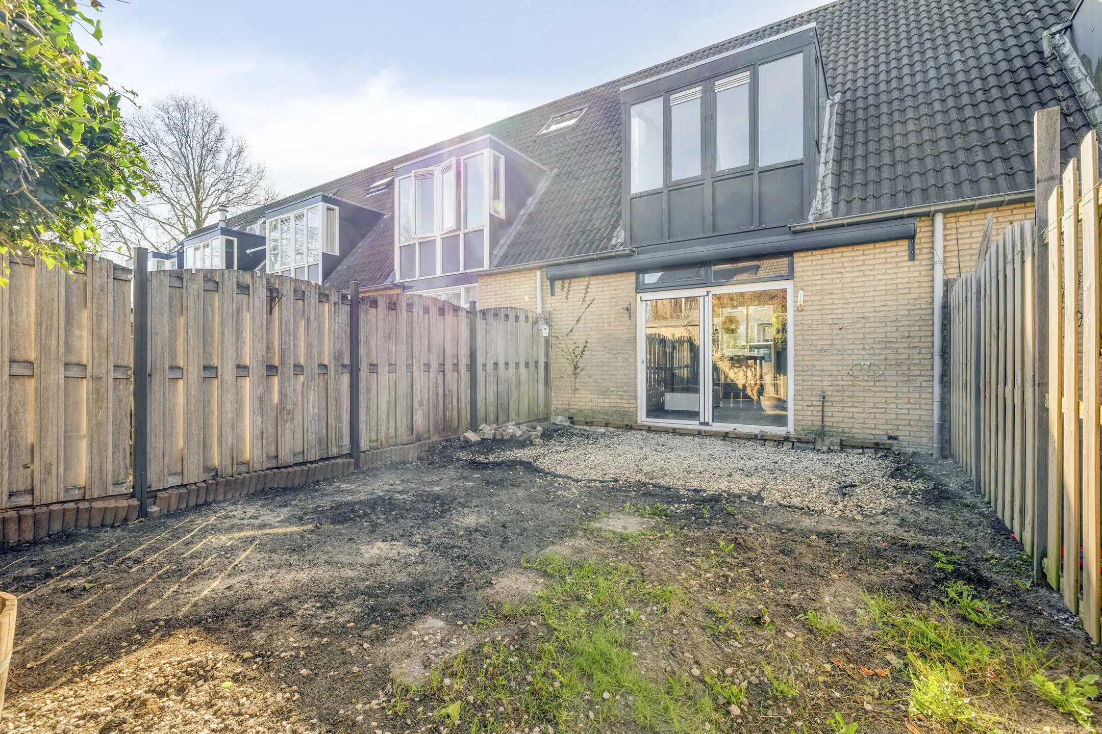- Achtertuin op het noorden, door het lange schuine dak is er zomers veel zon