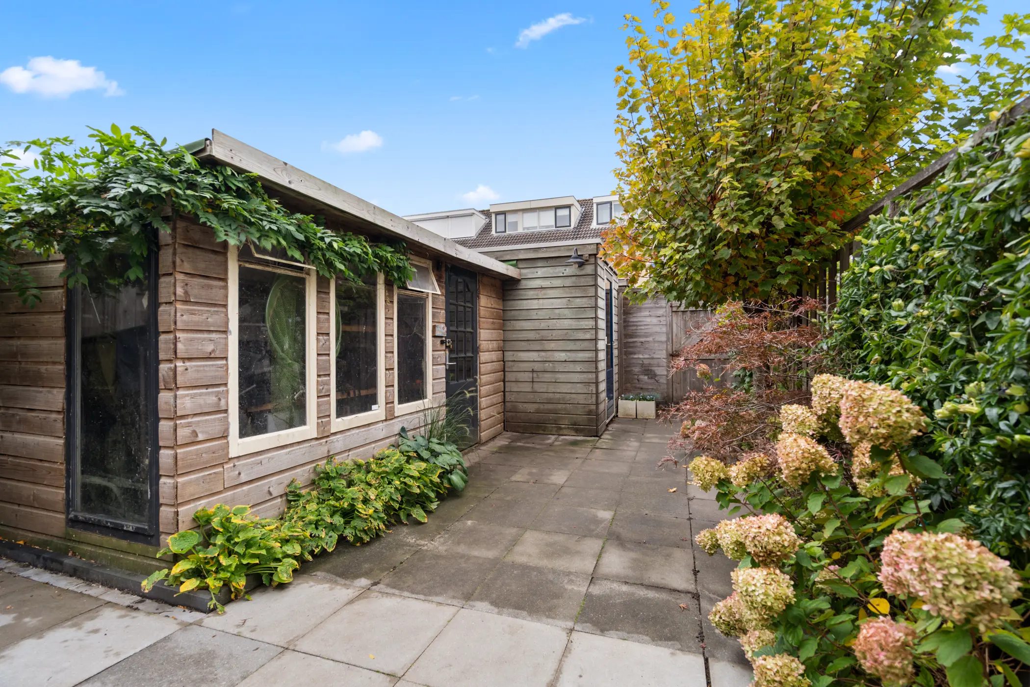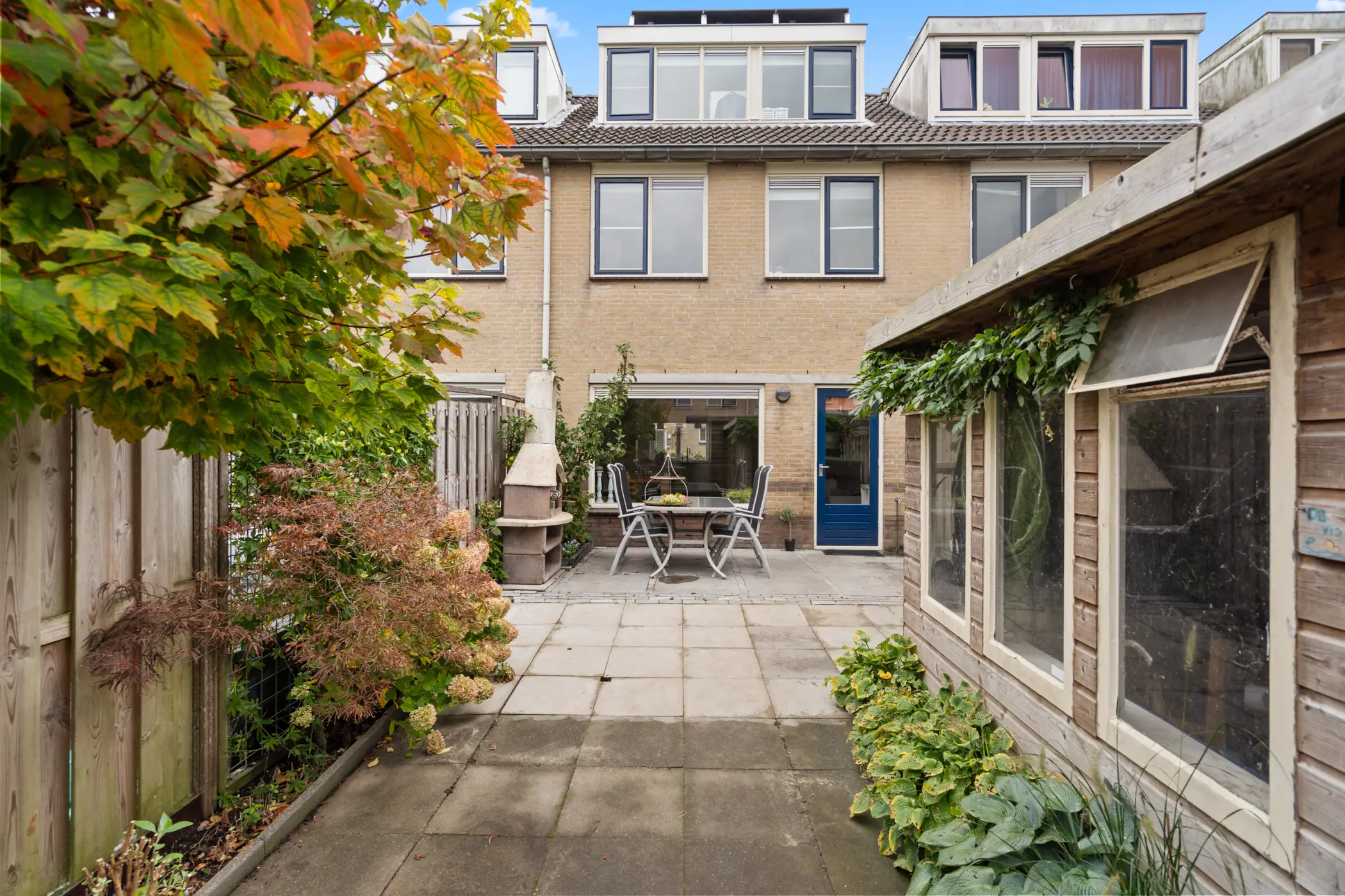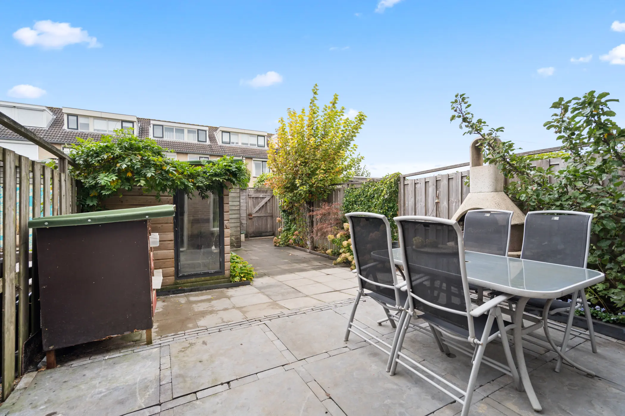 De achtertuin ligt op het noordwesten, waardoor je 's middags en 's avonds heerlijk van de zon kunt genieten. De onderhoudsvriendelijke inrichting met bestrating en groene borders maakt het een fijne, verzorgde buitenruimte. Achterin staan twee houten bergingen met elektra en is er een handige achterom. Extra interessant: het terras is onderheid, waardoor er volop mogelijkheden zijn om in de toekomst de woonkamer uit te bouwen en zo extra wooncomfort te creëren.