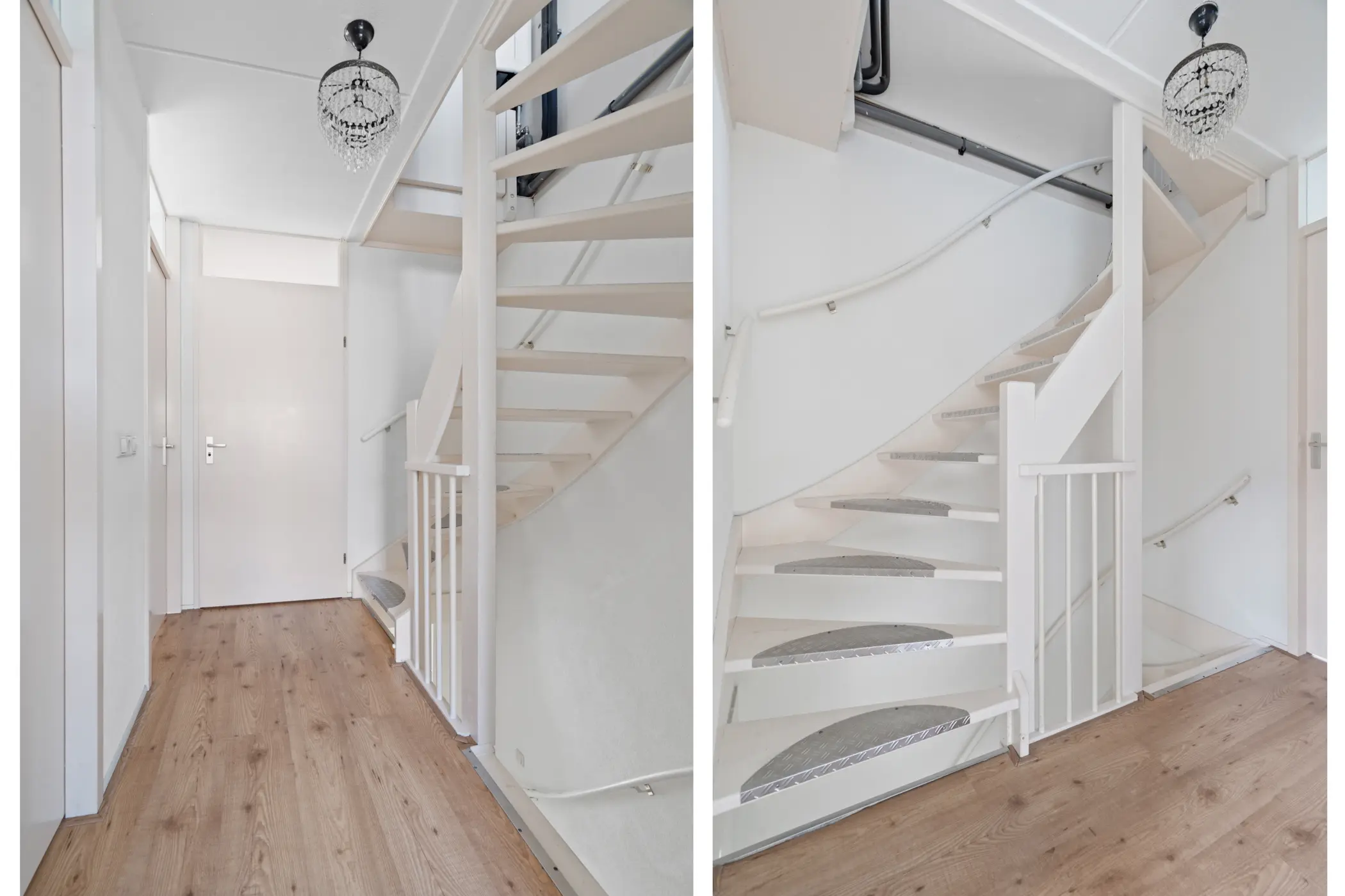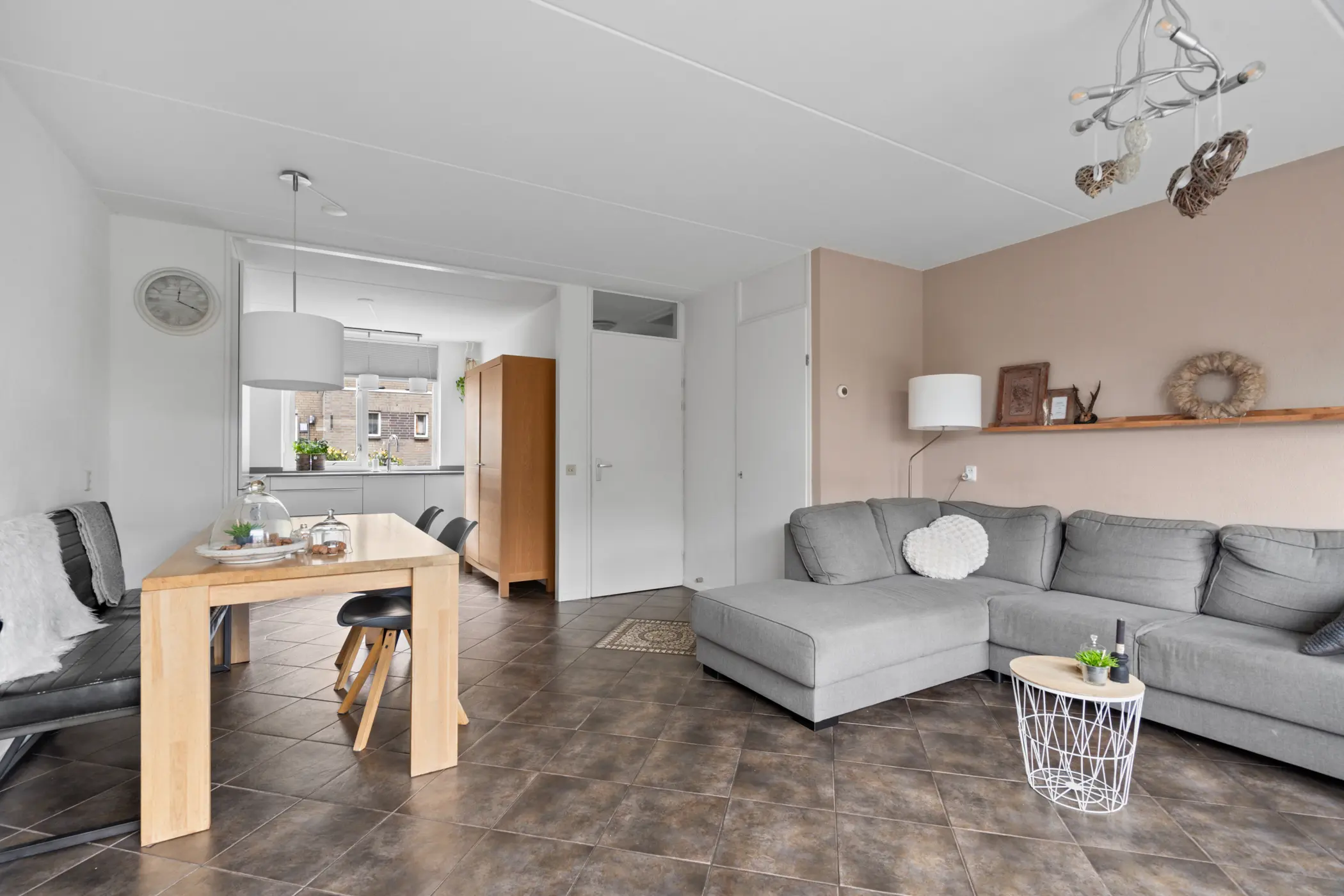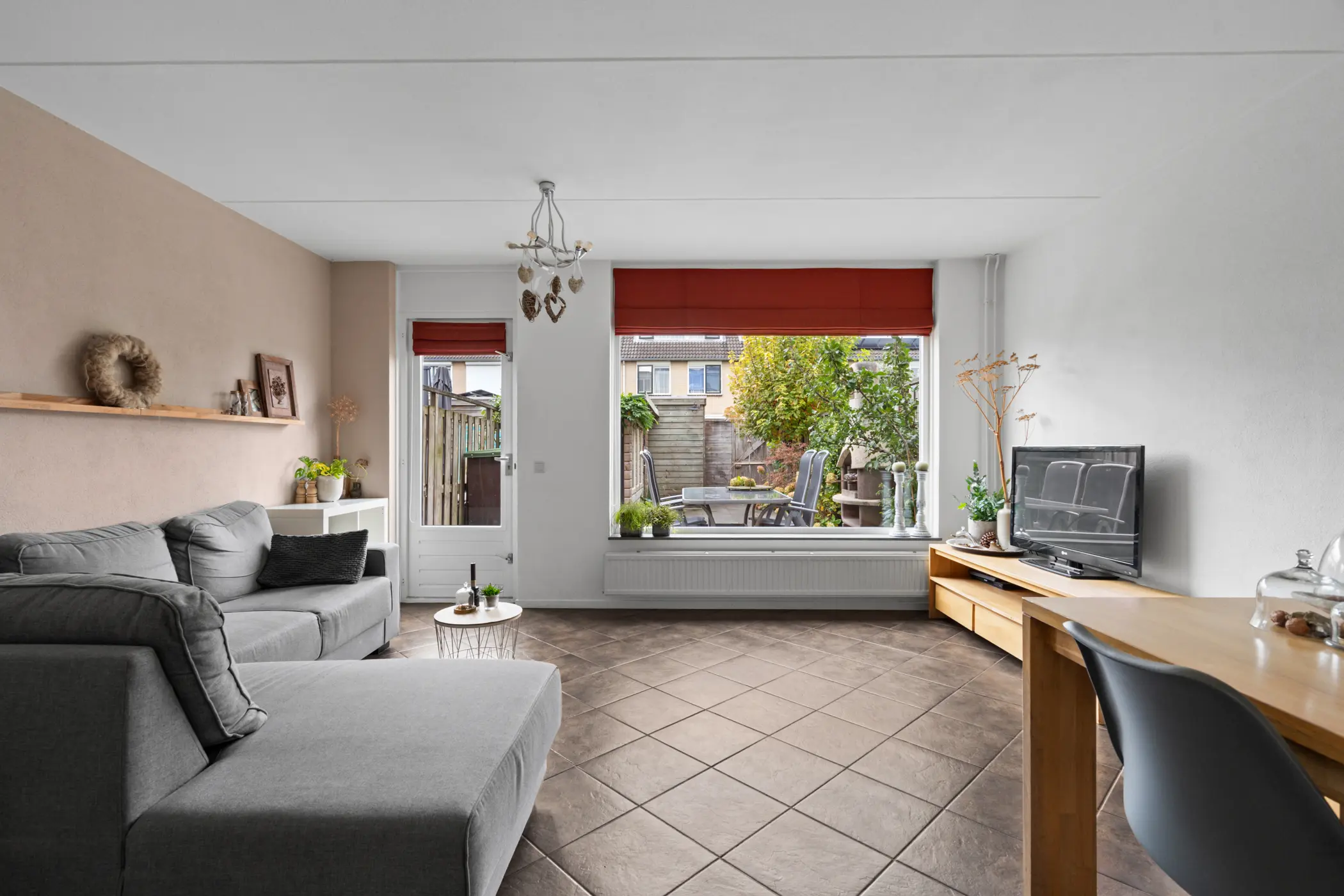 Via de voortuin met peren leibomen stap je binnen in de hal. Hier vind je de meterkast, het toilet met wandcloset en fonteintje, de trap naar boven én toegang tot de lichte en sfeervolle woonkamer.