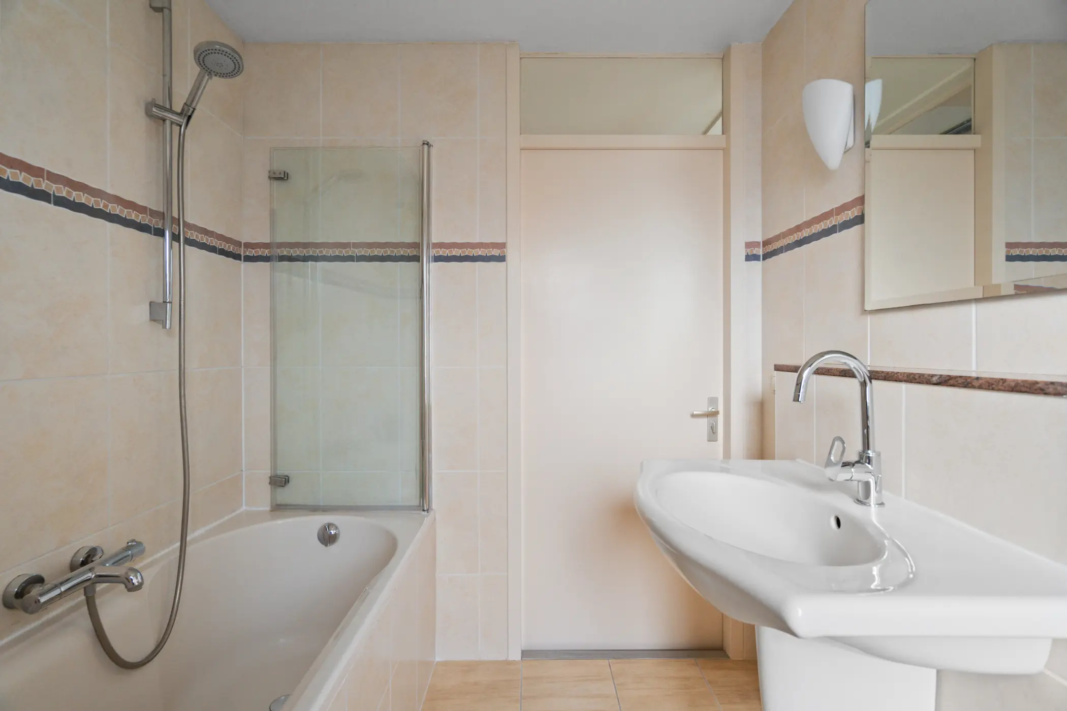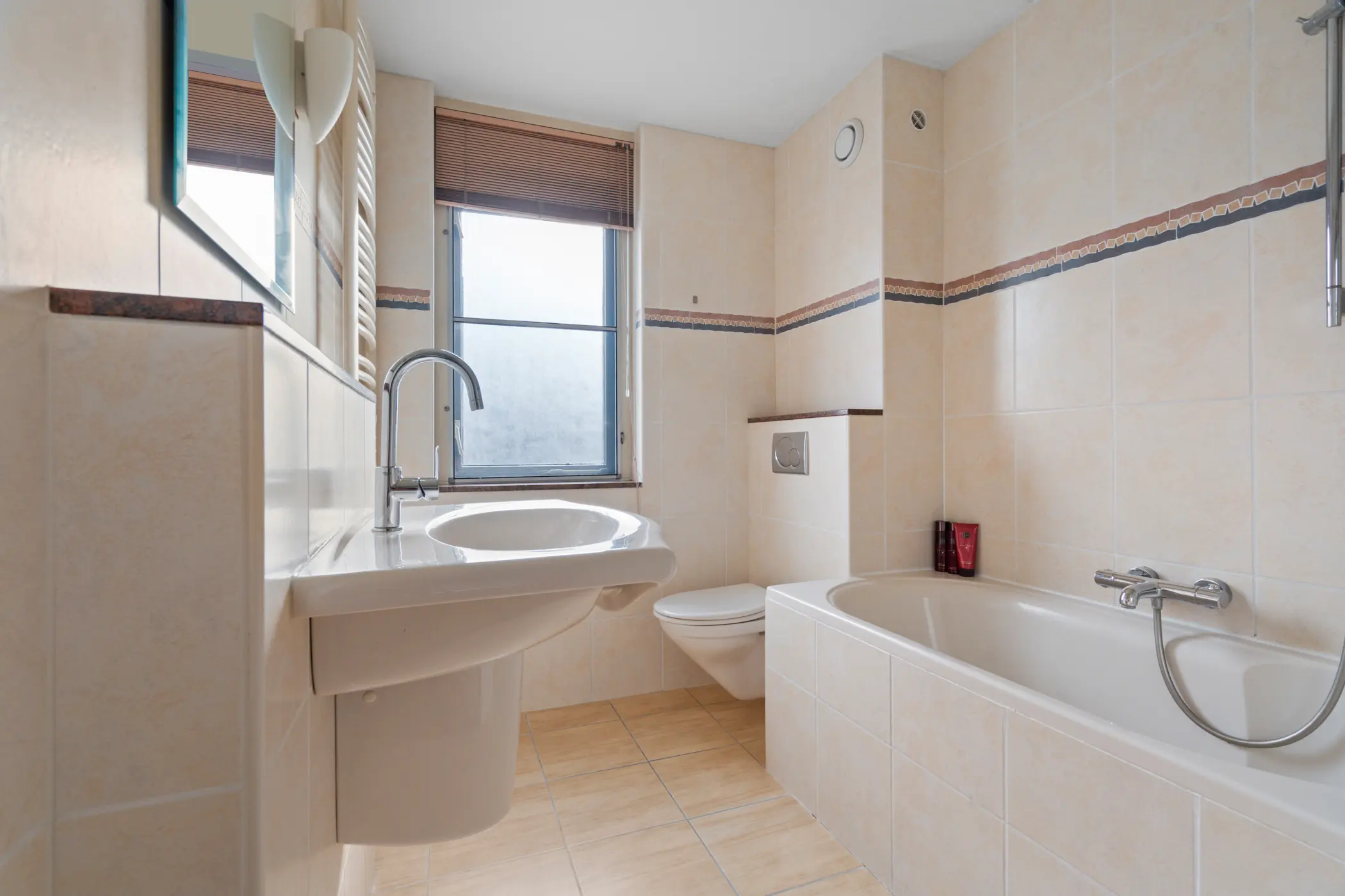 Op de eerste verdieping vind je drie fijne slaapkamers en een volledig betegelde badkamer. De badkamer is uitgerust met een bad-douchecombinatie, wandcloset, wastafel en een designradiator.