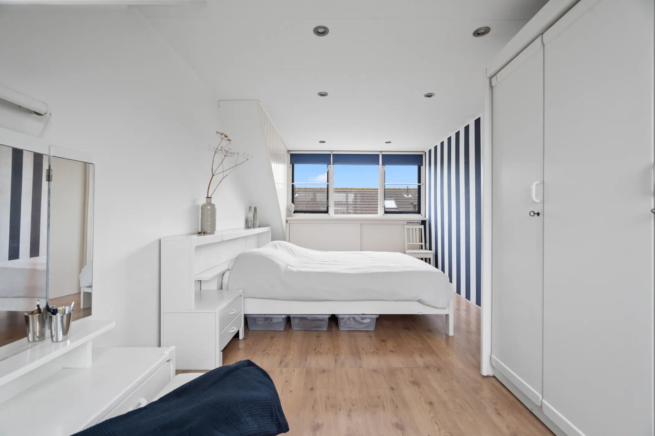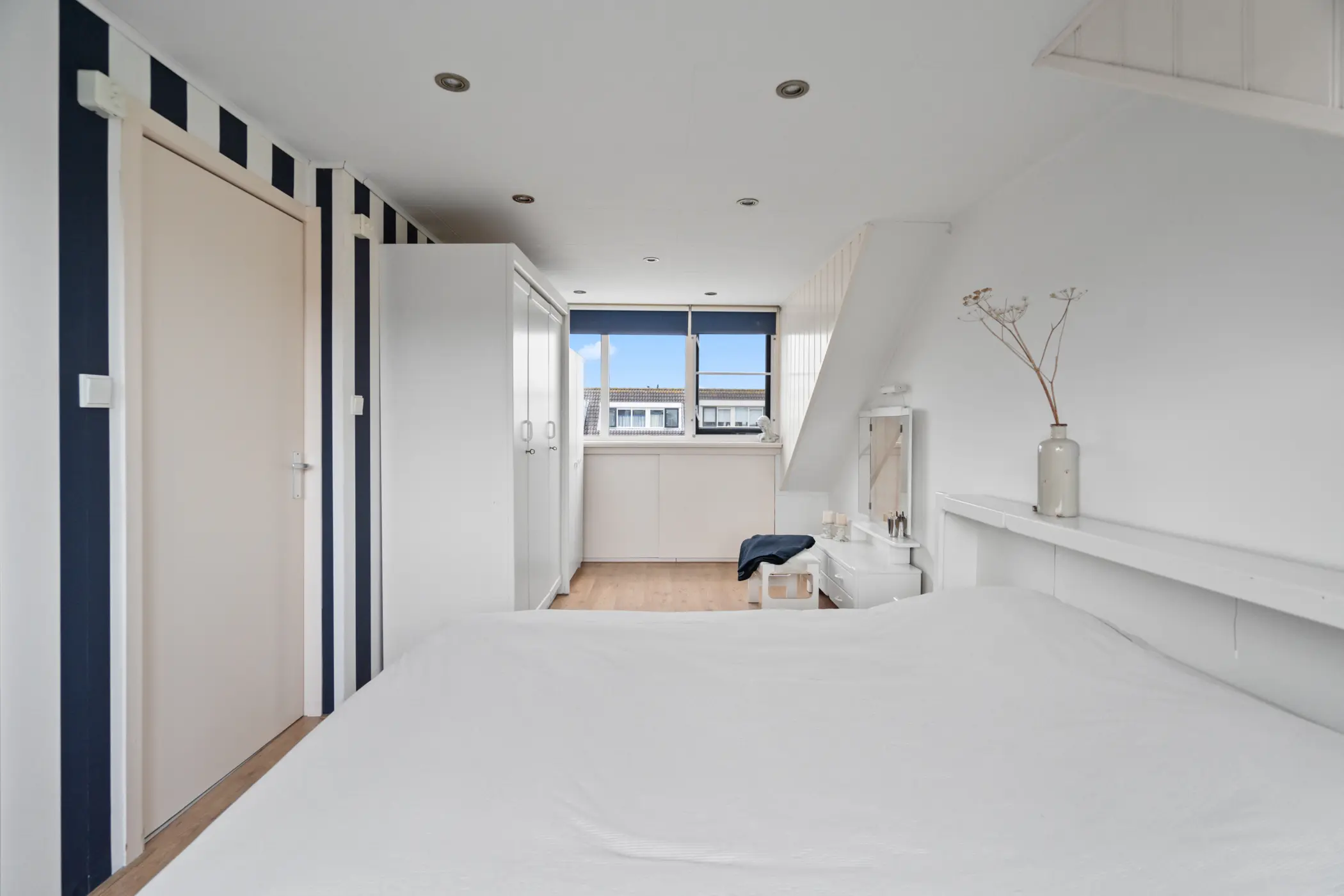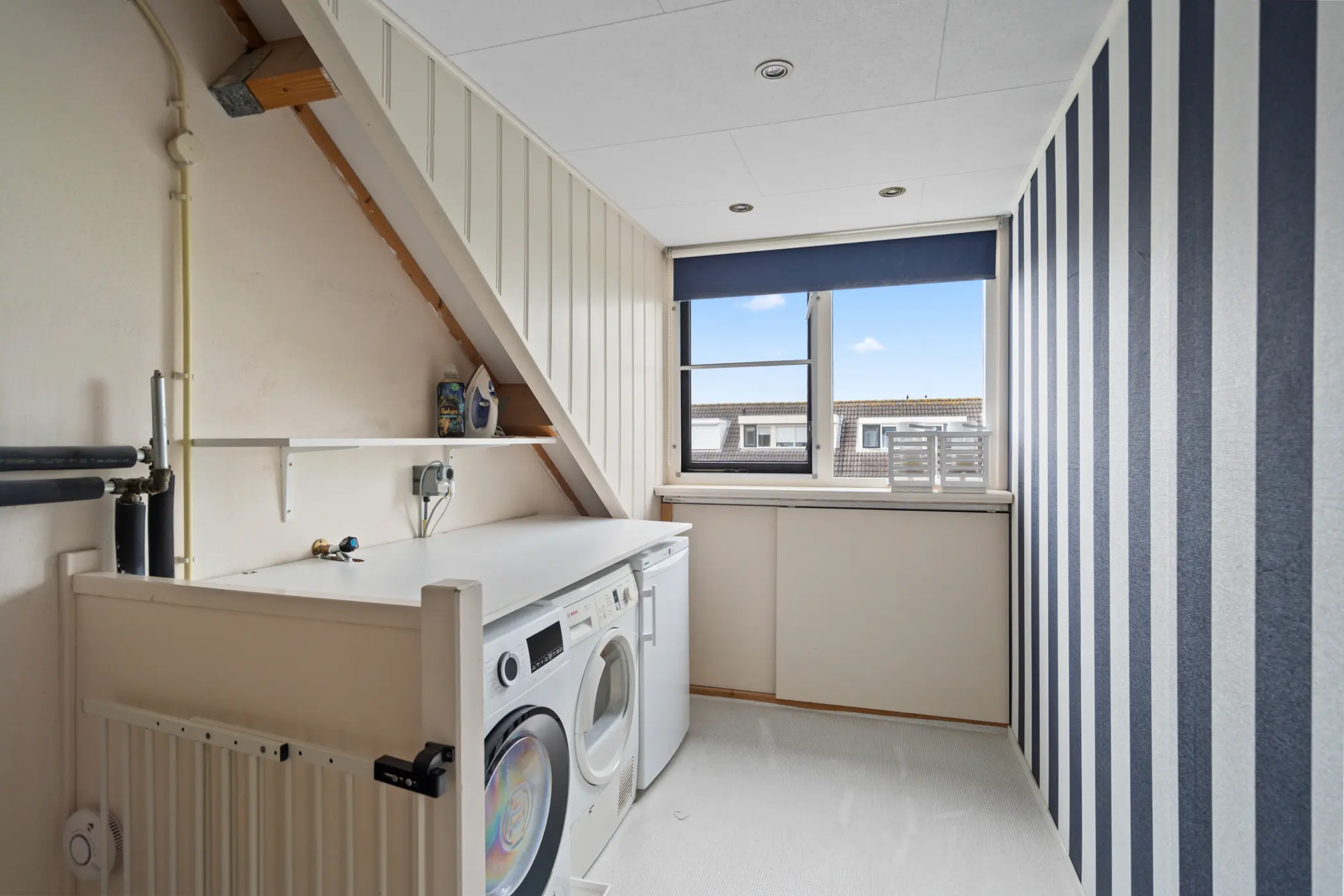 Op de tweede verdieping vind je een lichte en praktische overloop met aansluitingen voor de wasmachine en droger, evenals de opstelplaats van de cv-ketel, deze is in 2025 nog vernieuwd. Daarnaast bevindt zich een royale vierde slaapkamer, die dankzij de dakkapellen aan zowel de voor- als achterzijde geniet van extra licht en ruimte. Deze veelzijdige kamer biedt volop mogelijkheden: desgewenst eenvoudig op te splitsen in twee volwaardige slaapkamers, of te gebruiken als sfeervol kantoor, ruime logeerkamer of hobbyruimte.