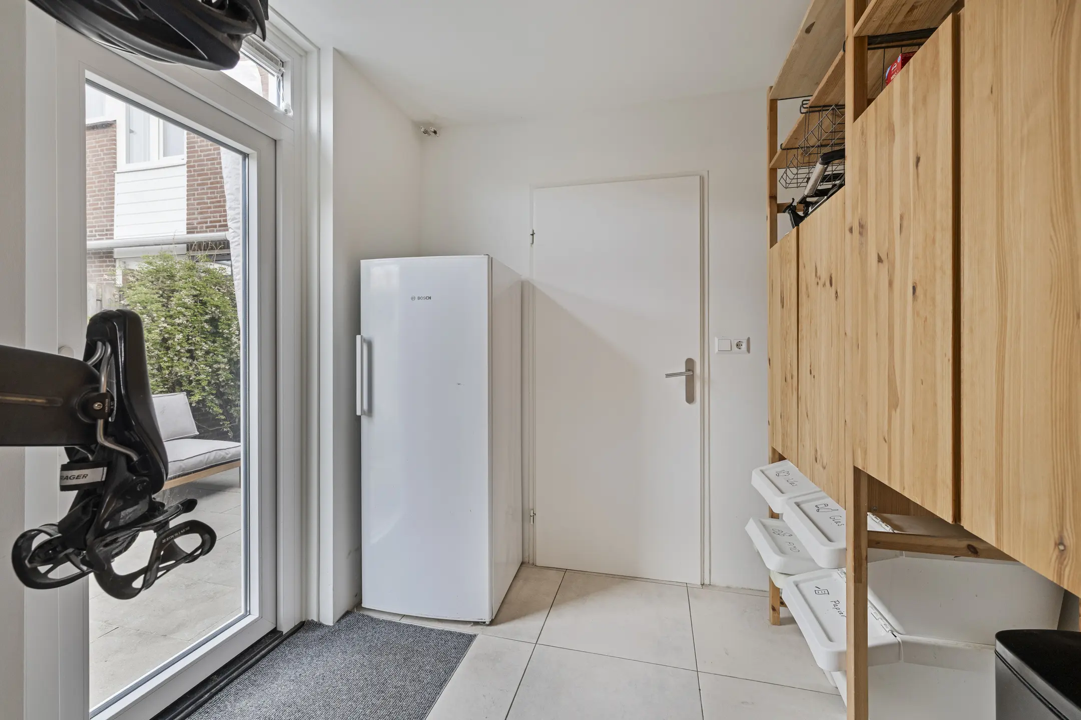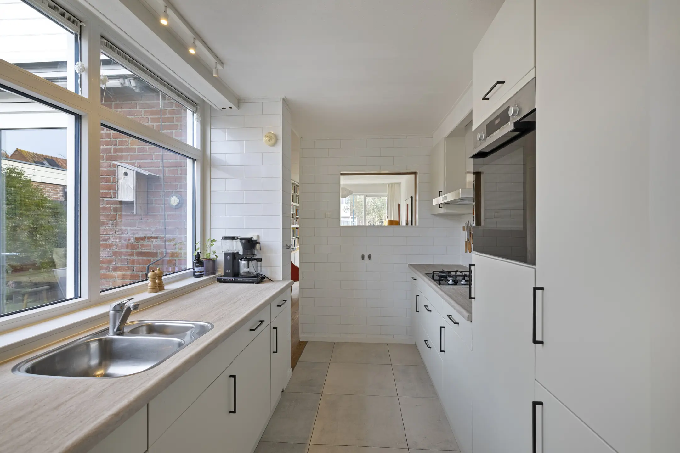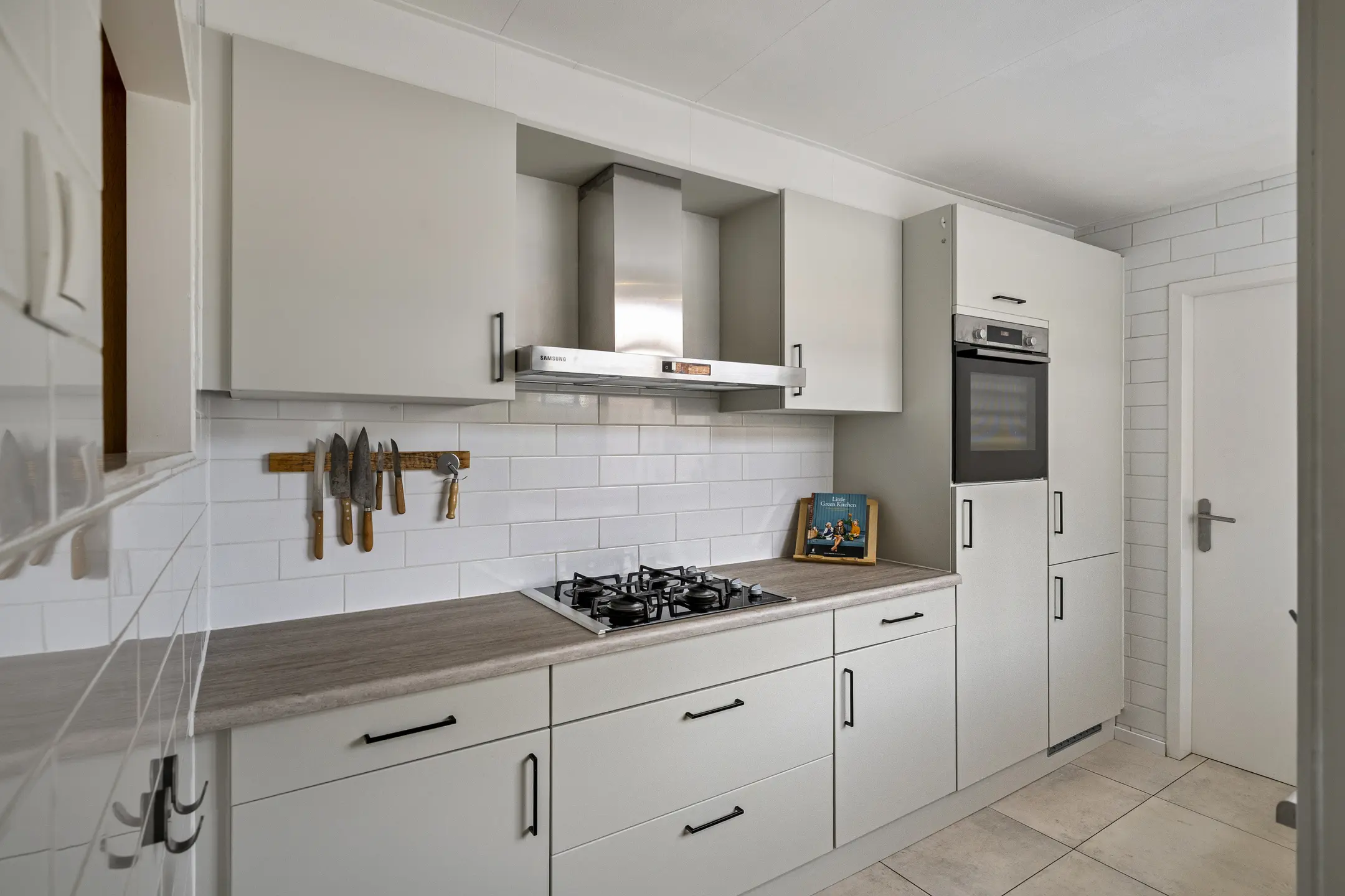 De keuken is praktisch en compleet ingericht, voorzien van een 4-pits gasfornuis, afzuigschouw (2023), oven (2026), koelkast en vaatwasser. Aansluitend vind je een handige bijkeuken met extra bergruimte en directe toegang tot de achtertuin.