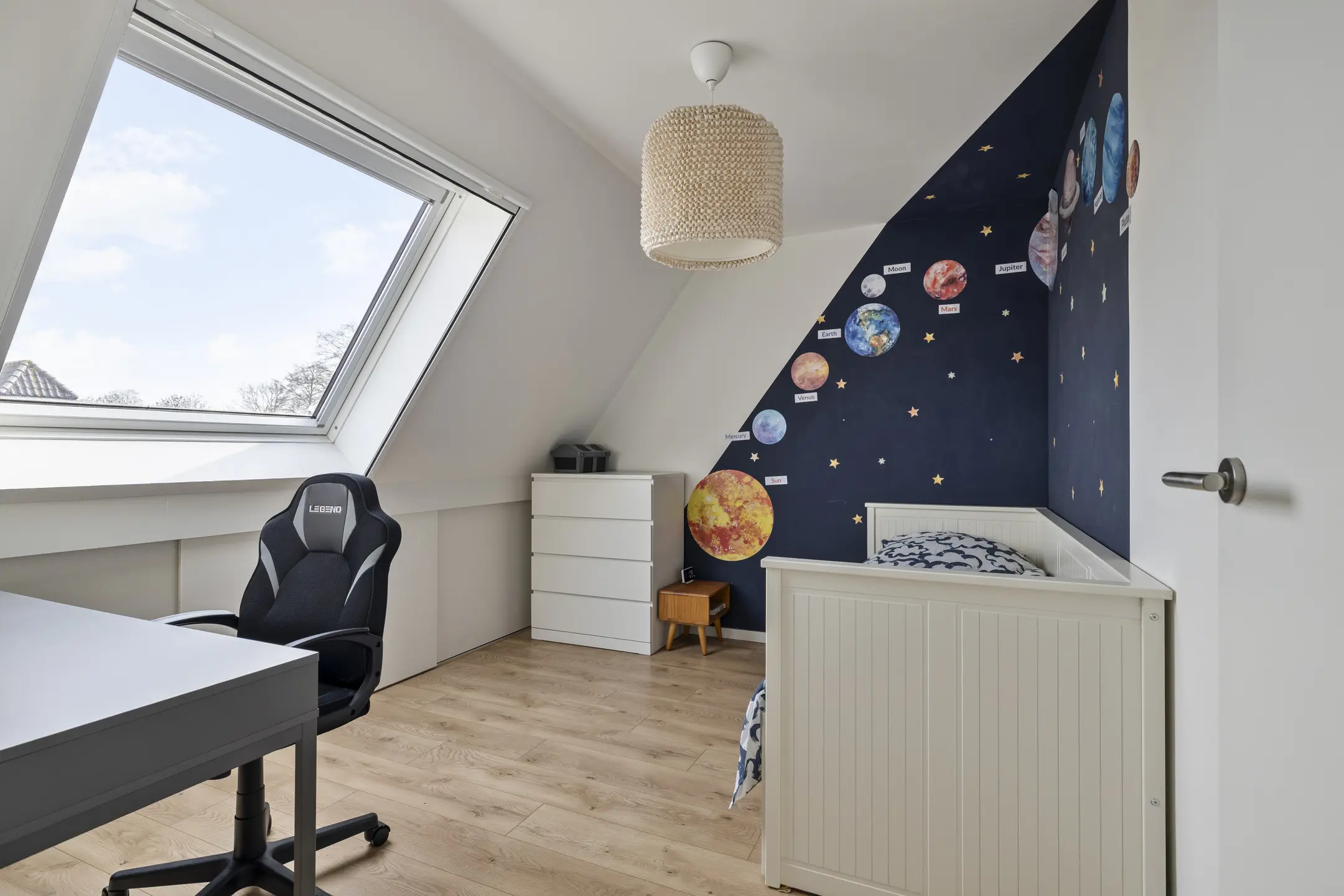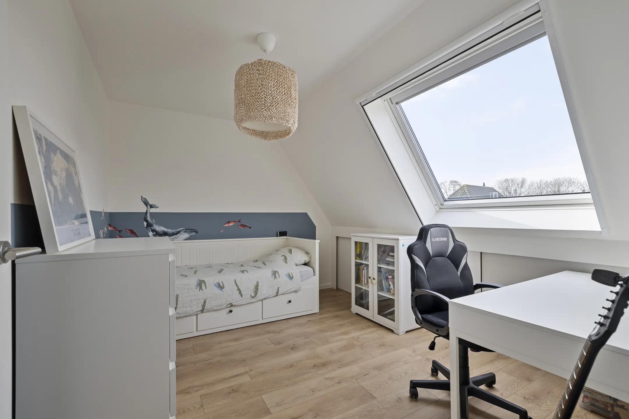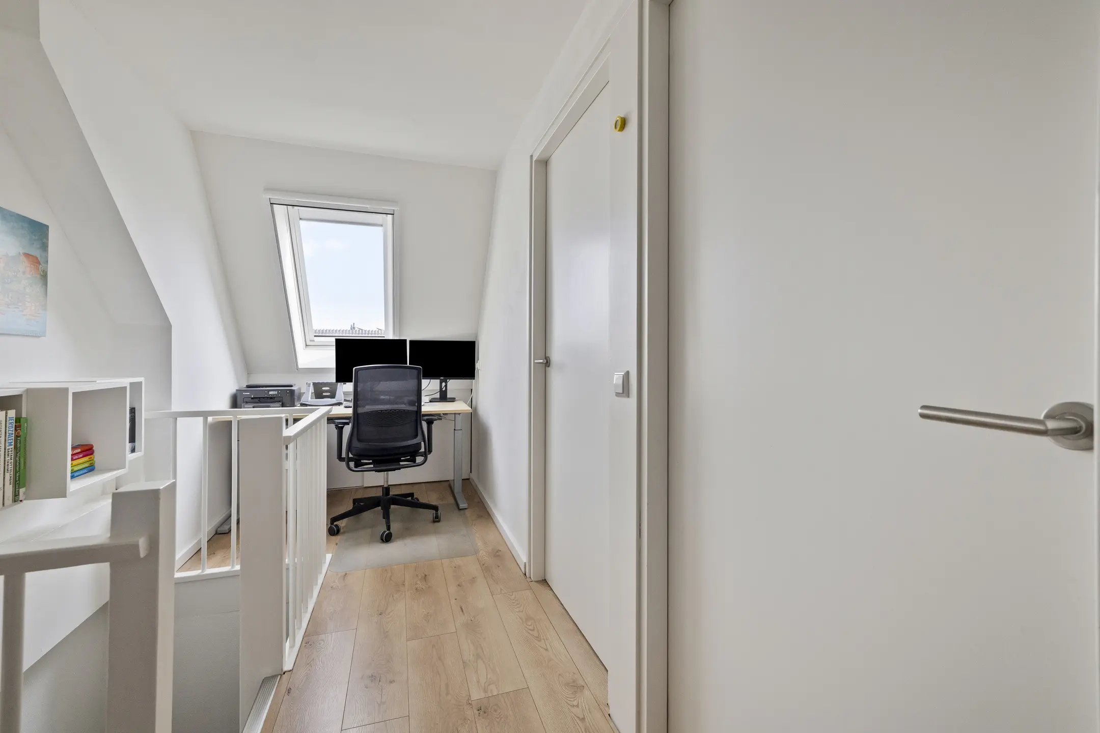 Op de overloop bevinden zich de cv-ketel (Vaillant, 2021), aansluitingen voor wasmachine en droger en extra bergruimte. Daarnaast zijn er nog twee goed afgewerkte kamers, ideaal als slaap-, werk- of hobbyruimte. Dankzij de grote dakramen zijn ook deze ruimtes heerlijk licht en aangenaam.