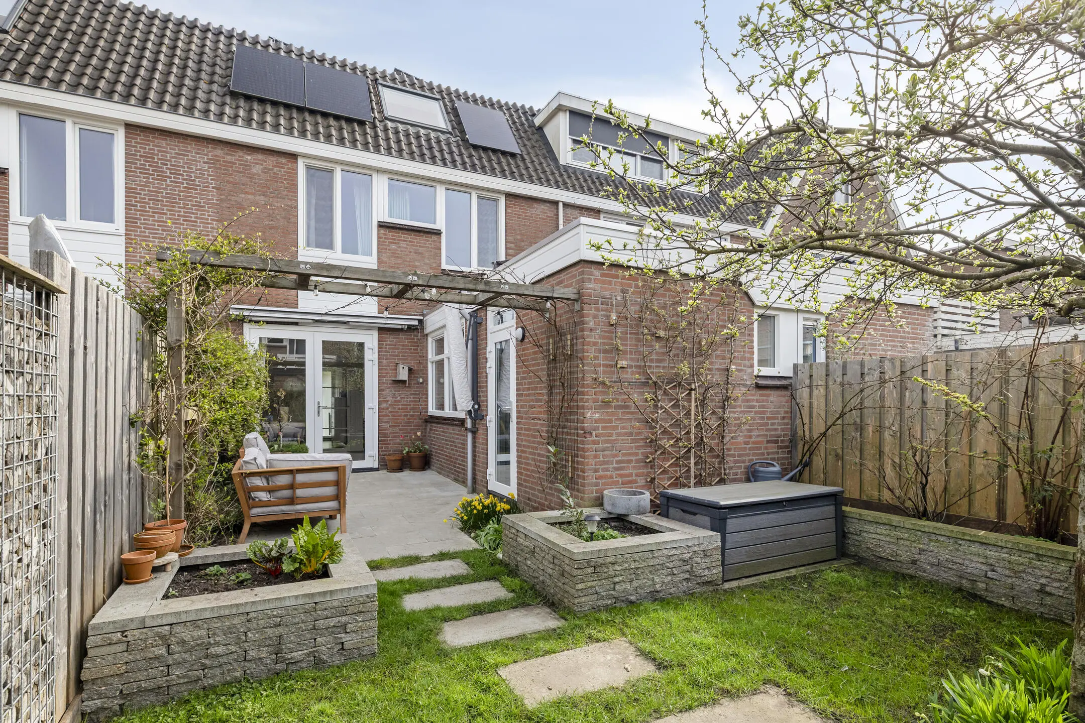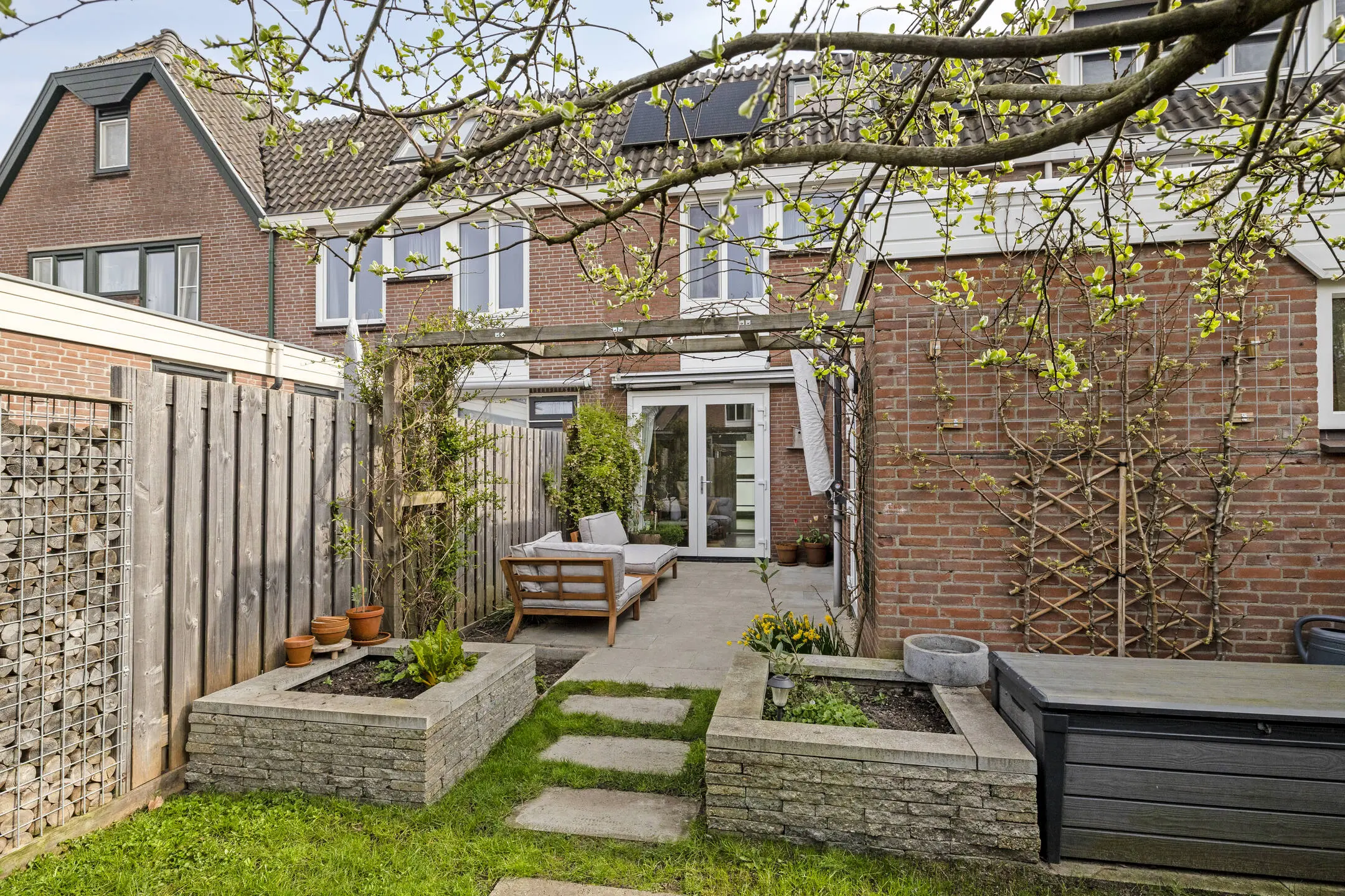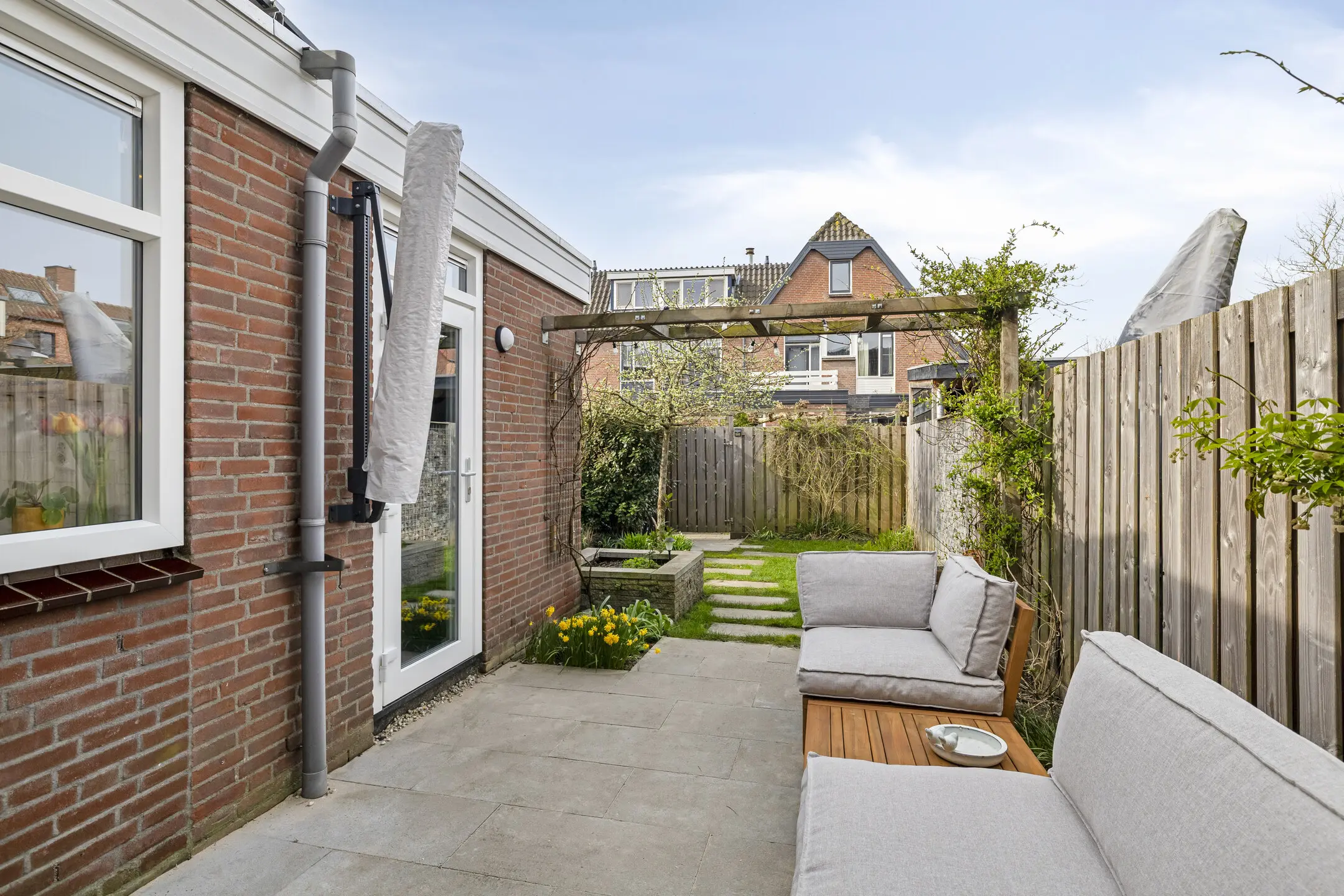 De achtertuin op het zuidwesten is een absolute plus: hier geniet je volop van de zon, rust en privacy. De tuin is sfeervol aangelegd met een zonnig terras en groene beplanting—een heerlijke plek om te ontspannen of gezellig samen te zijn. Daarnaast is er een achterom en een praktische overkapping voor fietsen.