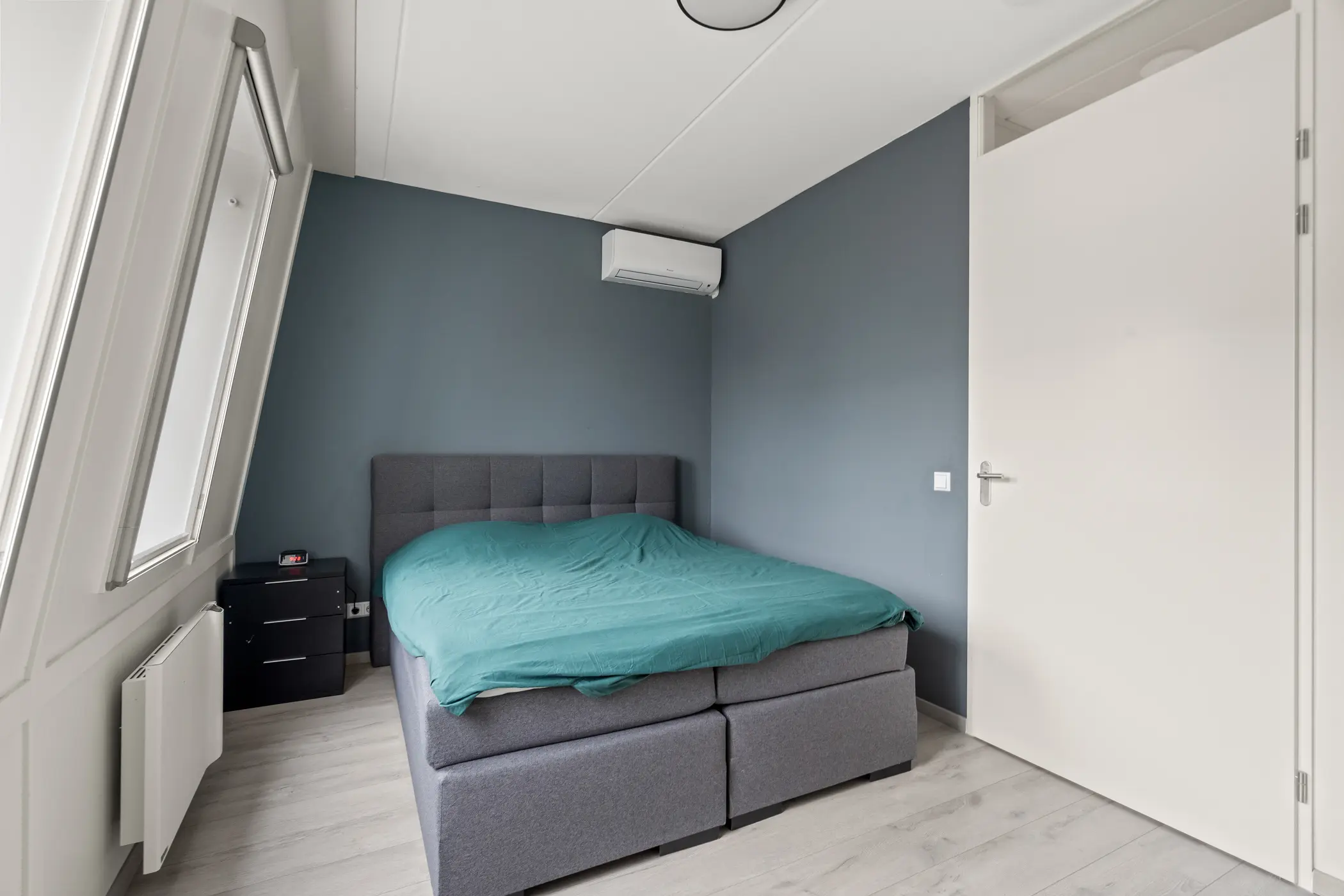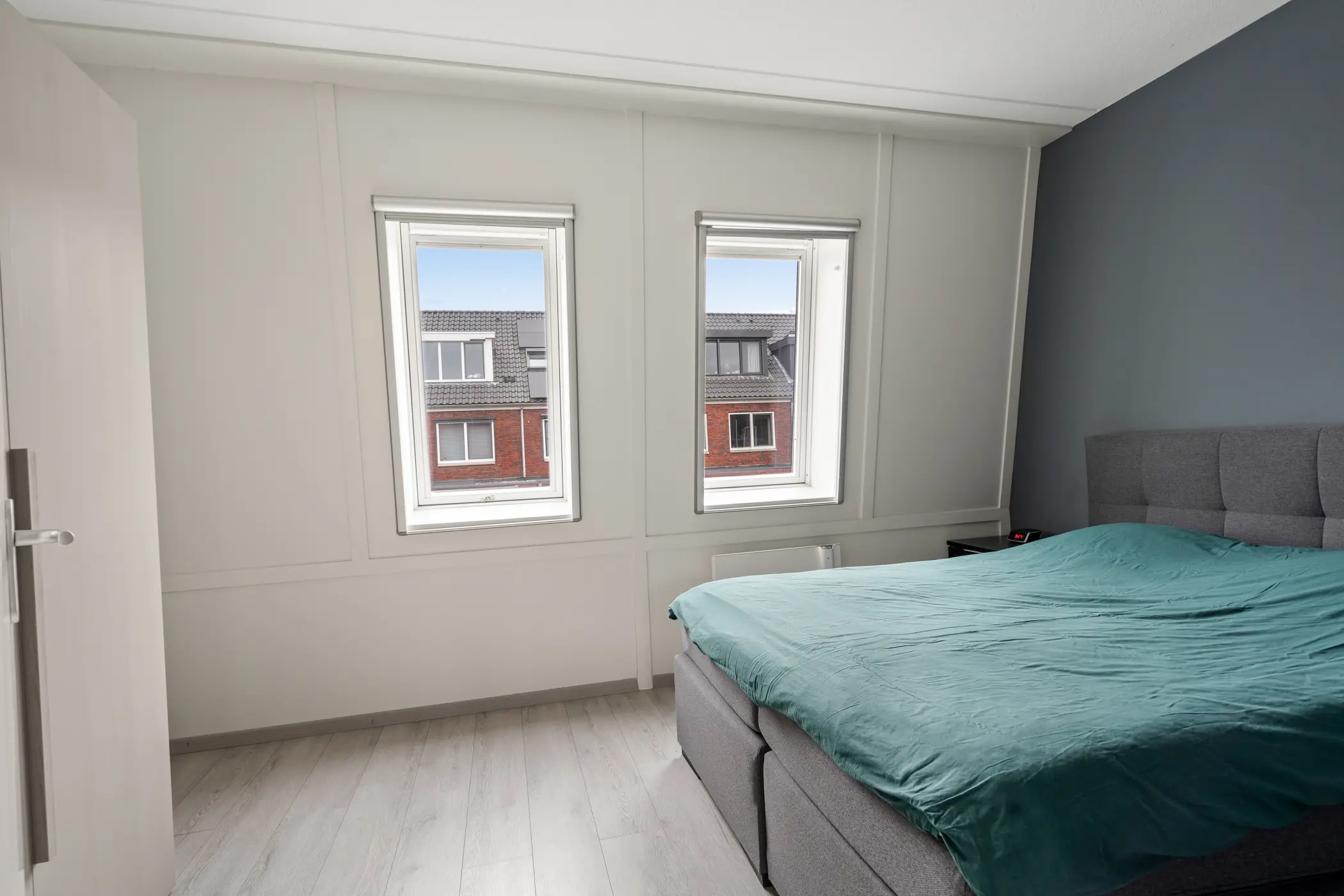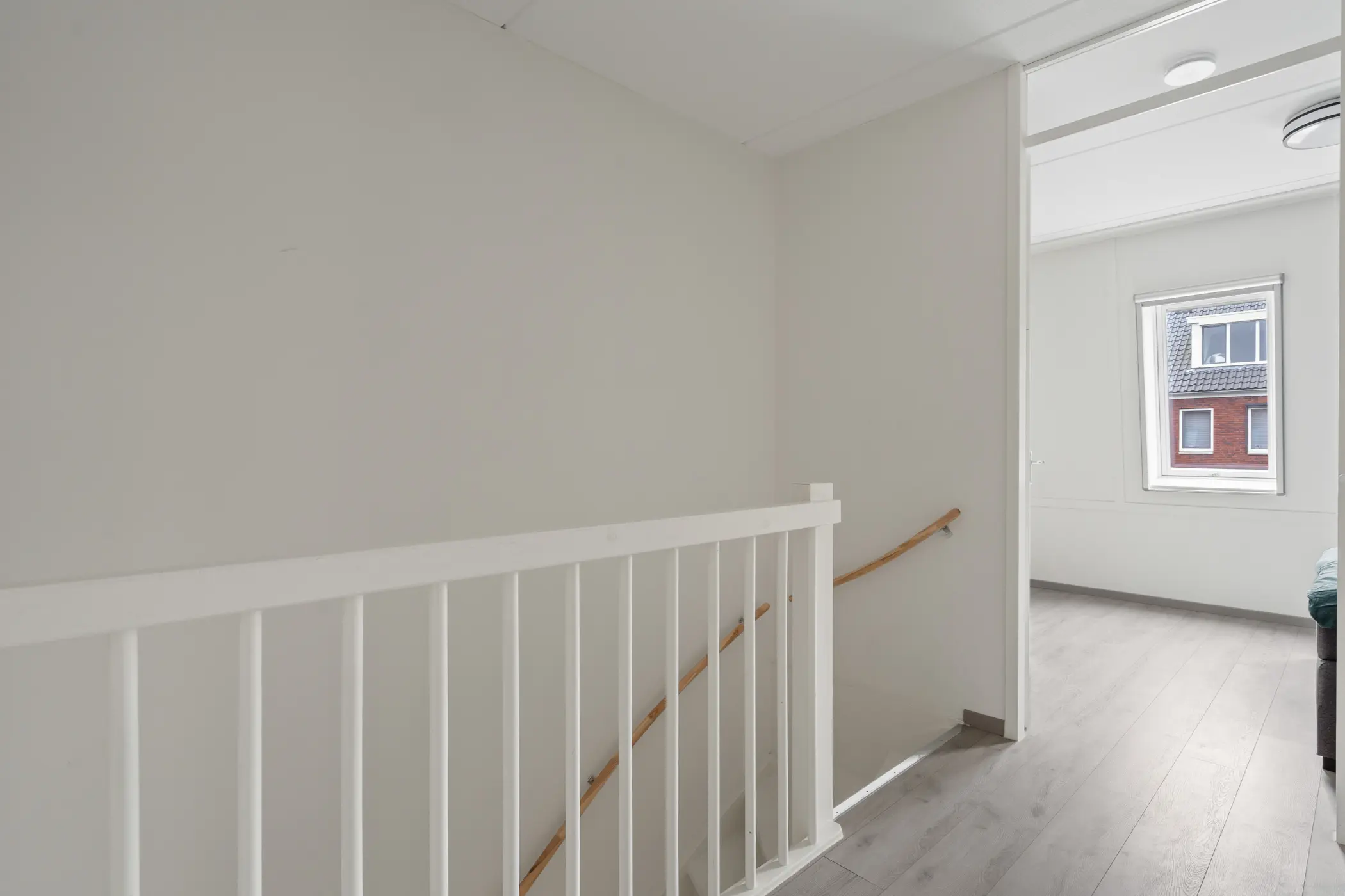 De eerste verdieping biedt twee ruime slaapkamers, beide voorzien van dakramen. De moderne badkamer is een echte eyecatcher: een ruime douche, een wastafel en een tweede toilet. Op de overloop is bovendien een handige berging aanwezig, met wasmachine aansluiting.
