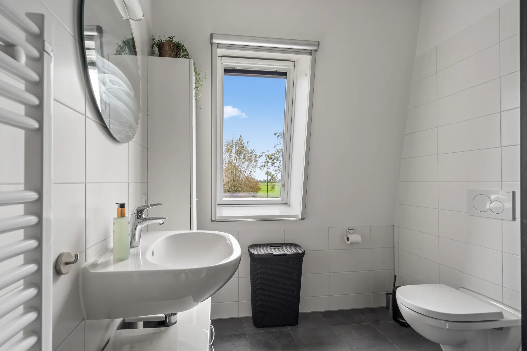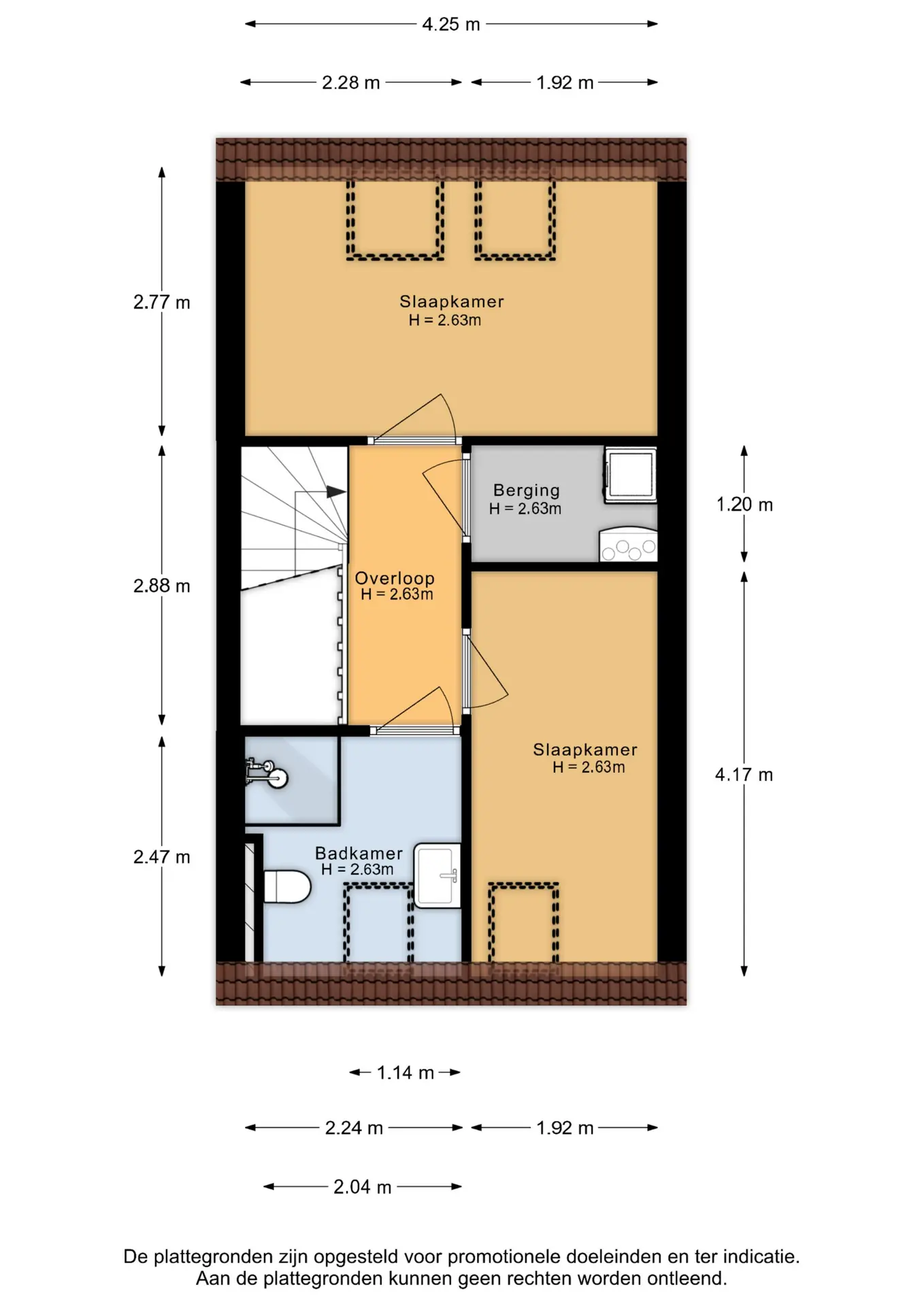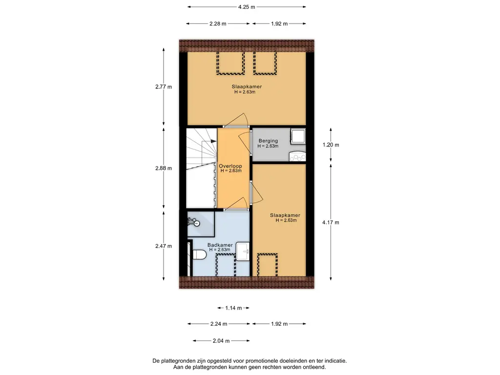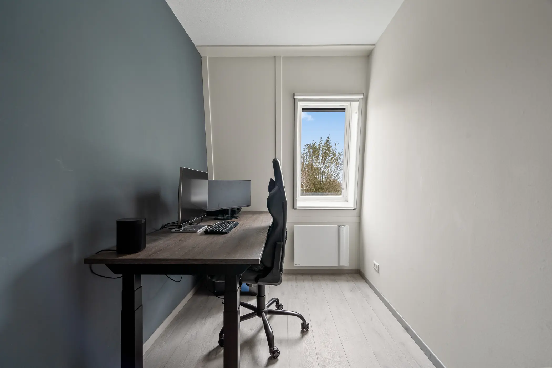 De eerste verdieping biedt twee ruime slaapkamers, beide voorzien van dakramen. De moderne badkamer is een echte eyecatcher: een ruime douche, een wastafel en een tweede toilet. Op de overloop is bovendien een handige berging aanwezig, met wasmachine aansluiting.