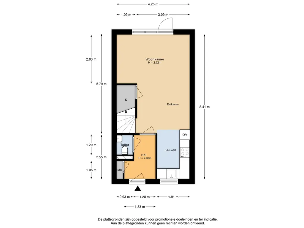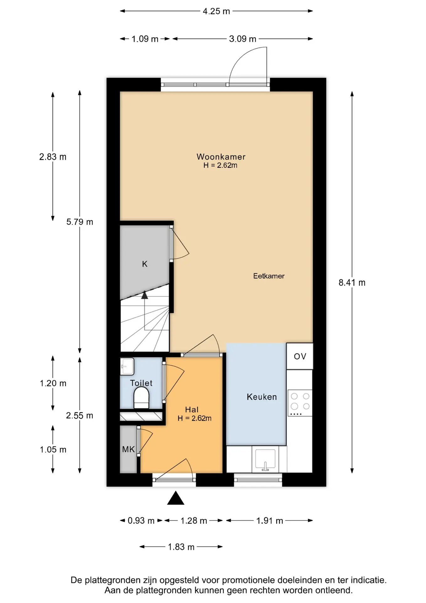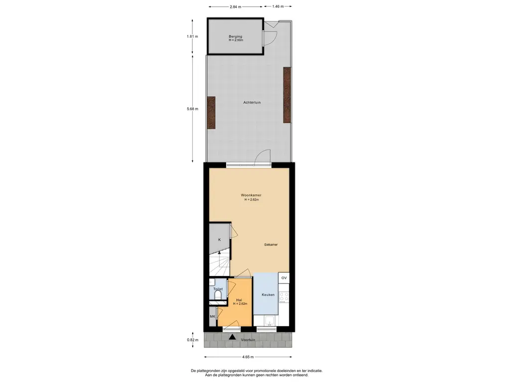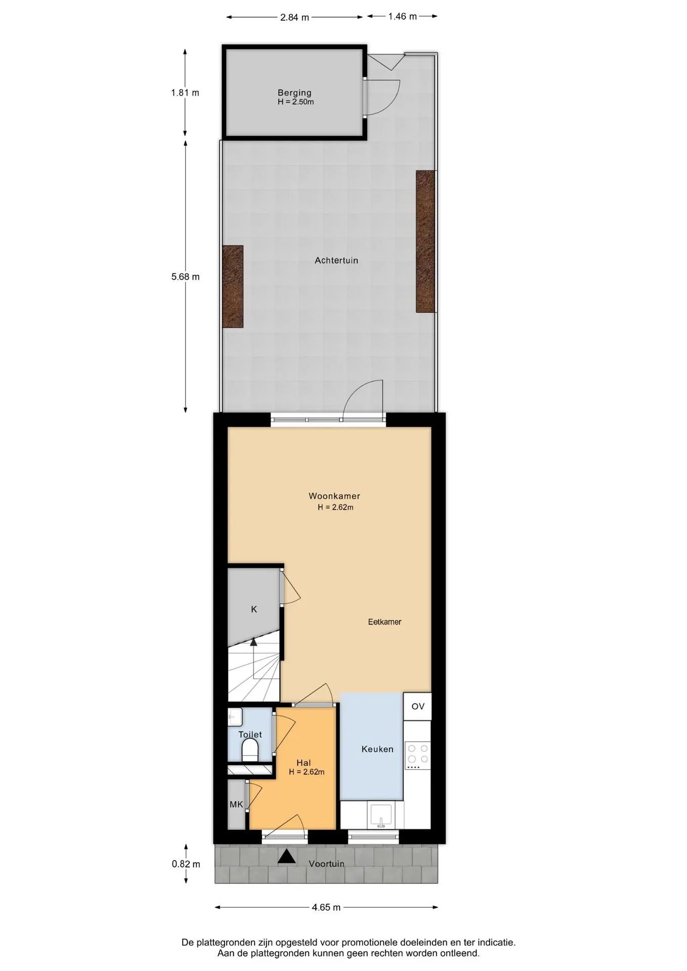 • De achtertuin ligt op het zuidoosten