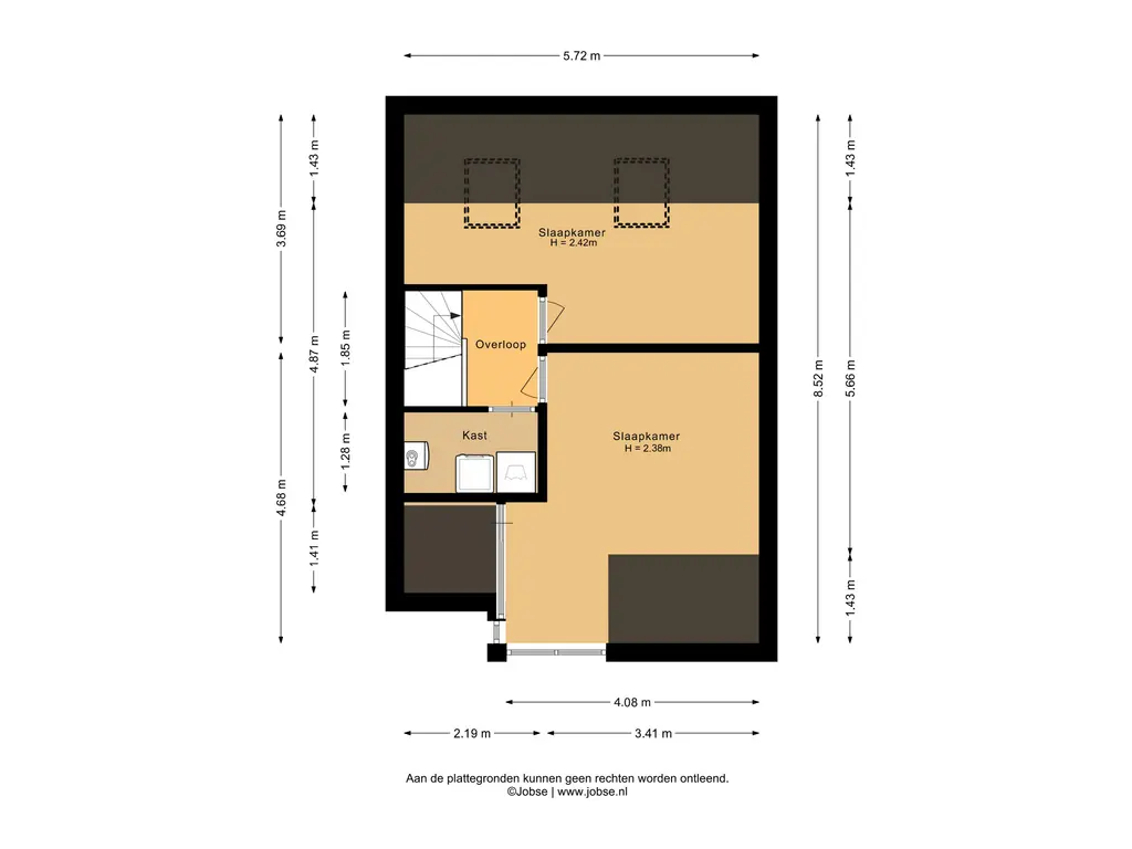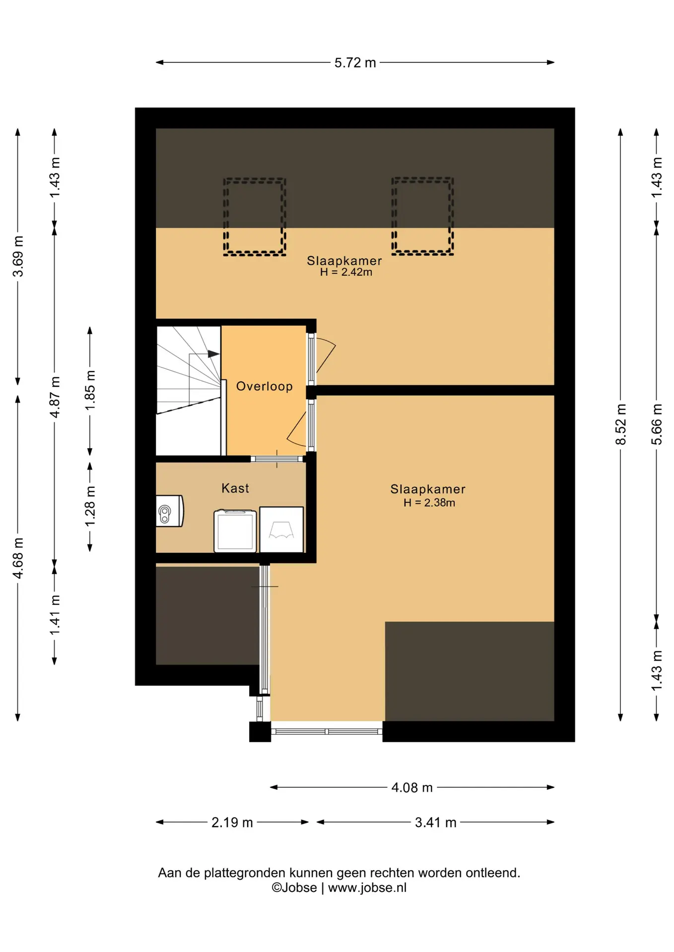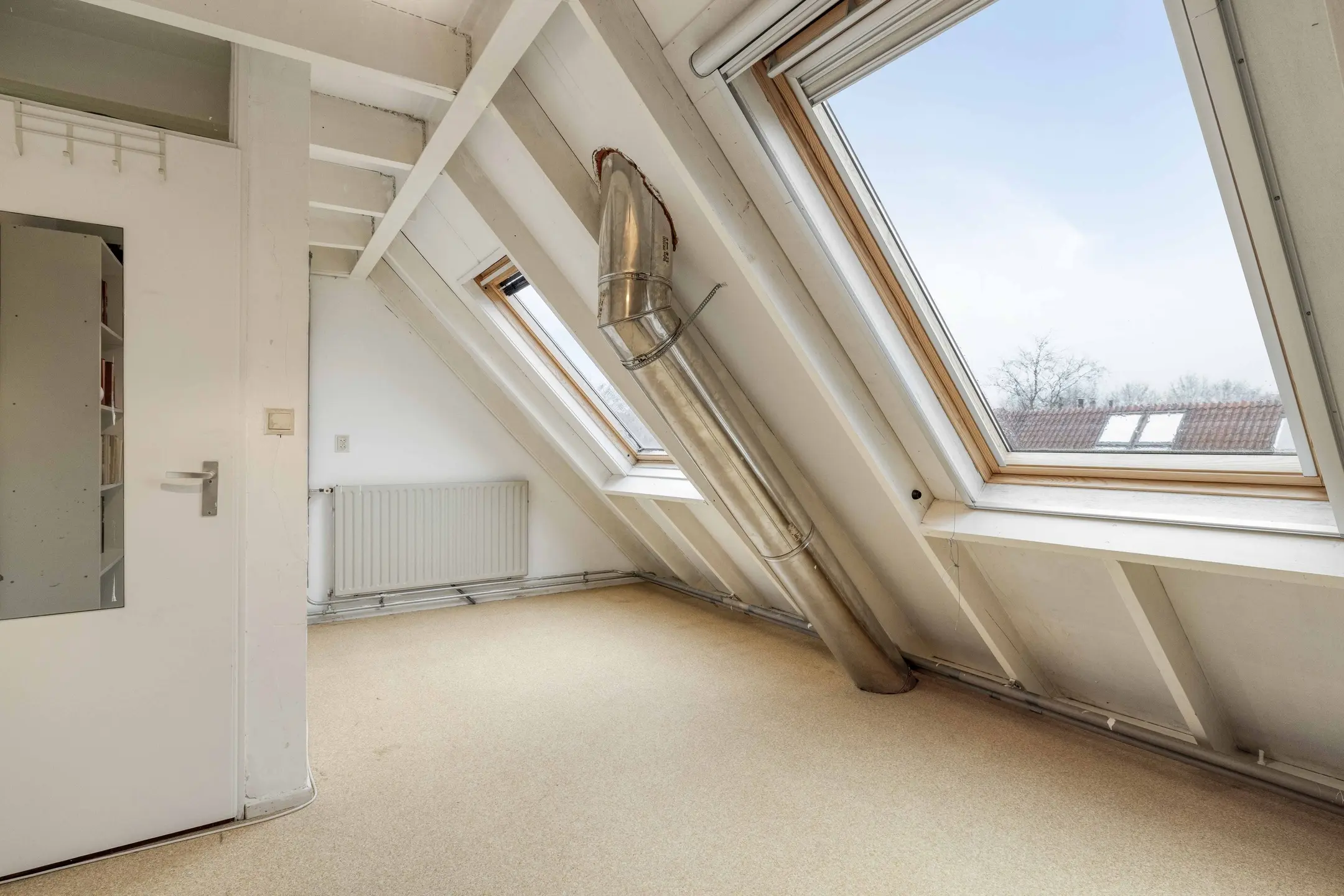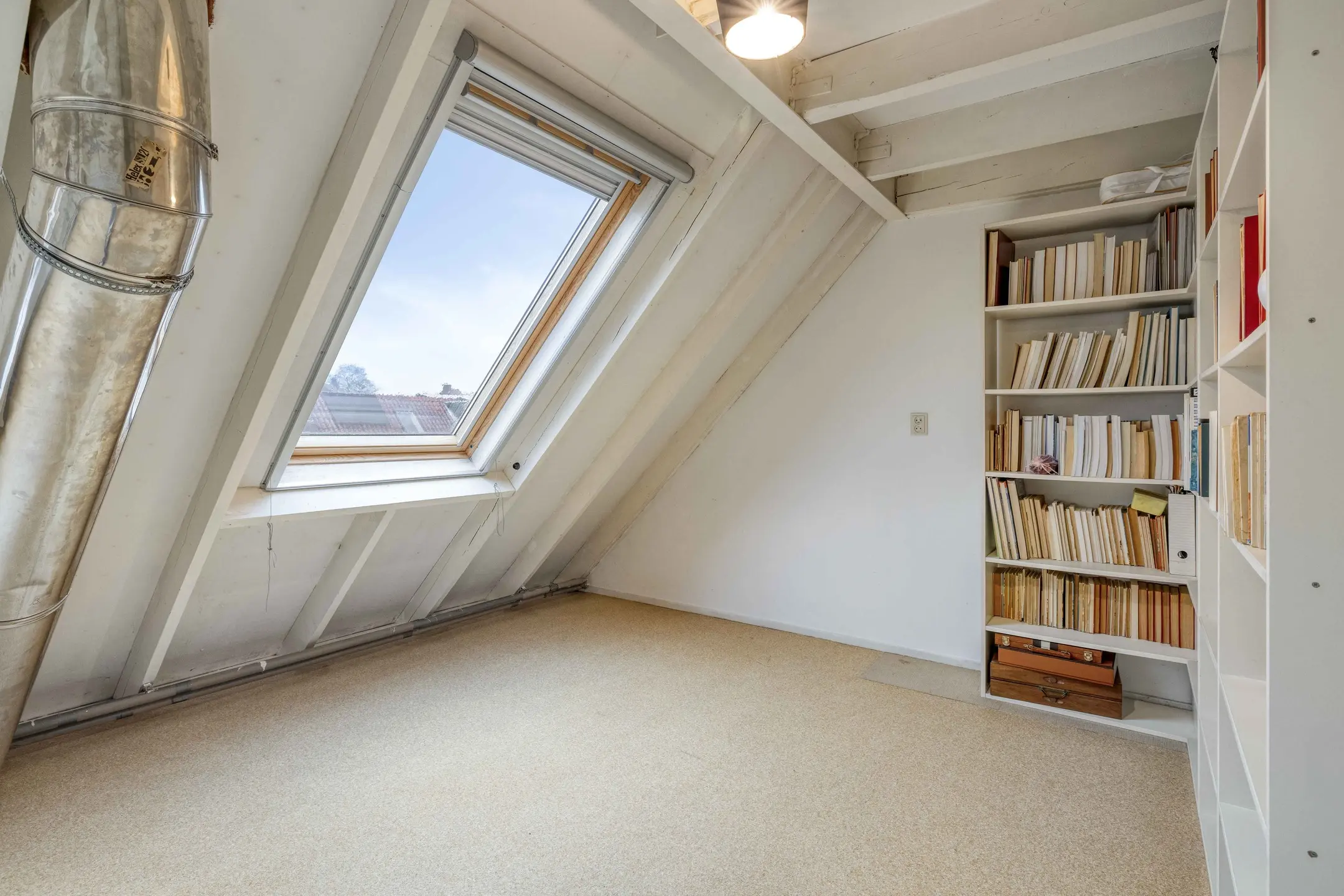 De tweede verdieping biedt nog eens twee volwaardige slaapkamers. De slaapkamer aan de achterzijde heeft twee dakramen. Dankzij de praktische indeling vindt u hier ook in een aparte ruimte de aansluitingen voor wasmachine en droger, evenals de opstelplaats van de cv-ketel (Remeha).