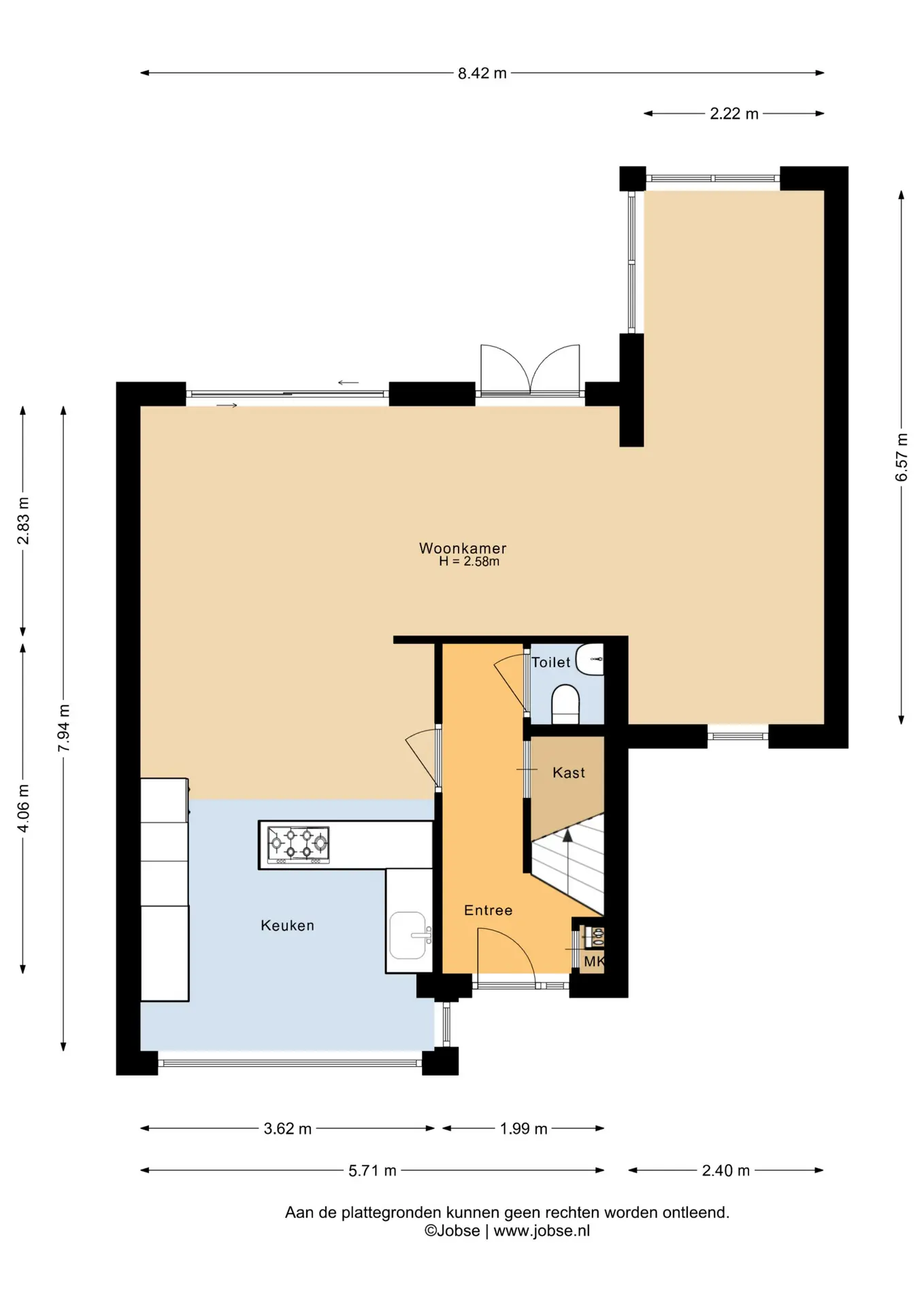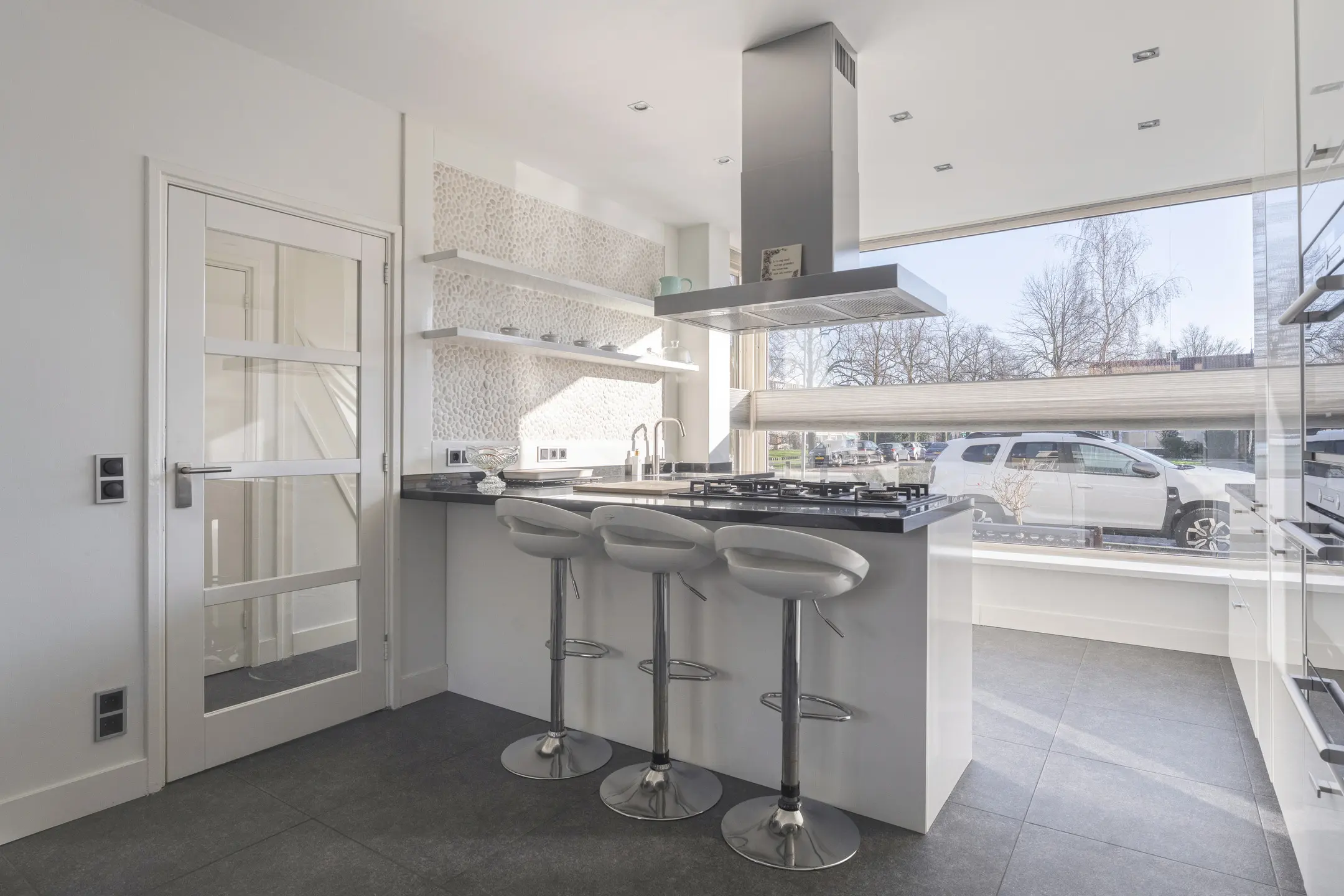 - Alle kozijnen zijn van kunststof, behalve van de voordeur;