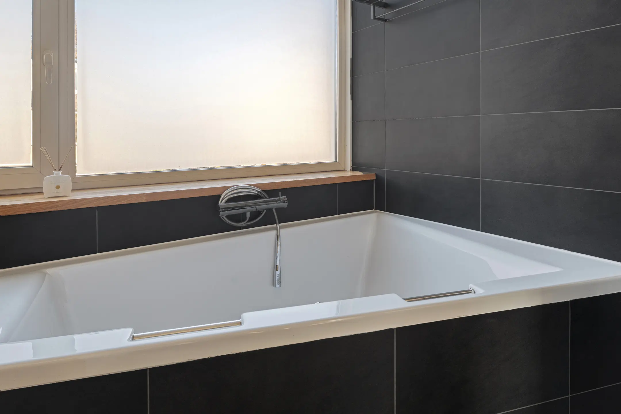 Op de overloop bevindt zich een tweede separaat toilet. Deze verdieping telt twee fijne slaapkamers, waarvan de slaapkamer aan de voorzijde toegang biedt tot het balkon. De badkamer is uitgerust met een ligbad, douchehoek en dubbele wastafel met meubel. Op deze verdieping is tevens een praktische wasruimte aanwezig.