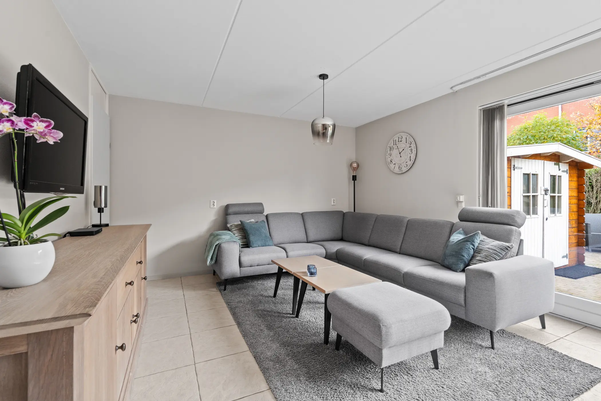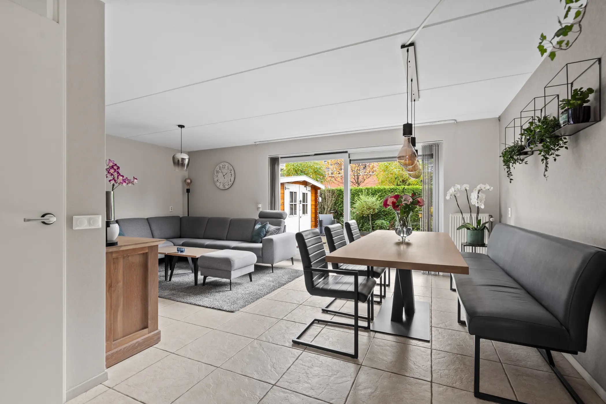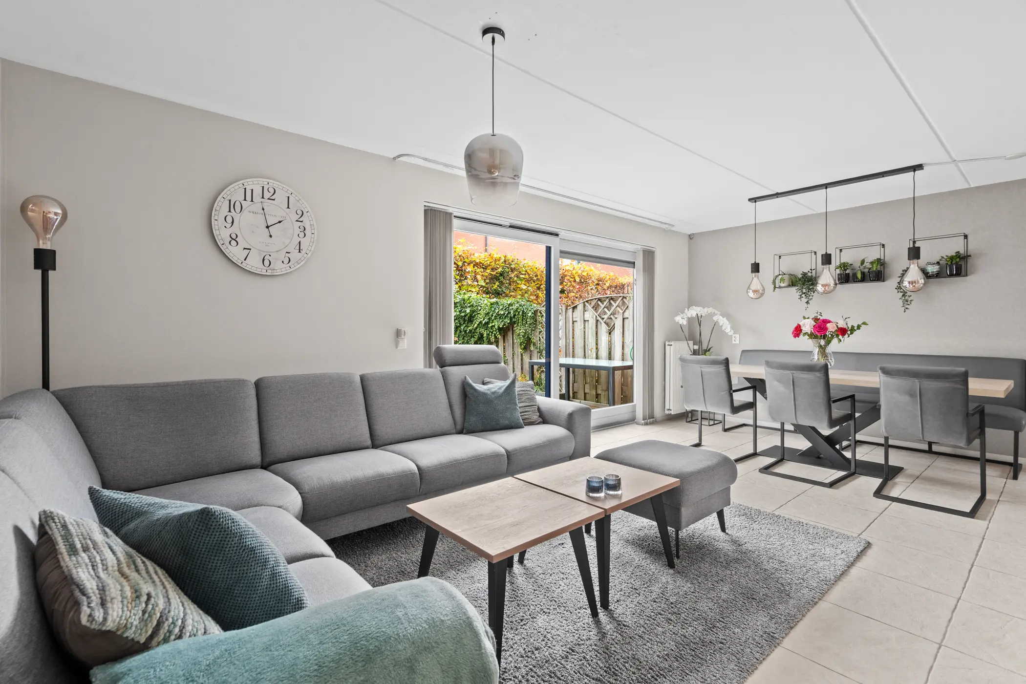 De woning brede woonkamer is licht en ruim dankzij de grote schuifpui, die direct toegang biedt tot de zonnige achtertuin. De begane grond is volledig voorzien van vloerverwarming met verschillende groepen, wat zorgt voor een zeer comfortabele leefomgeving. In de woonkamer is bovendien een praktische ruime trapkast aanwezig.
