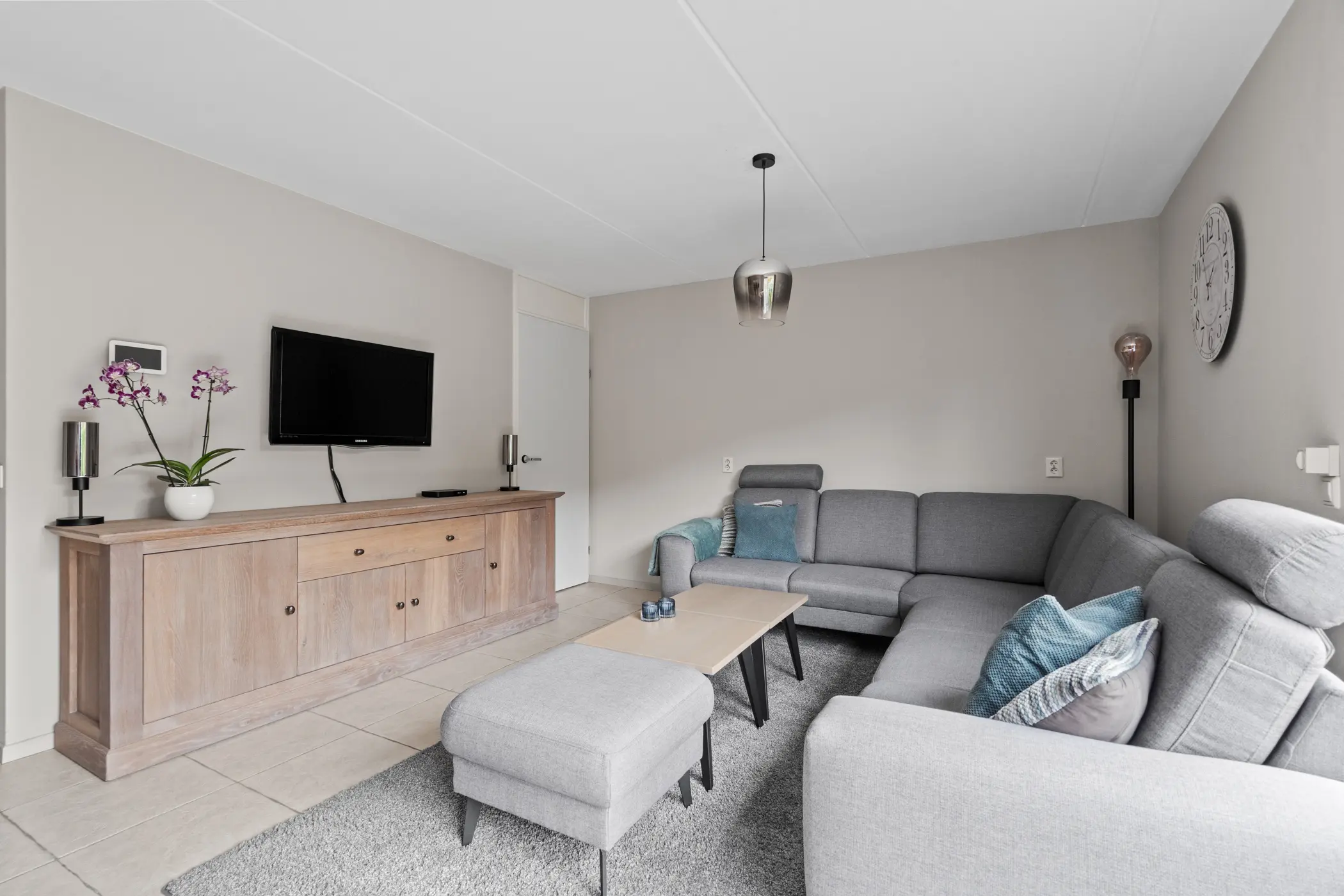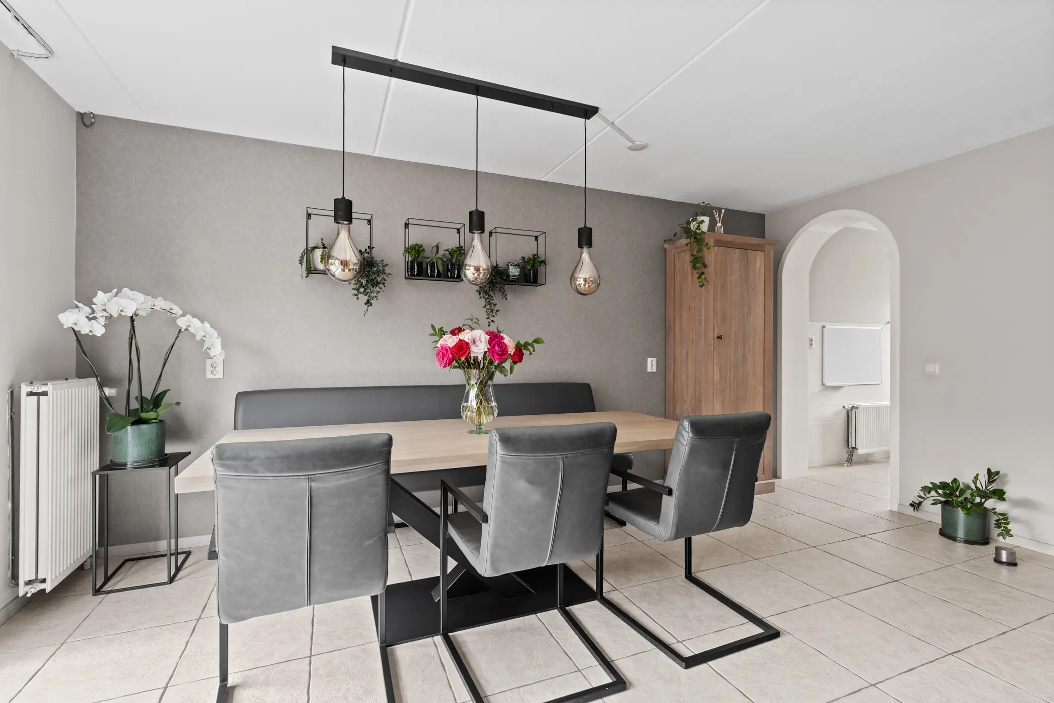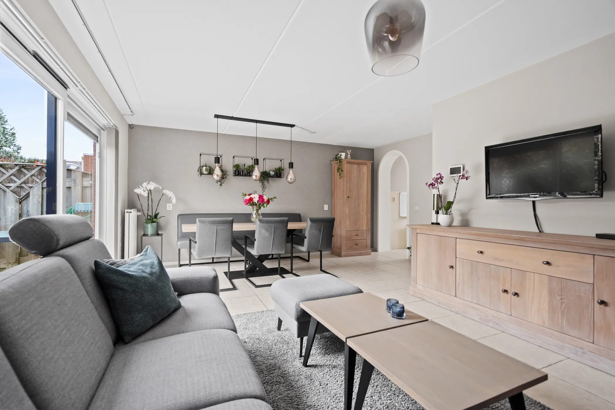 De woning brede woonkamer is licht en ruim dankzij de grote schuifpui, die direct toegang biedt tot de zonnige achtertuin. De begane grond is volledig voorzien van vloerverwarming met verschillende groepen, wat zorgt voor een zeer comfortabele leefomgeving. In de woonkamer is bovendien een praktische ruime trapkast aanwezig.