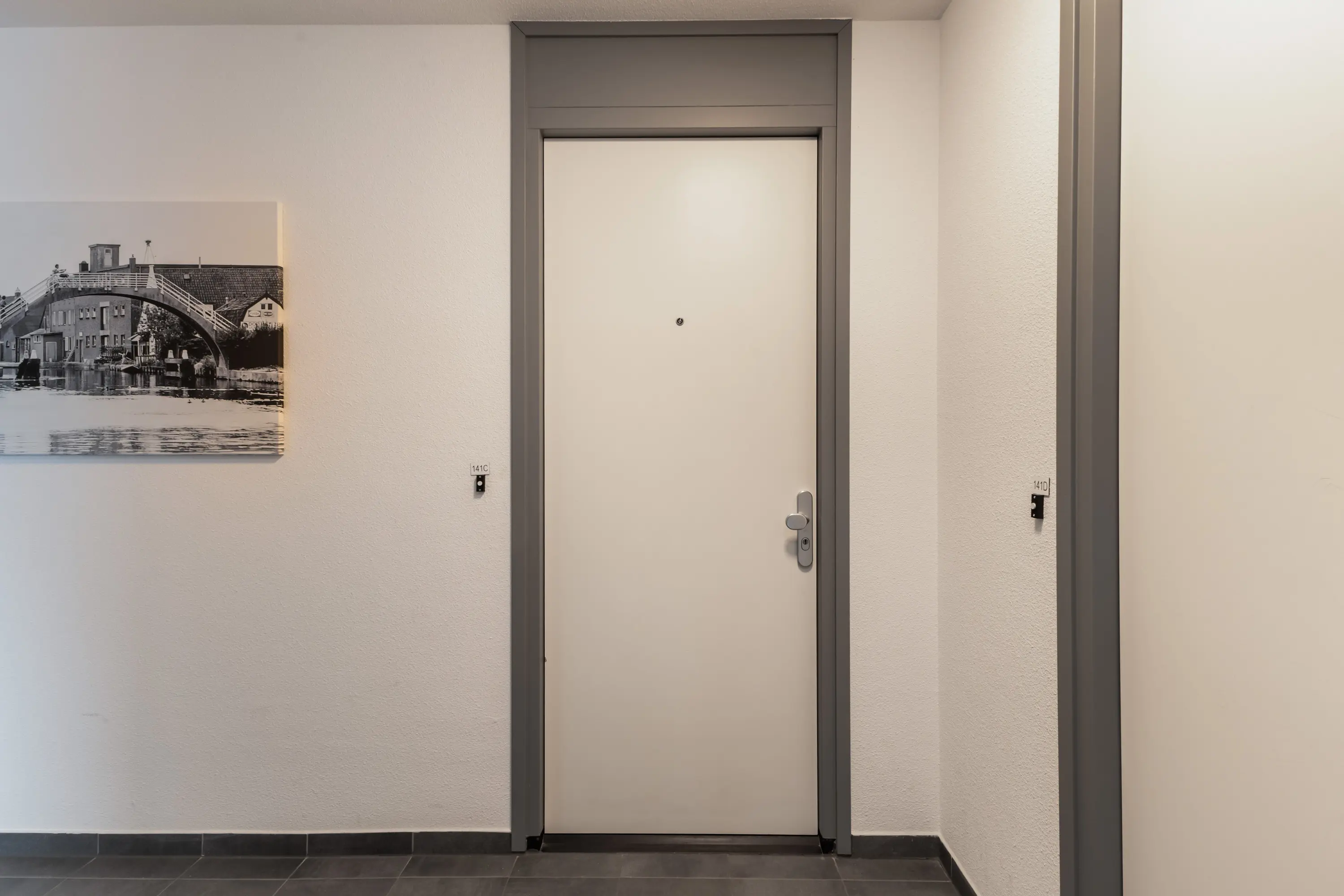 Er is een centrale entree met een bellentableau met videofooninstallatie aan de buitenzijde. Vanuit de gemeenschappelijke hal met lift en trappenhuis zijn de parkeergarage, de bergingen en het appartement te bereiken. Het appartement is gelegen op de eerste verdieping, waar zich ook de meterkast bevindt.