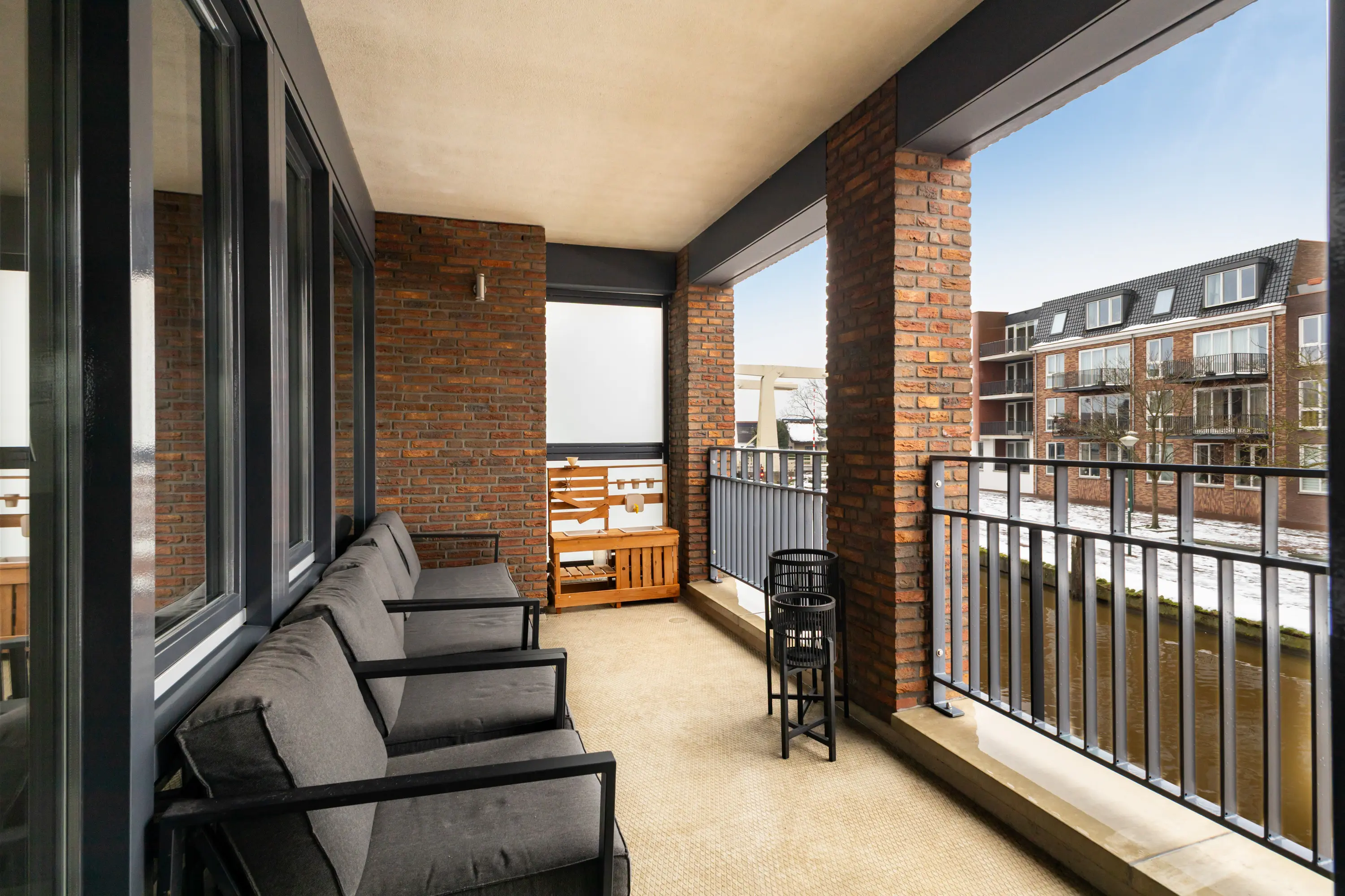 Open keuken voorzien van diverse inbouwapparatuur zoals een koelkast, vriezer, combi oven, inductiekookplaat, vaatwasser en afzuigsysteem. Toegang tot het balkon aan de Oude Rijnzijde van circa 10 m2 met prachtig uitzicht over het water. Het appartement heeft een licht en modern afwerkingsniveau en wordt in zijn geheel verwarmd door vloerverwarming.