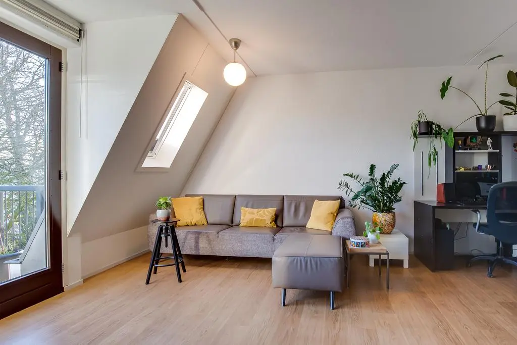De woonkamer is licht en staat in directe verbinding met het balkon dit betekent dat u vanuit de woonkamer en vanaf uw balkon een prachtig uitzicht heeft op het groen van het Exercitieveld.