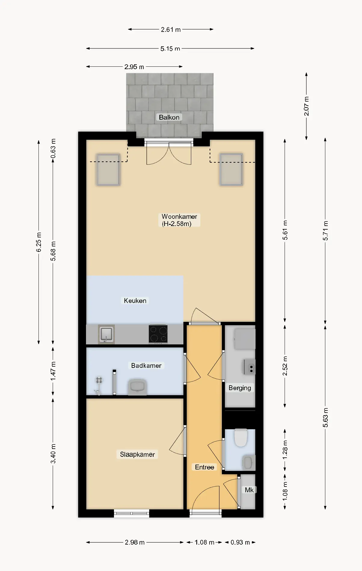 Het appartement is gelegen op de derde verdieping van het appartementencomplex '7 Gevels', dat is gebouwd in 2014. Bij het appartement hoort een eigen parkeerplaats en berging op de afgesloten binnenplaats. Het complex ligt ideaal; Binnen een paar minuten loopt u naar het Centraal Station, de winkelstraten, gezellige restaurants en cafés, de bibliotheek en het Klooster met theater en muziekschool. Ook Park Bredius, het groene hart van Woerden met wandelpaden, waterpartijen en de kinderboerderij, ligt op loopafstand. Zo combineert u het gemak van het centrum met de ontspanning van het buitenleven.