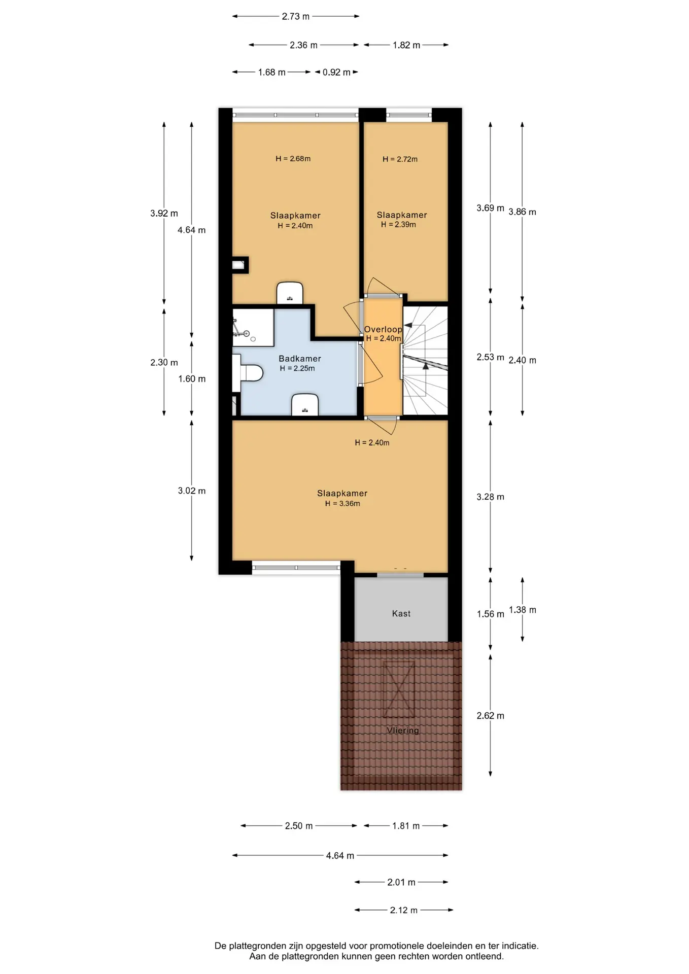 • De twee slaapkamers aan de achterzijde zijn van prettig formaat waarvan één beschikt over een wastafel.