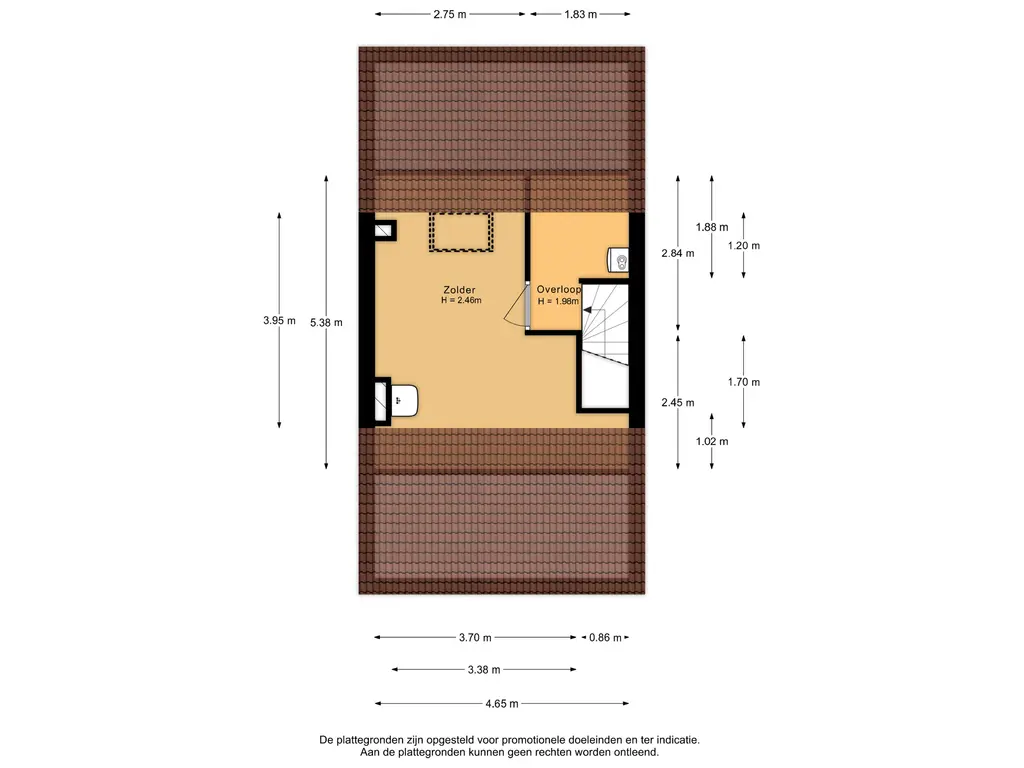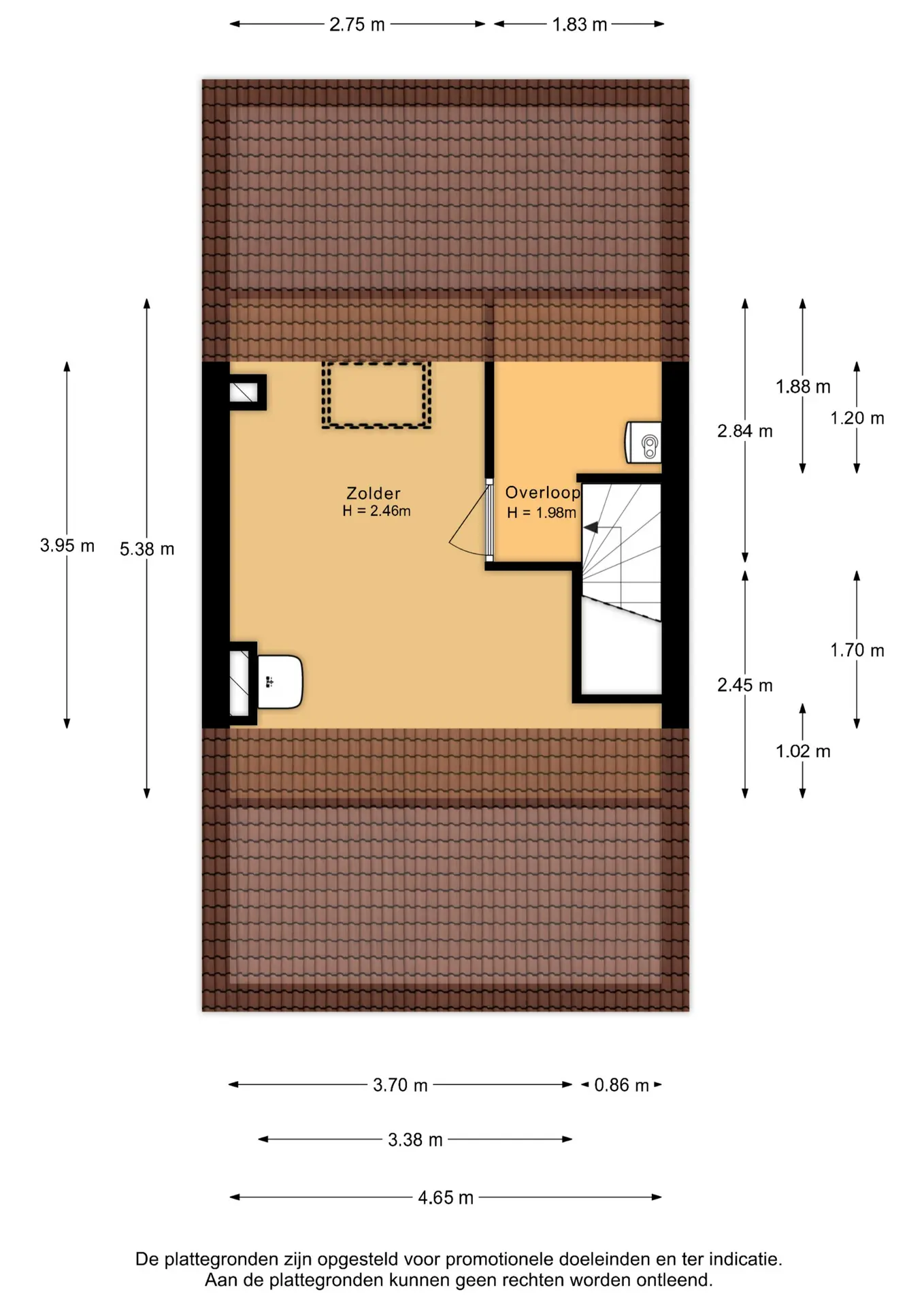 • Dakraam en wastafel op zolder