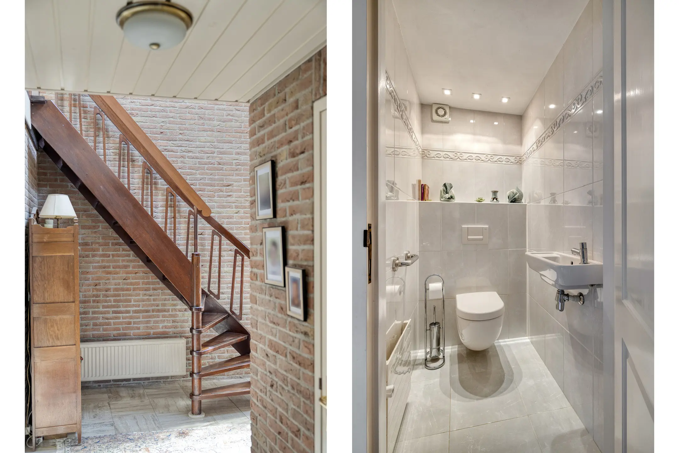 Via de ruime oprit bereikt u de garage en de entree van de woning. De lichte hal geeft toegang tot de meterkast, een toiletruimte met wandcloset en fontein, de trapopgang naar de eerste verdieping, de keuken en de woonkamer.