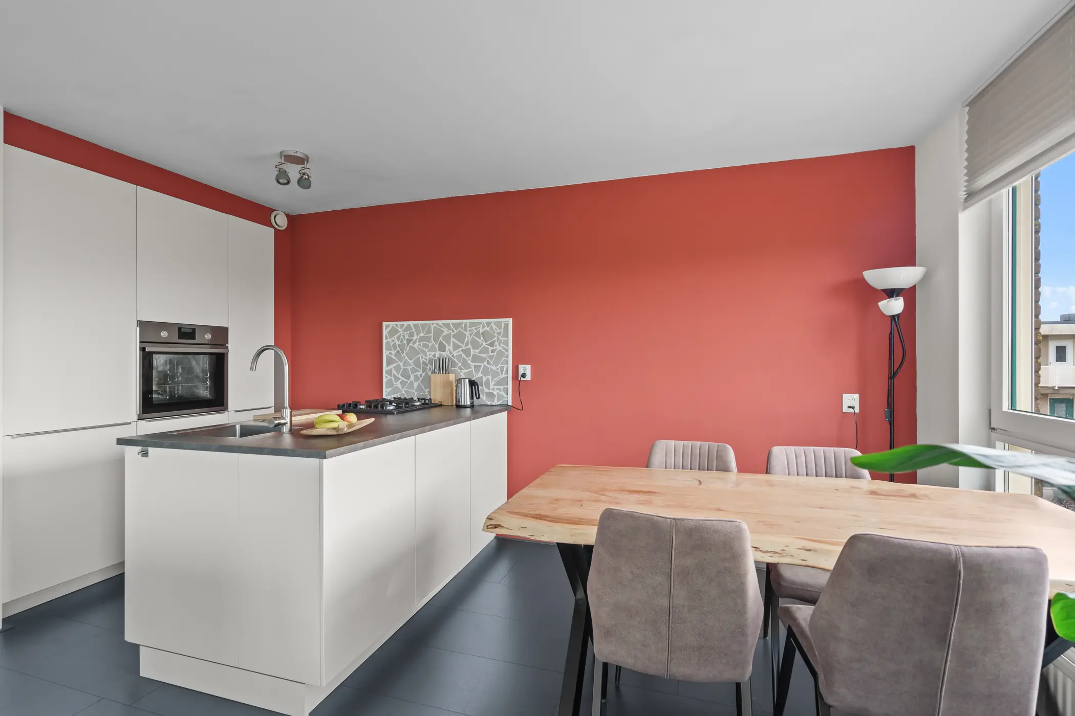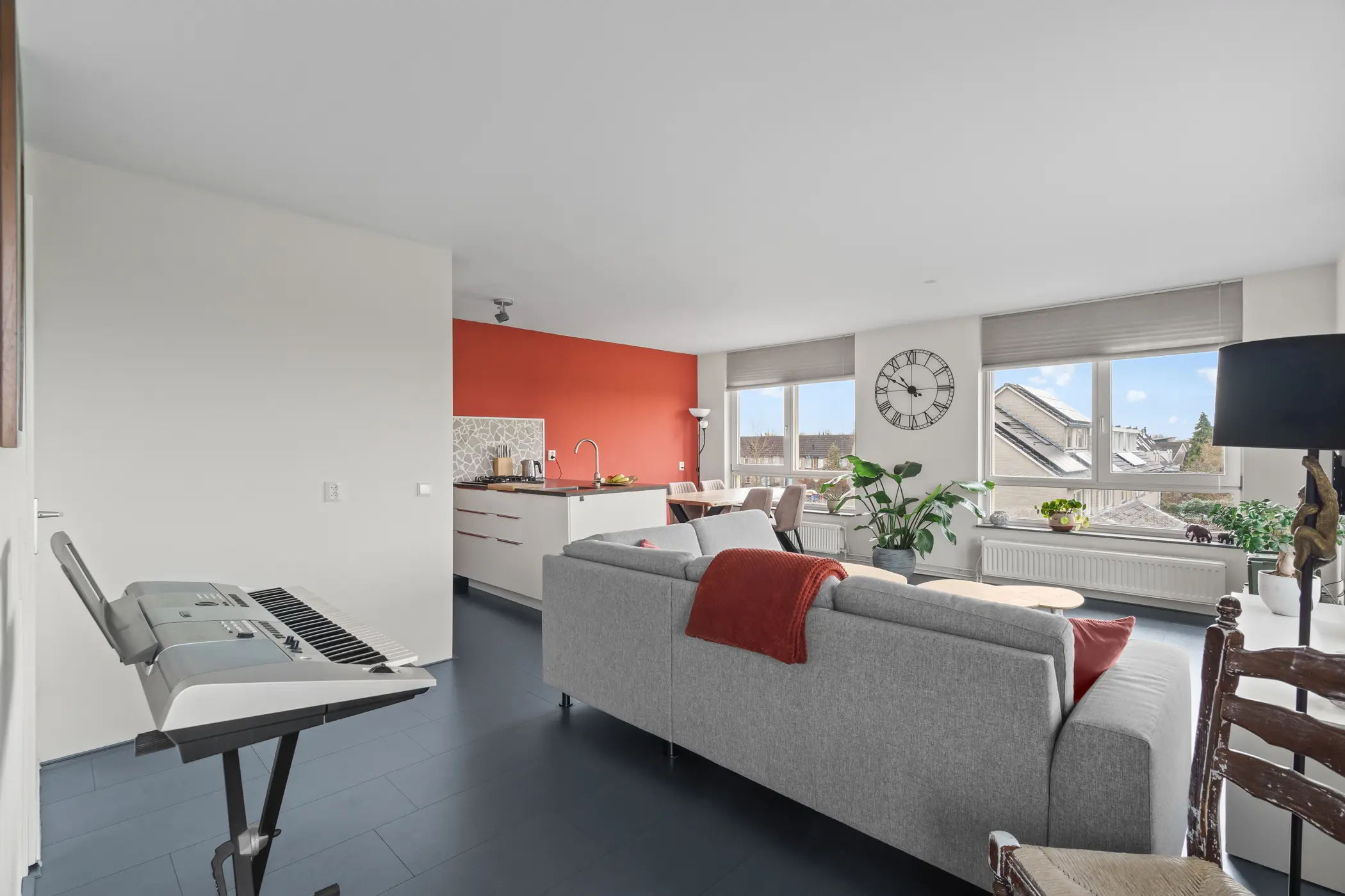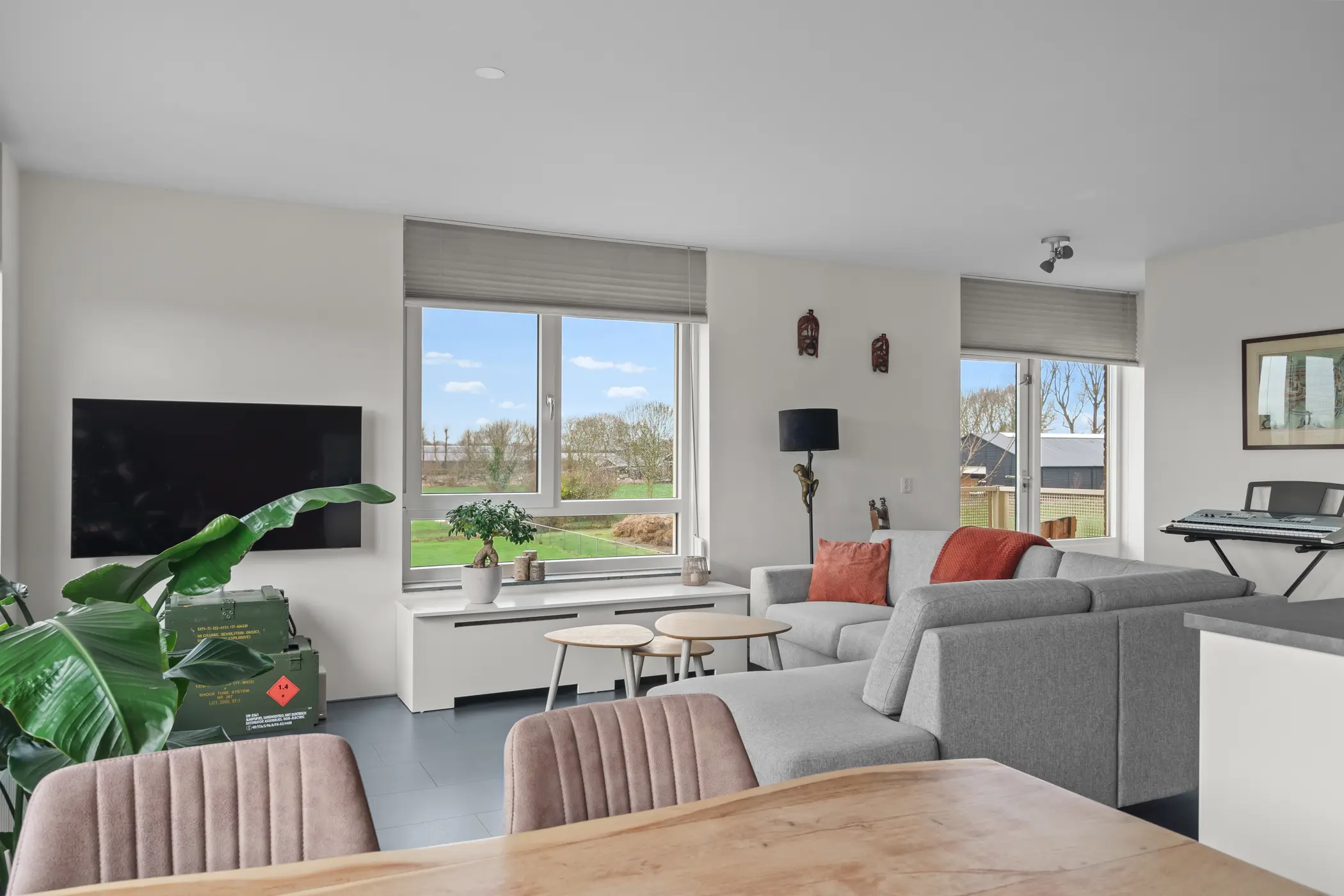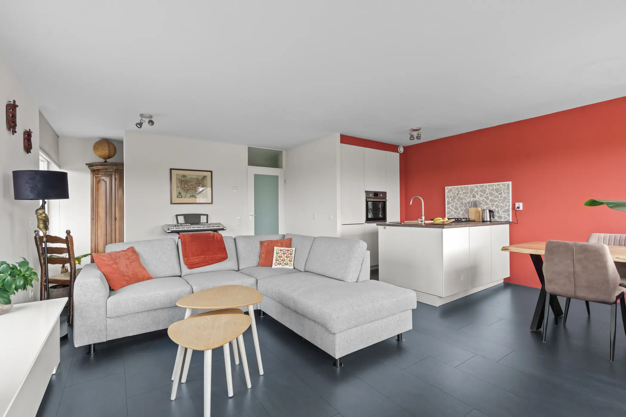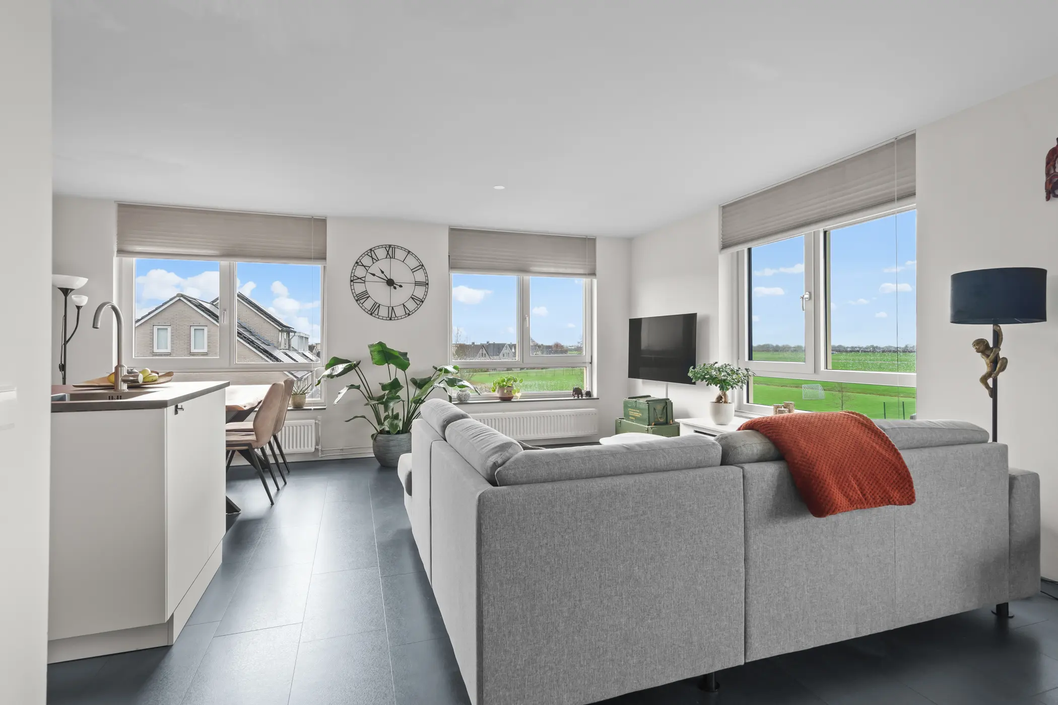 De woonkamer is heerlijk licht en voorzien van openslaande deuren naar het balkon. Het balkon ligt op het westen, waardoor u hier op zonnige dagen volop kunt genieten van de middag- en avondzon én het vrije uitzicht over het groen.
