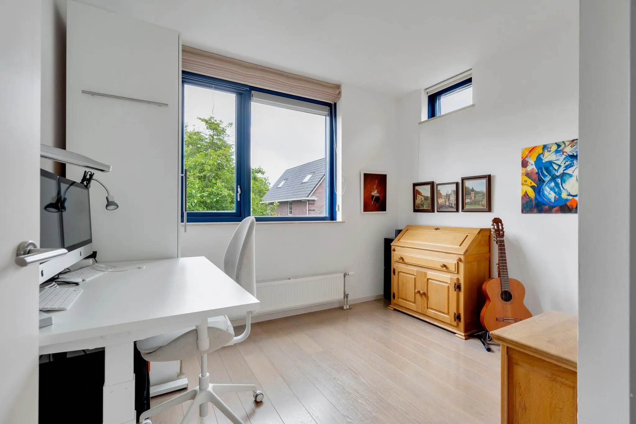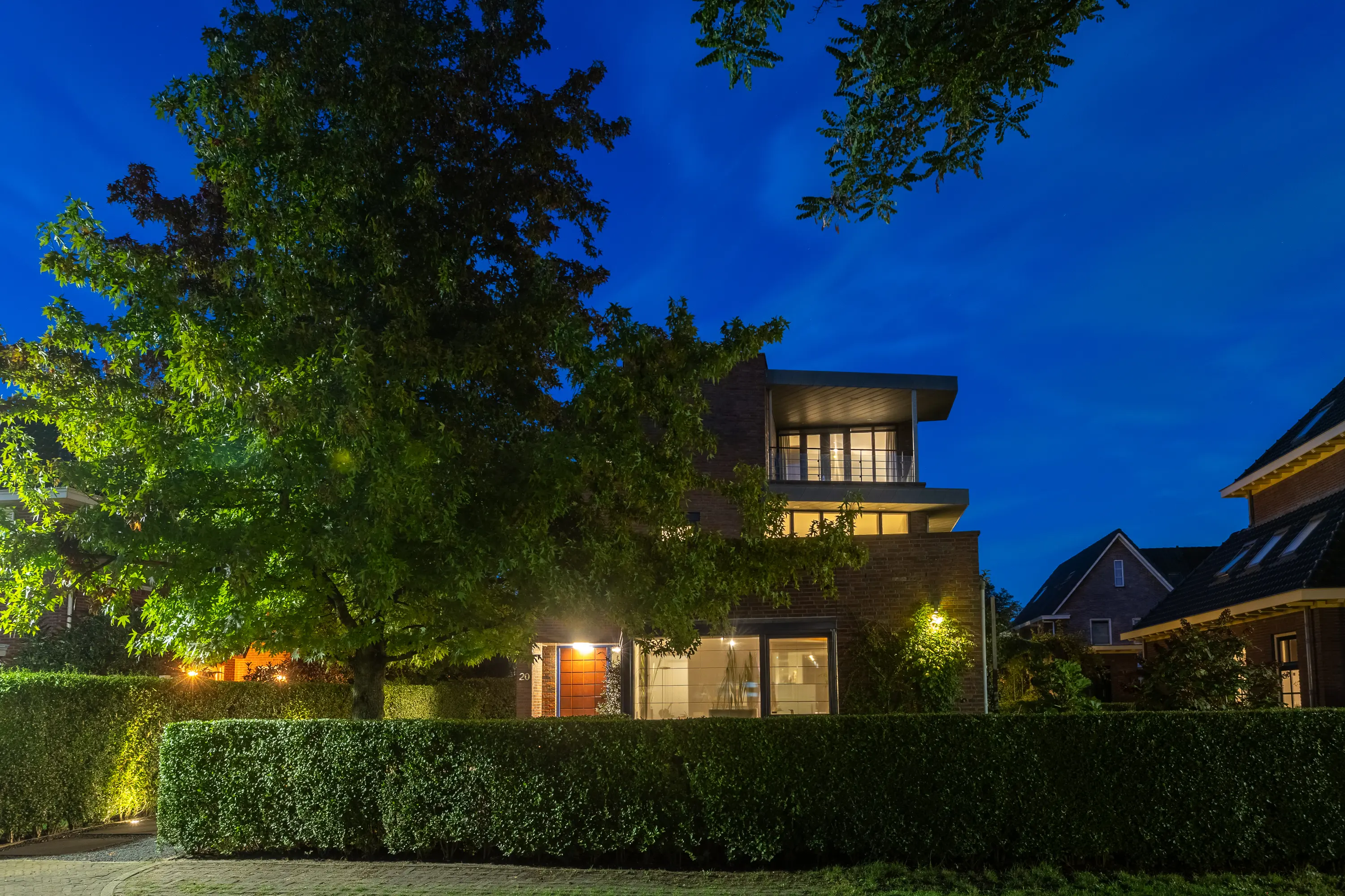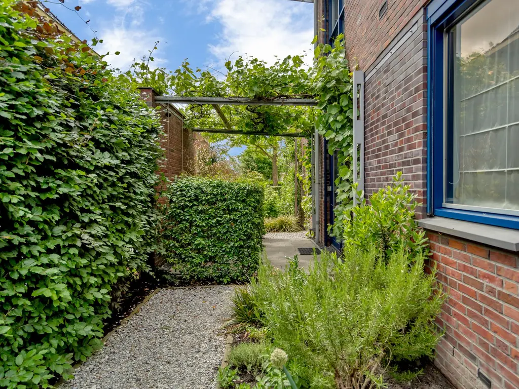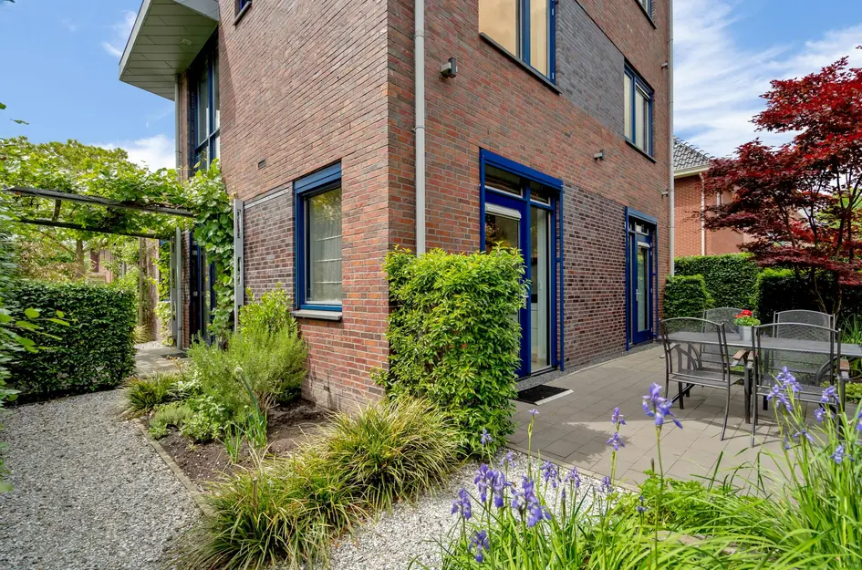 De fraai aangelegde tuin is via openslaande deuren eenvoudig bereikbaar vanuit de woonkamer, keuken én werkkamer. Deze soepele verbinding tussen binnen en buiten zorgt ervoor dat u het hele jaar door kunt genieten van het buitenleven – de tuin fungeert als een volwaardig verlengstuk van de woonruimte.