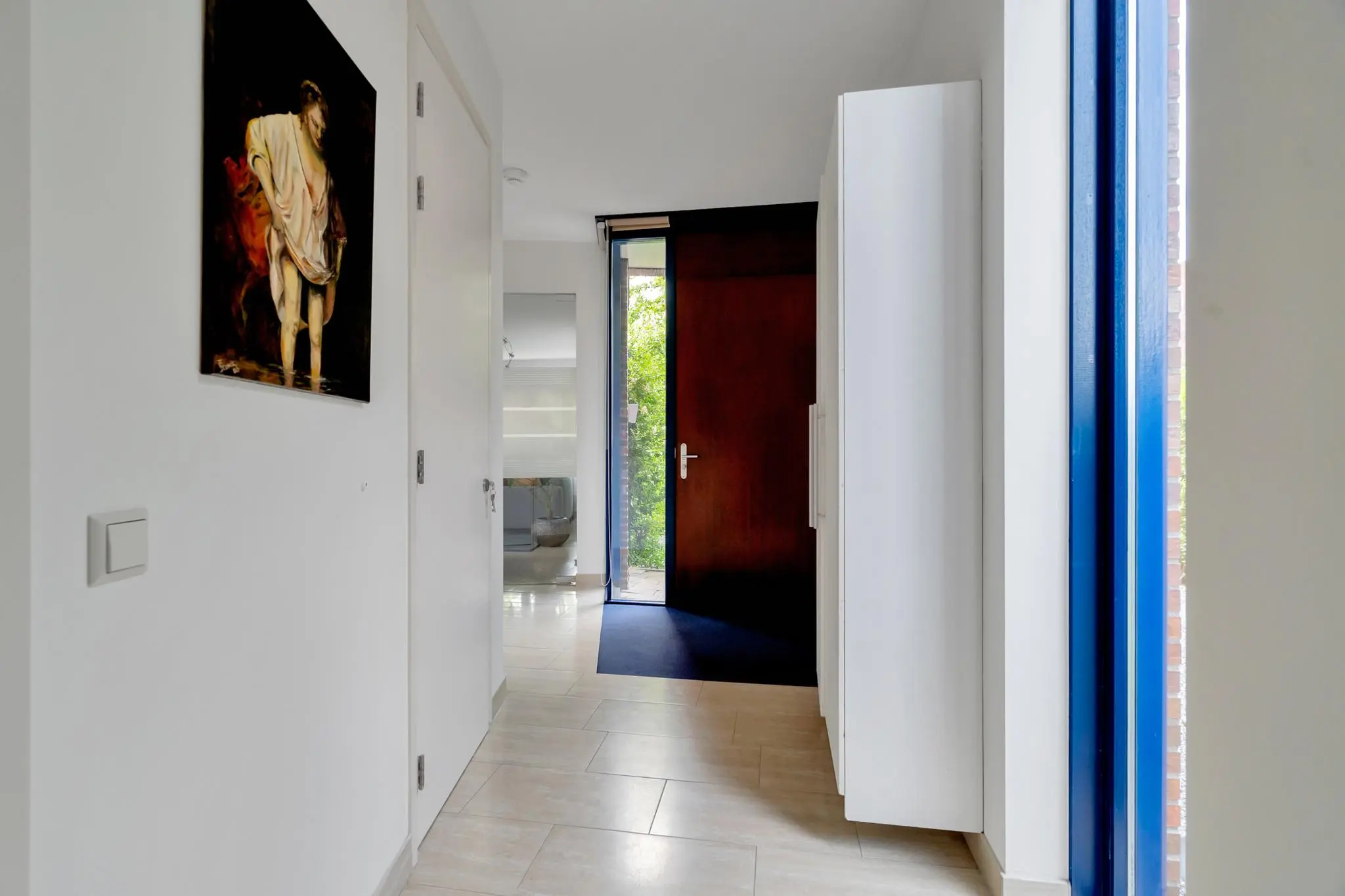 Via de voortuin, met ruime parkeergelegenheid voor 2 auto's op eigen terrein en een eigen laadpunt voor elektrische voertuigen, bereikt u de entree van de woning.