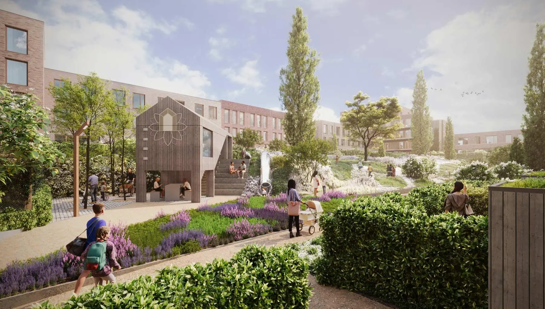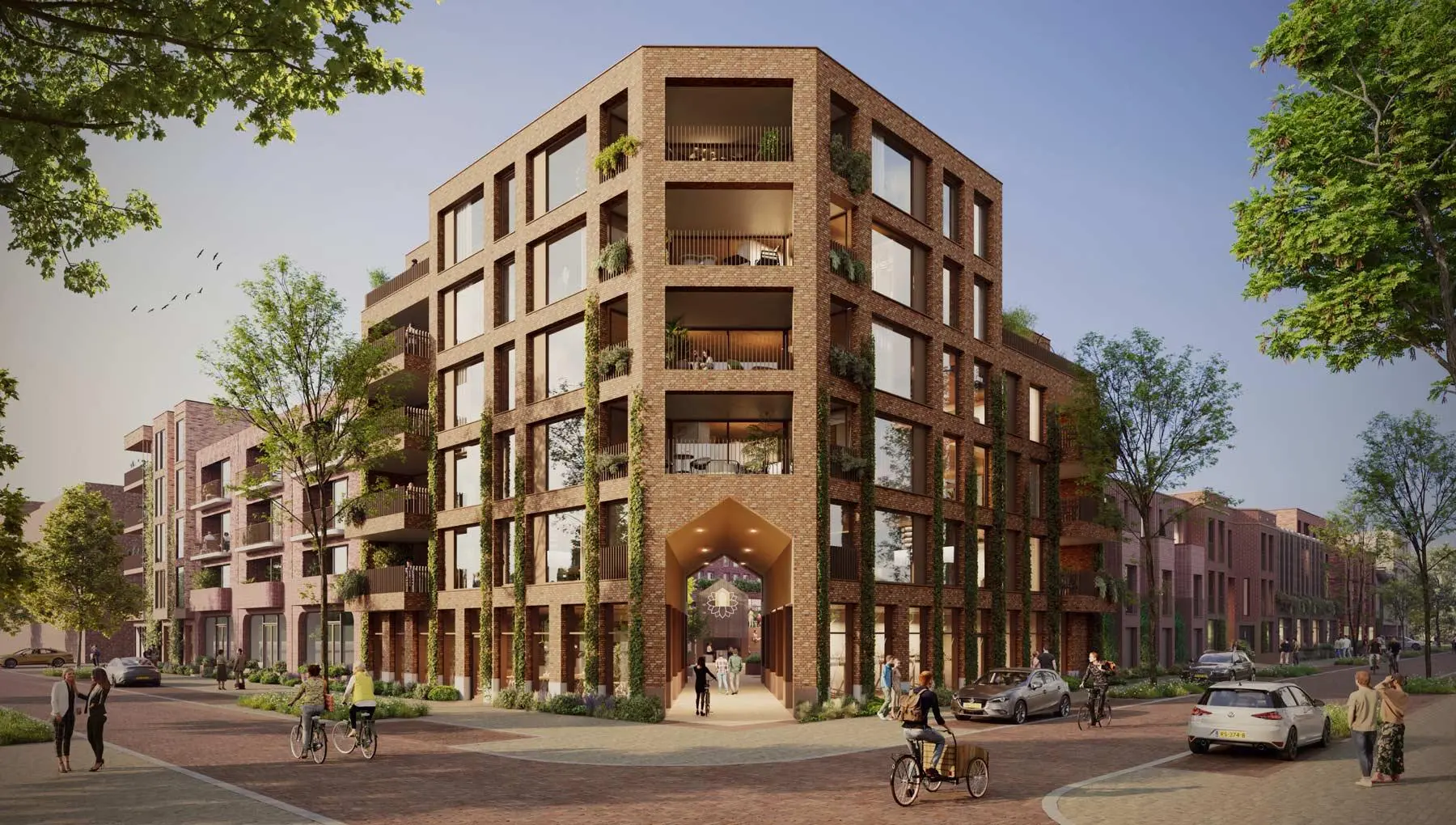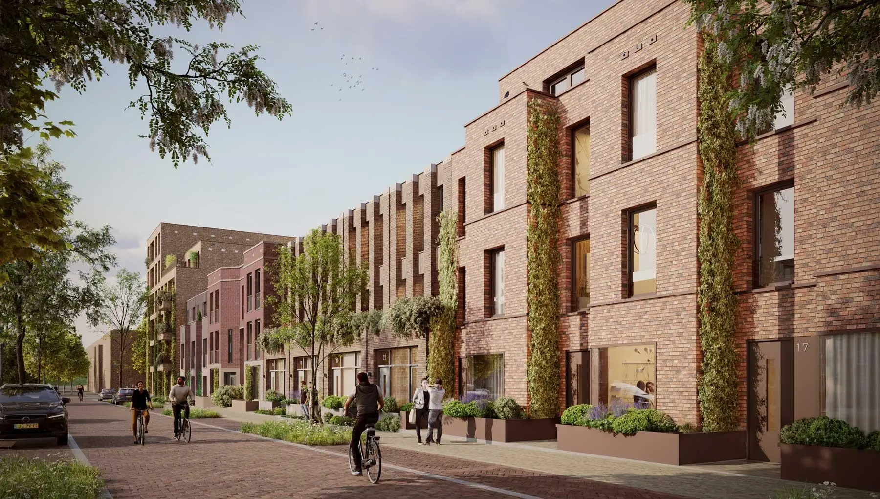 Huis in het Veld is een stoer en karaktervol woonblok, geïnspireerd op de charmante 19e-eeuwse stationsbuurten. Met gezellige buurt- en stadsstraten biedt dit duurzame project een woonomgeving vol sfeer en allure.