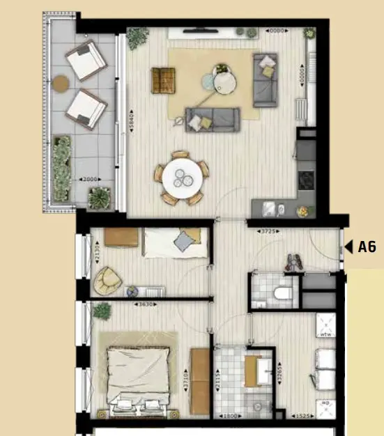 - Ruime loggia van 11m² op het zuiden;